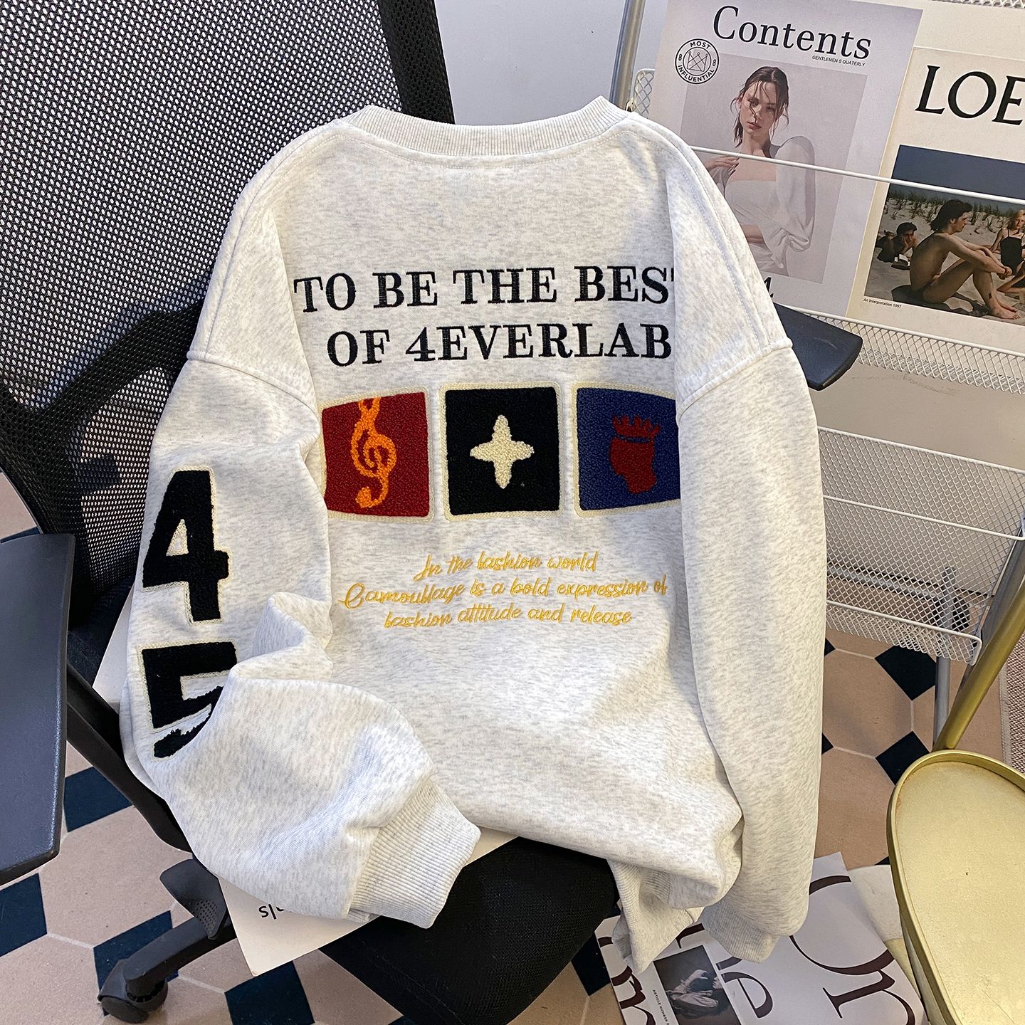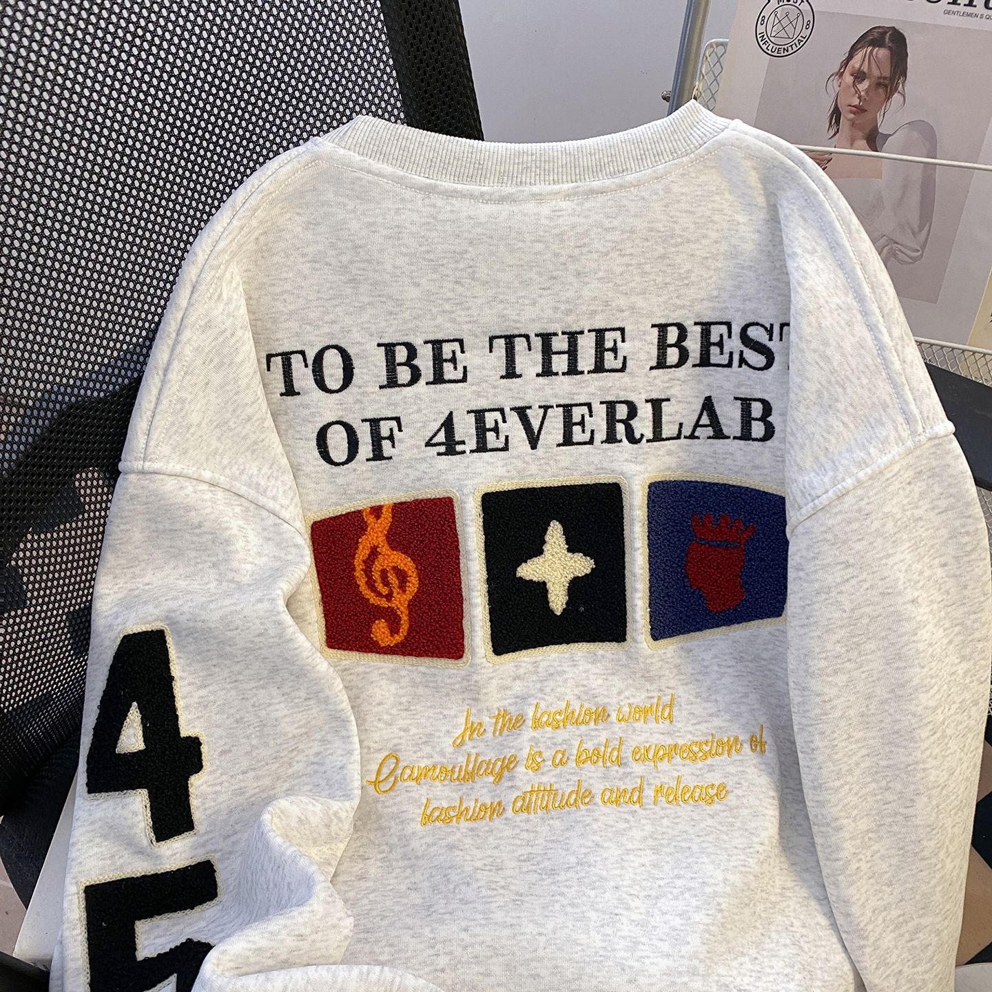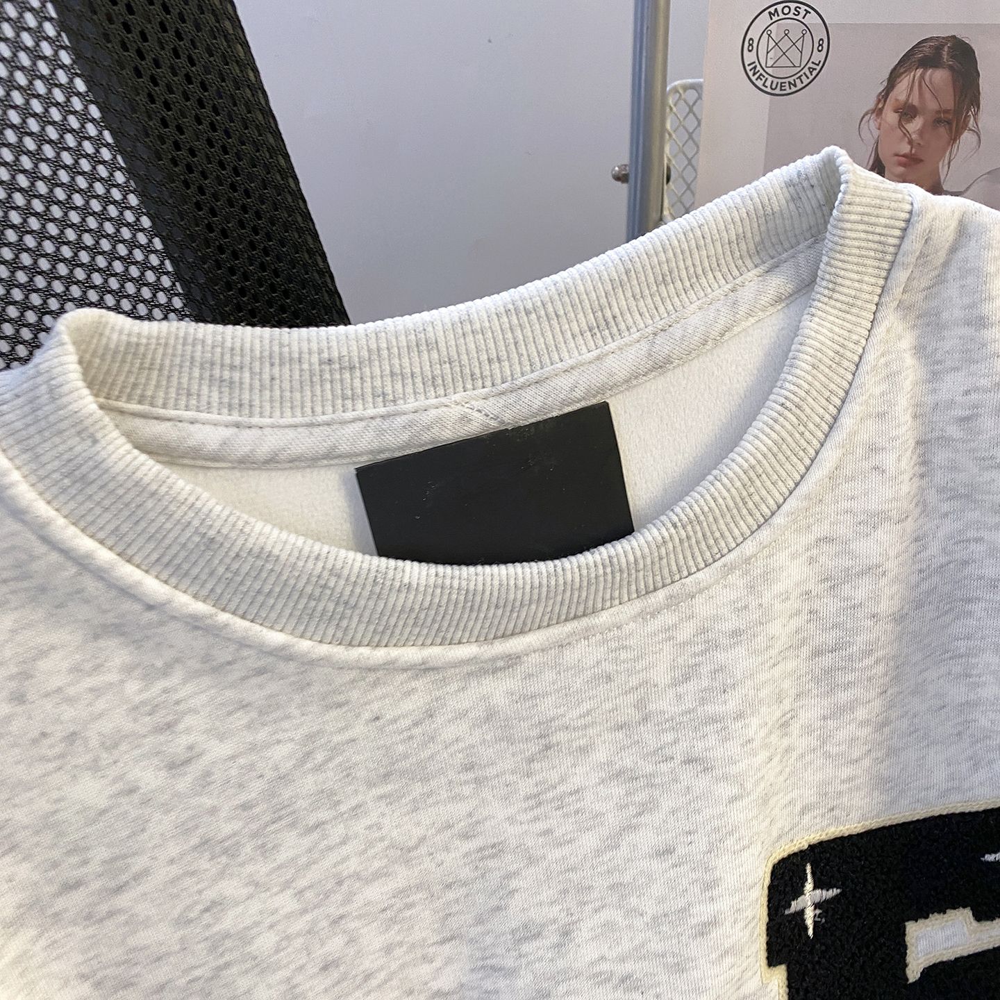 실제 사진, 특별 가격 변동 없음, 오리지널 자수, 화미안 순면 혼방 은여우털 420g 미국식 크루넥 스웨트셔츠