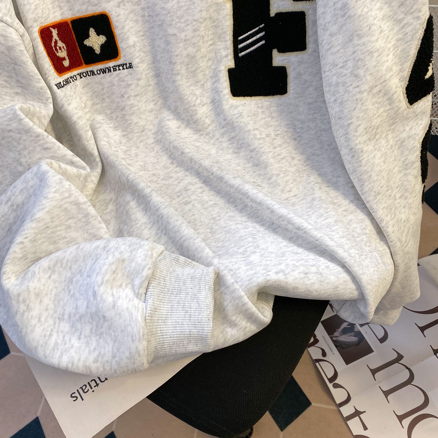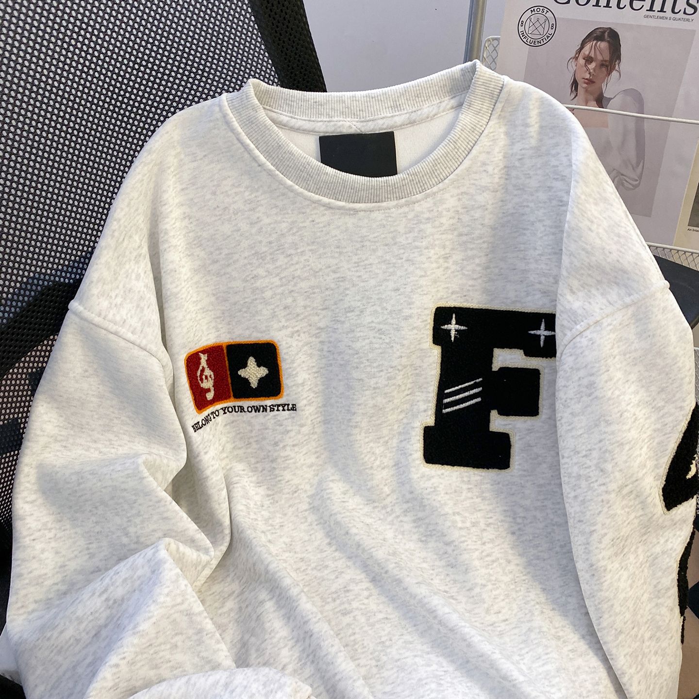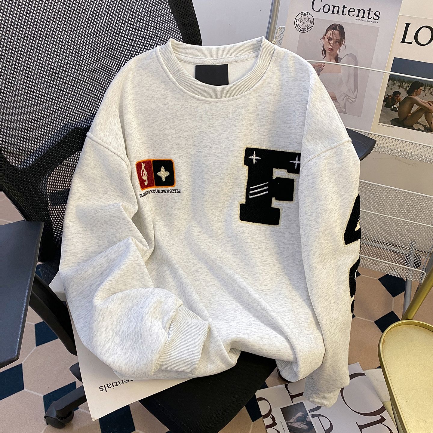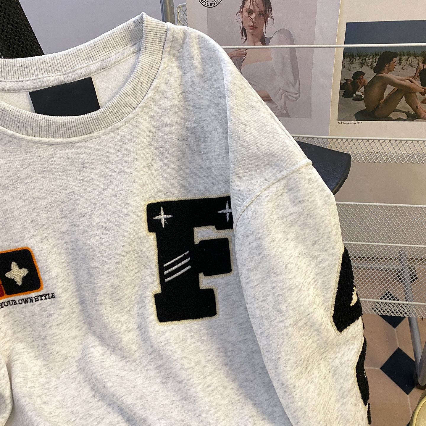 실제 사진, 특별 가격 변동 없음, 오리지널 자수, 화미안 순면 혼방 은여우털 420g 미국식 크루넥 스웨트셔츠