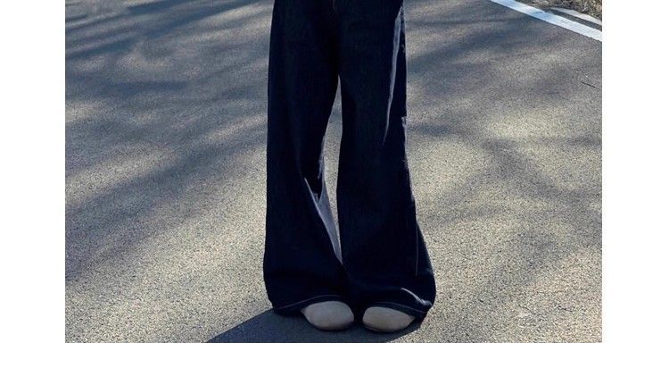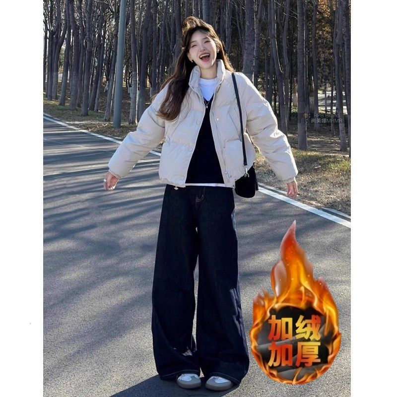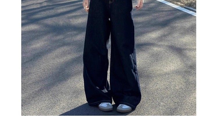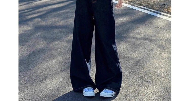 여성용 다크 블루 하이웨이스트 플리스 안감 와이드 팬츠, 신상 가을/겨울 스타일, 루즈핏, 슬림핏, 드레이프, 바닥까지 내려오는 일자핏 팬츠.