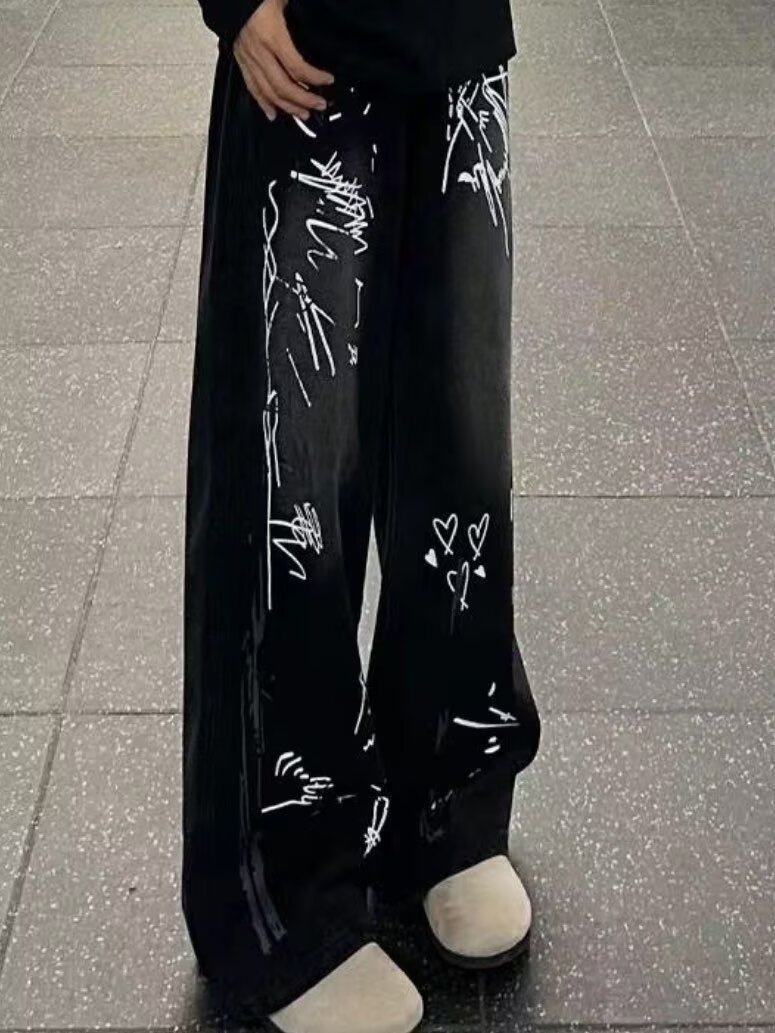 편안한 핏의 청바지, 트렌디하고 심플하며, 새로운 스타일로 인기 있고 활용도가 높으며, 일본 스타일의 예술적이고 세련된 디자인입니다.