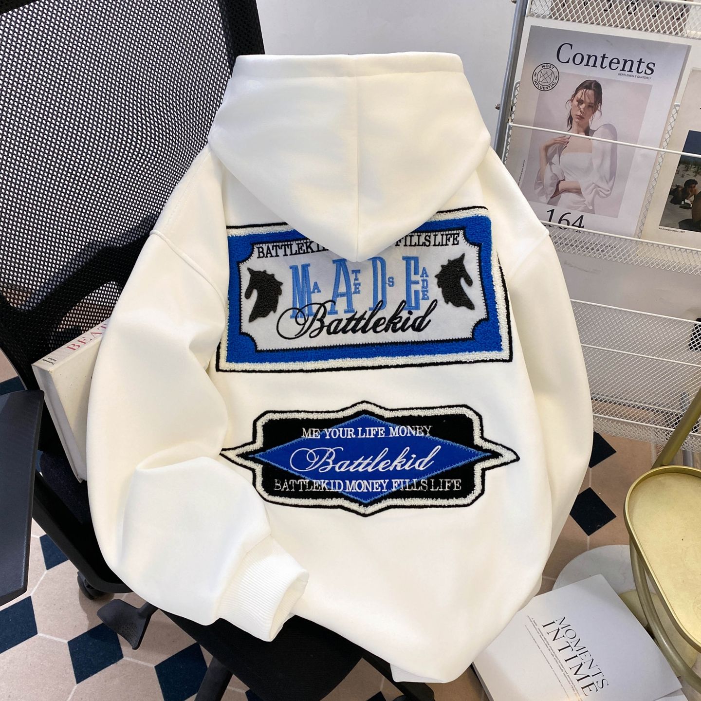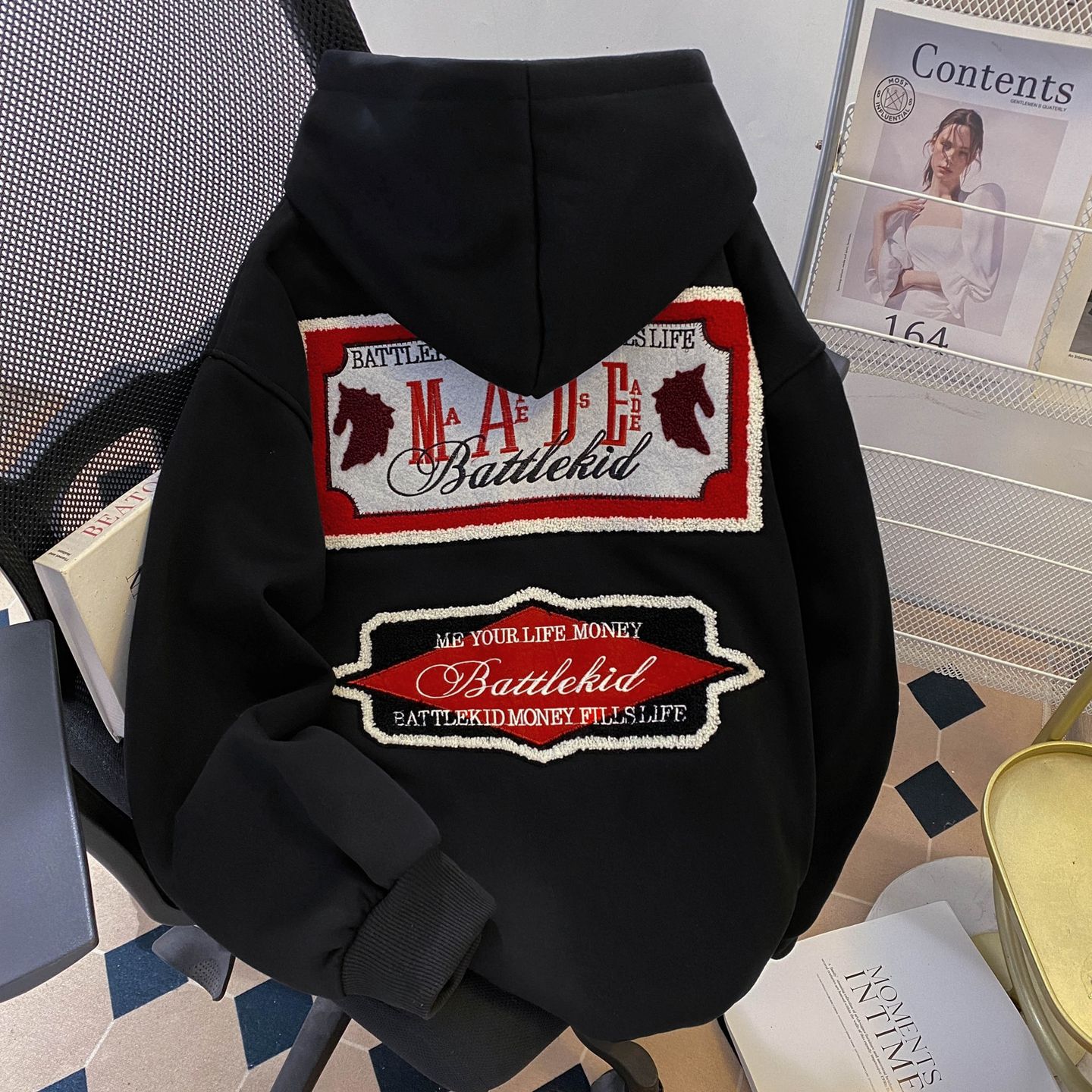 실제 사진, 특별 가격 변동 없음, 오리지널 자수, 화미안 순면 혼방 밀크 실크 330g 레트로 후드티.