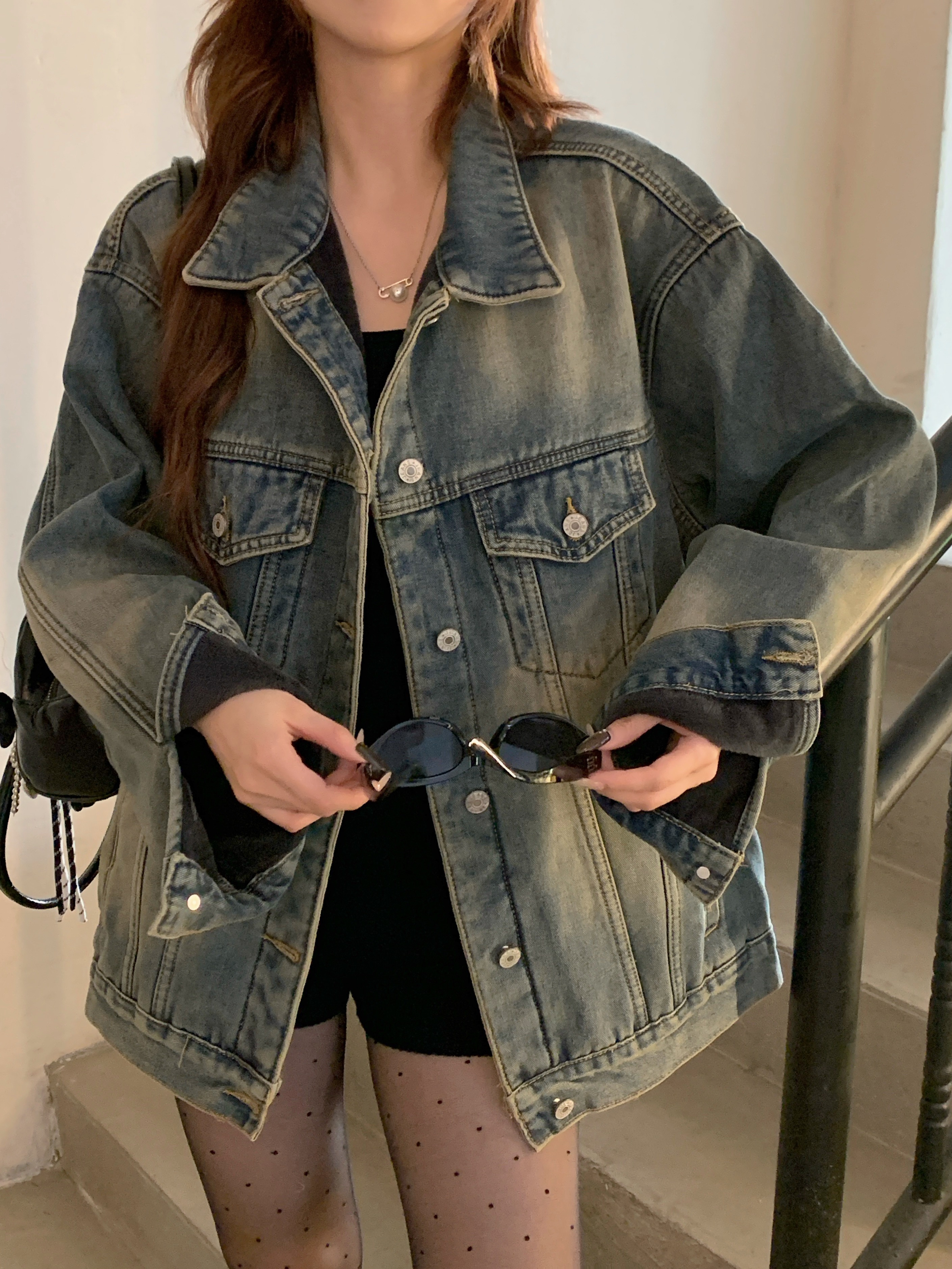 实拍 加厚水洗牛仔外套女高街潮牌宽松冬季休闲宽松百搭
