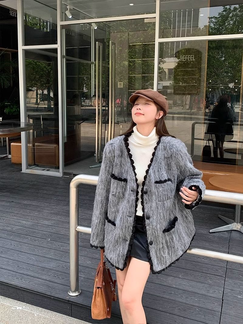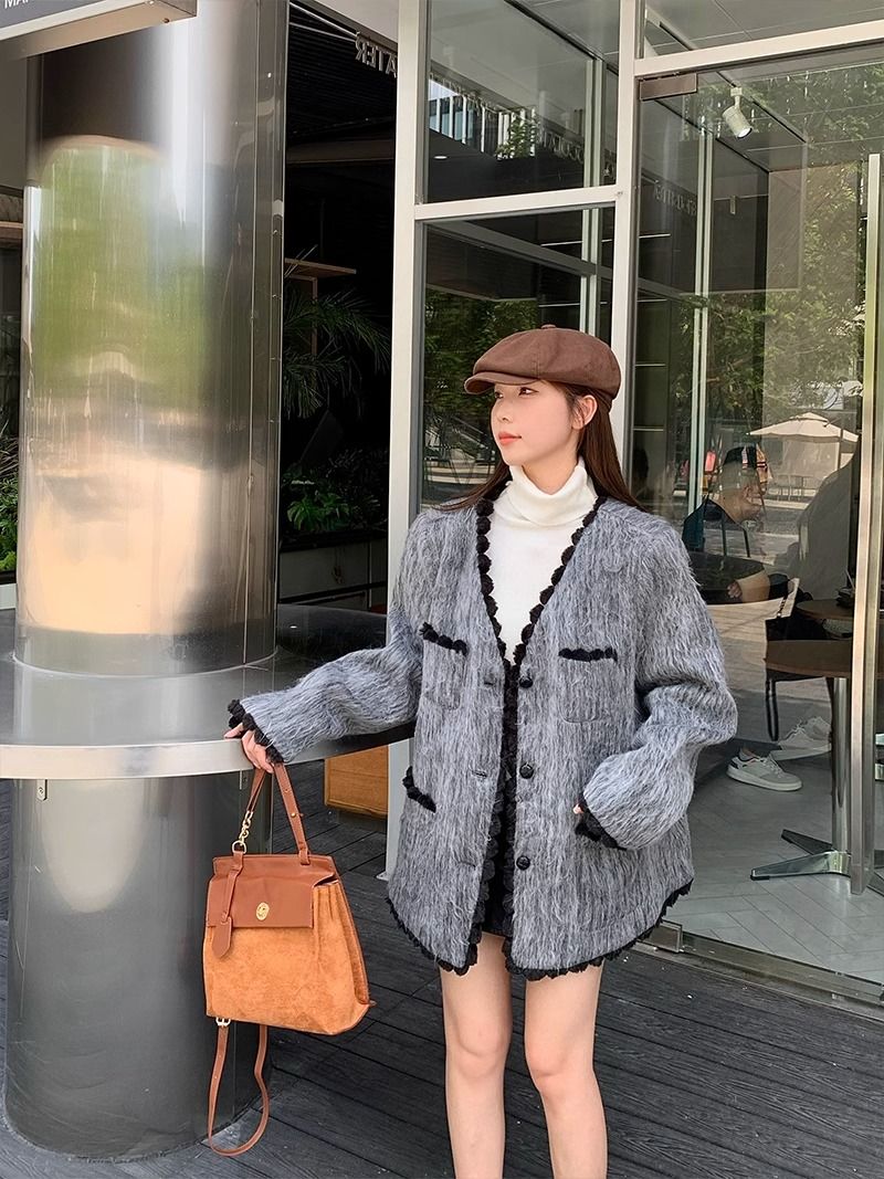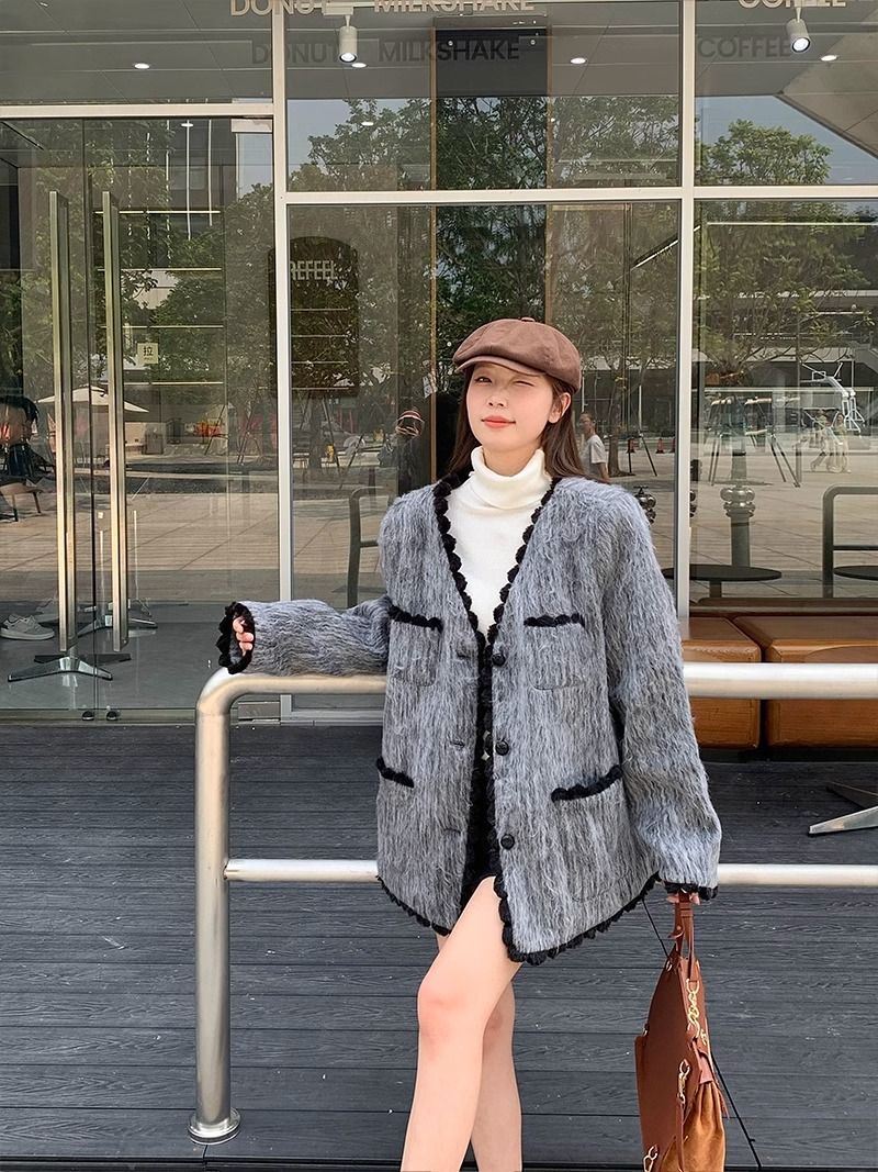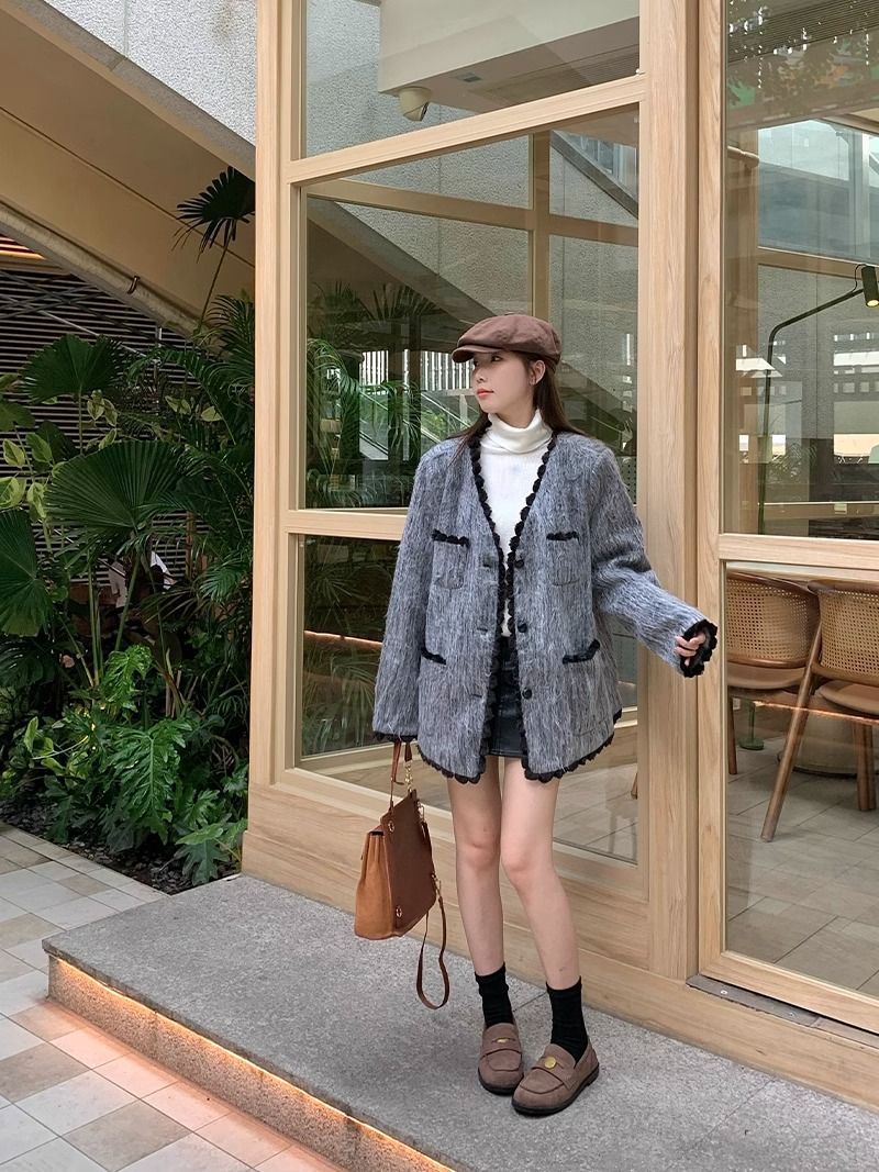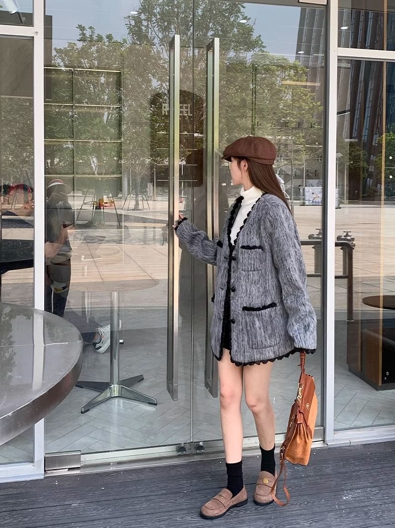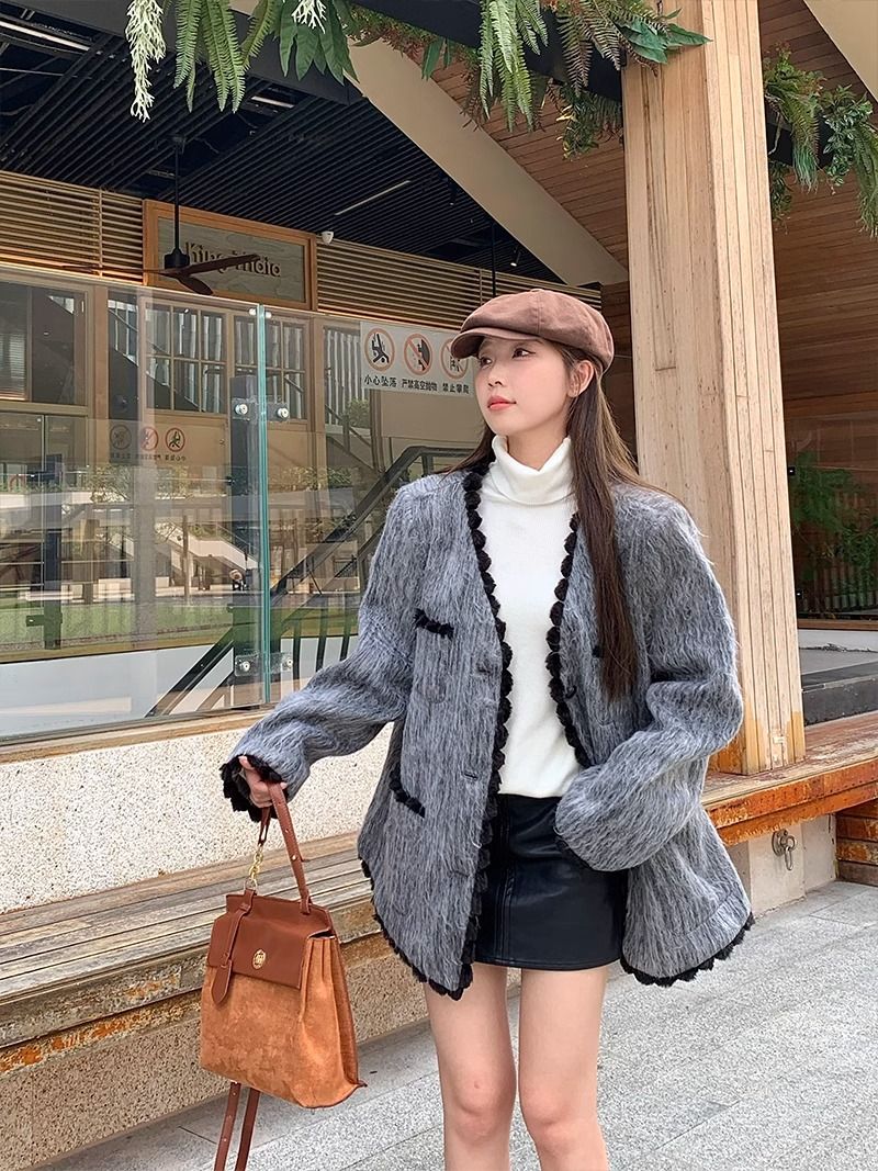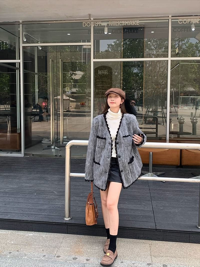 플러스 사이즈 여성을 위한 새로운 가을 샤넬 스타일의 트렌디한 코트입니다. 슬림하고 우아한 울 소재로 제작되어 플러스 사이즈 여성에게 다양한 활용도를 제공합니다.