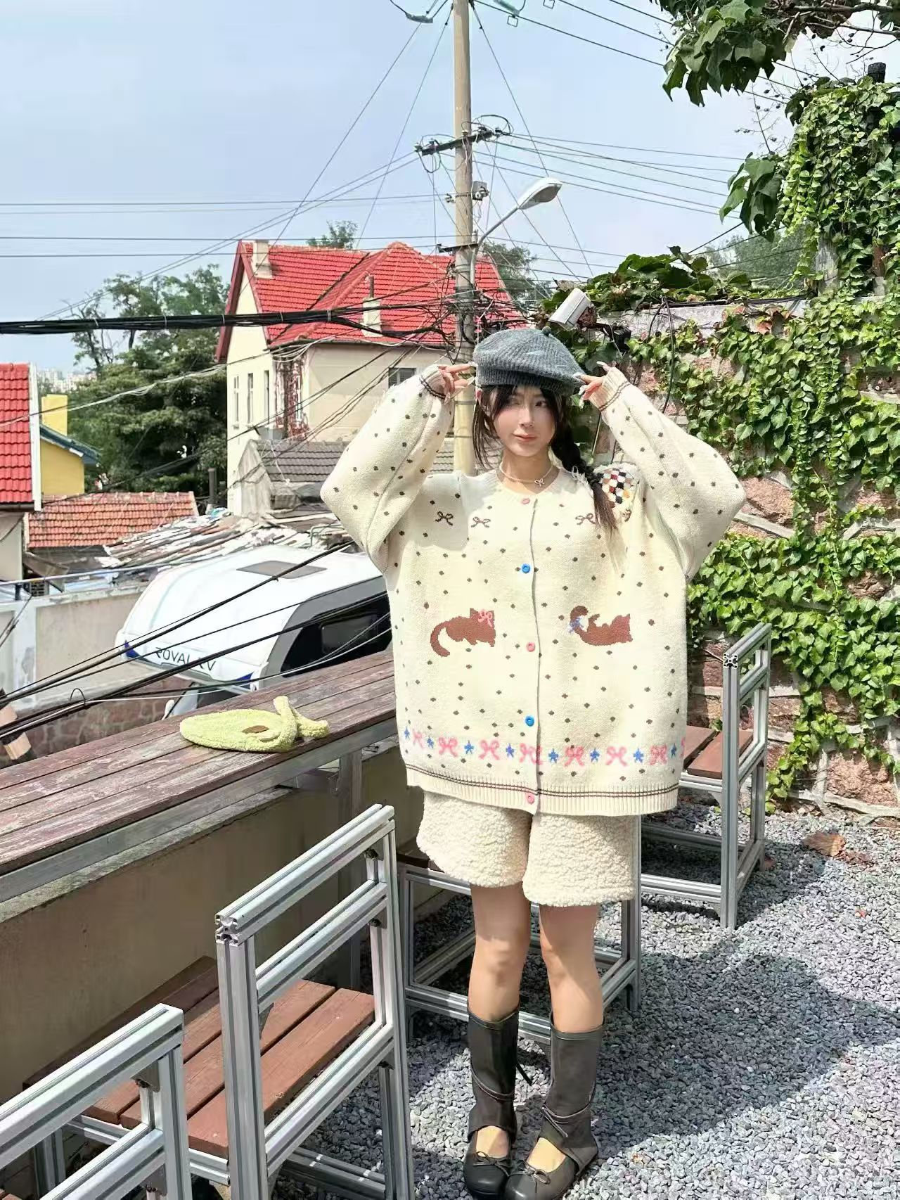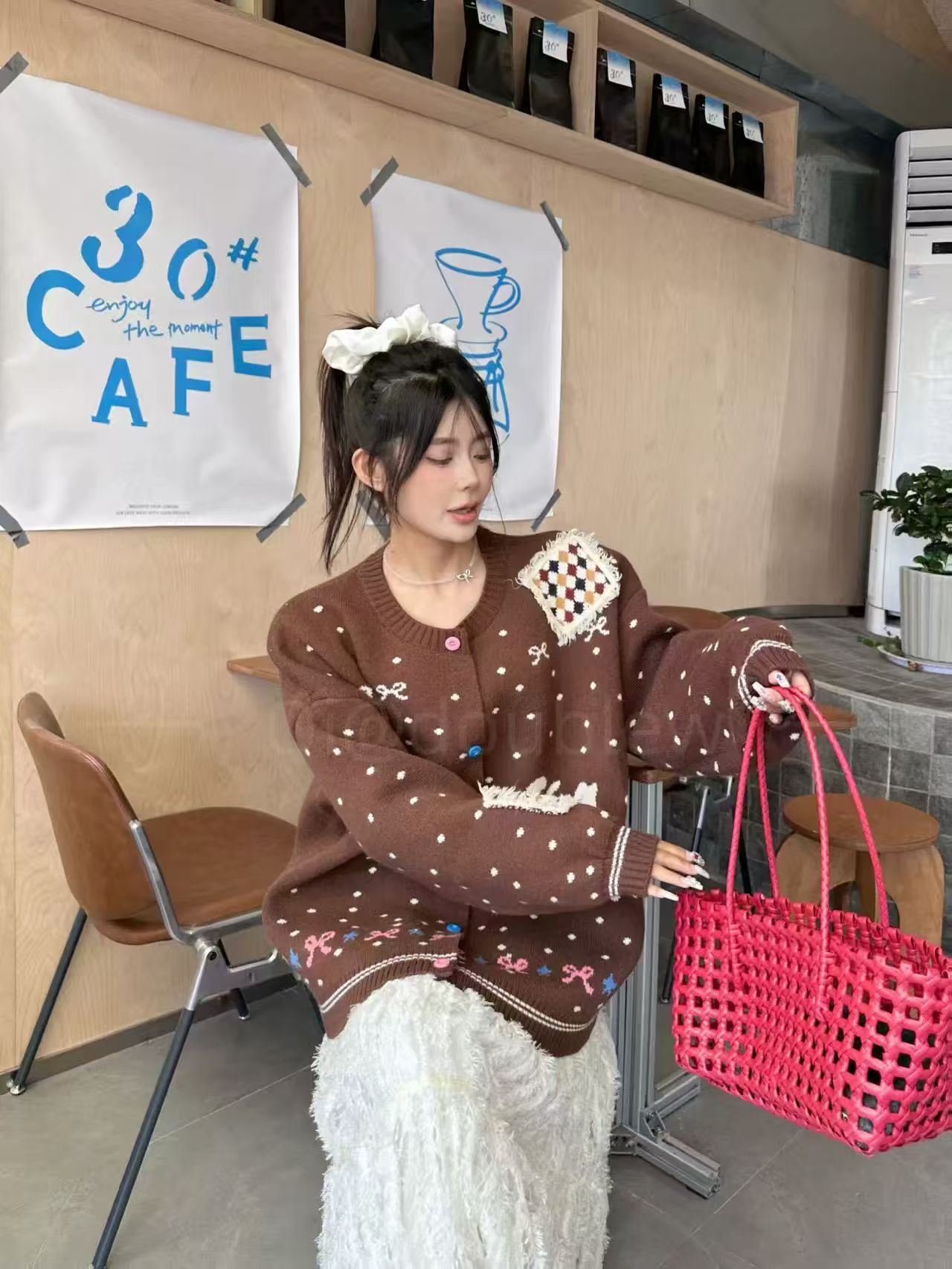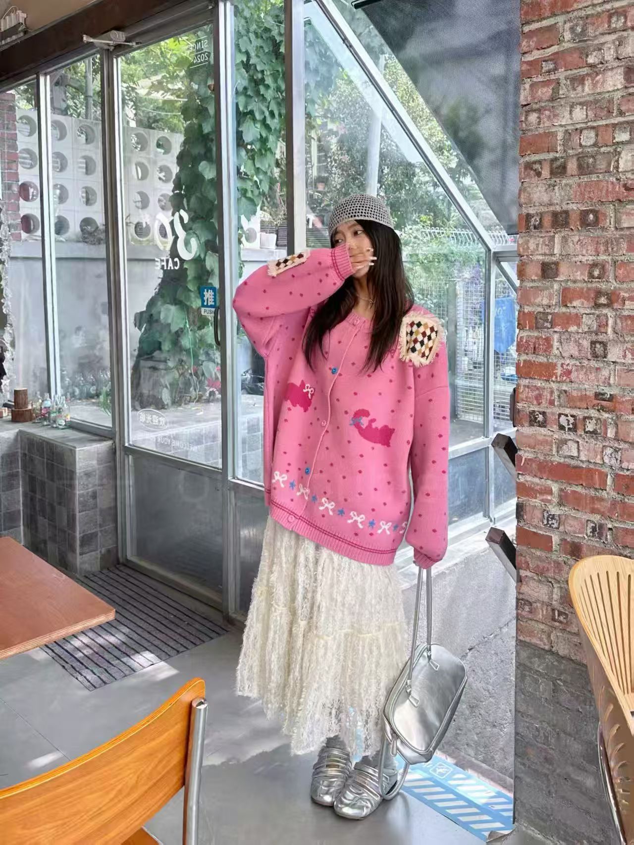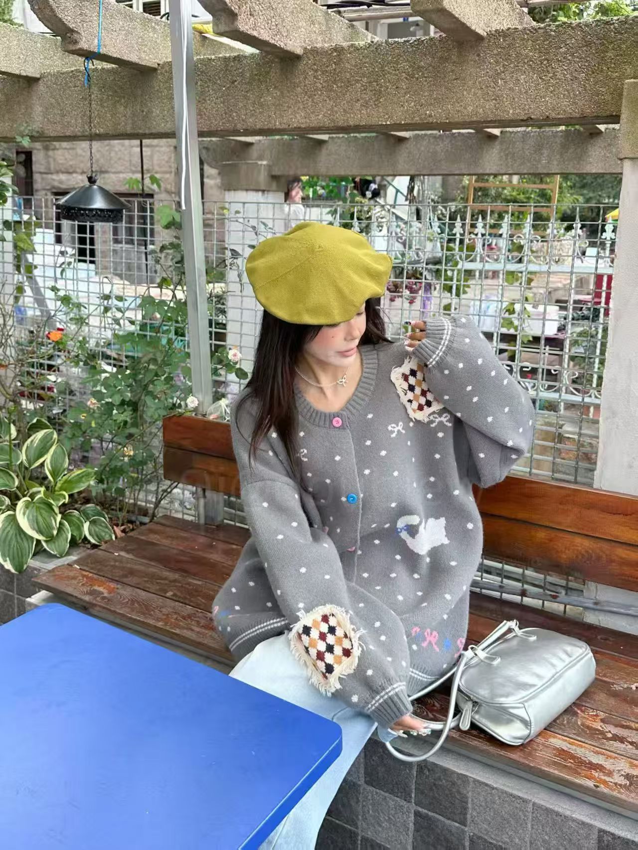 波点毛衣2025年初秋韩系新款甜美减龄宽松大板针织开衫上衣