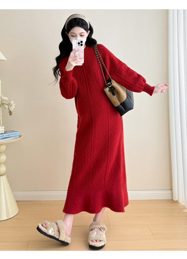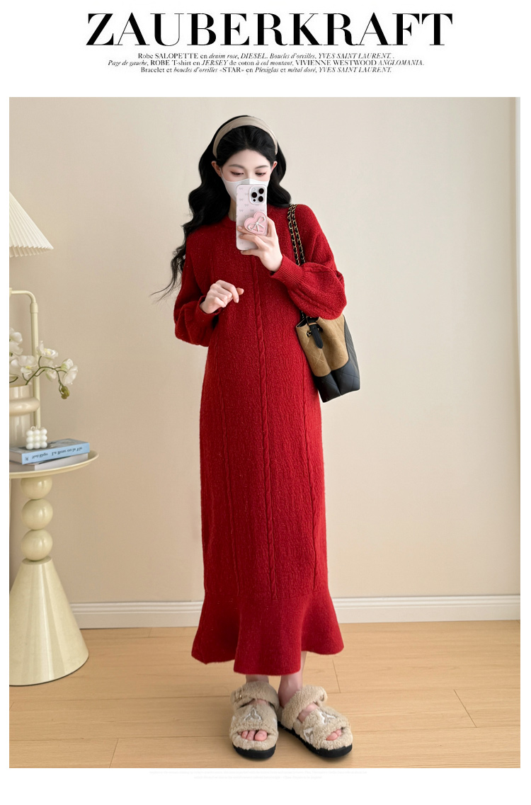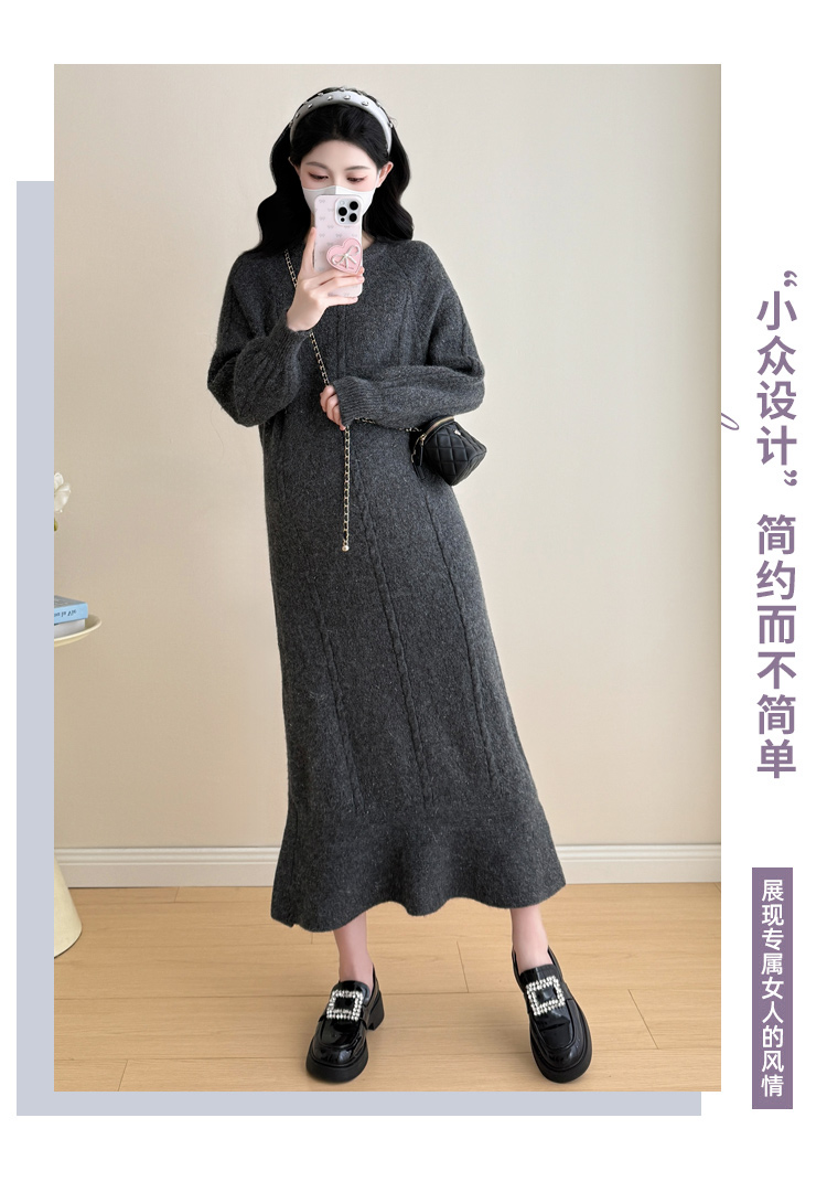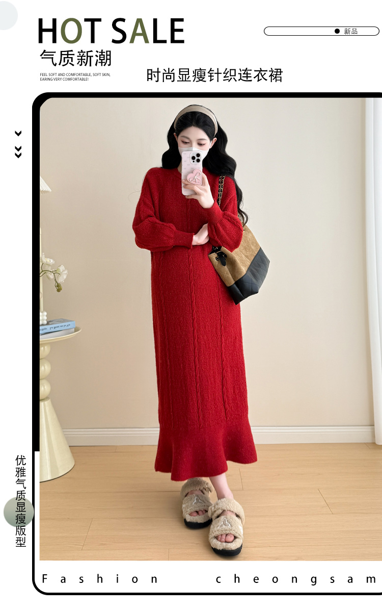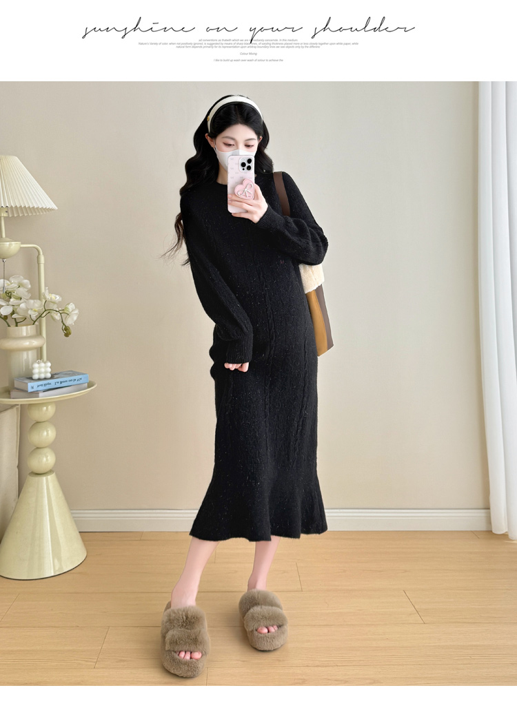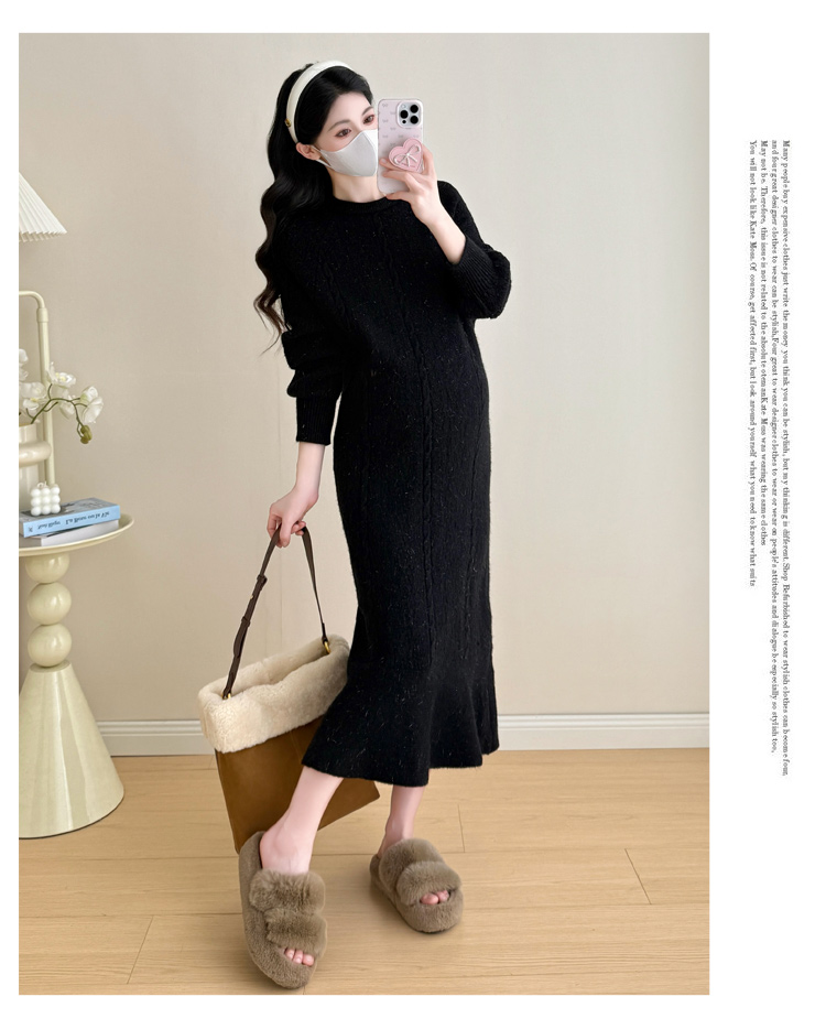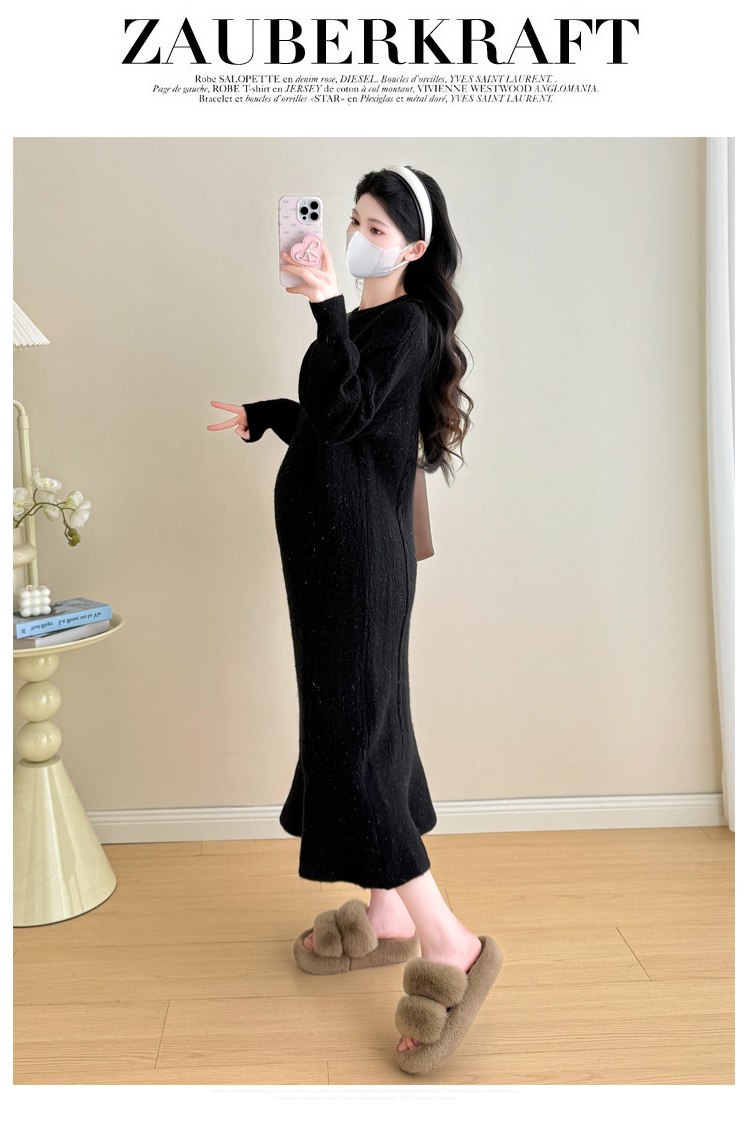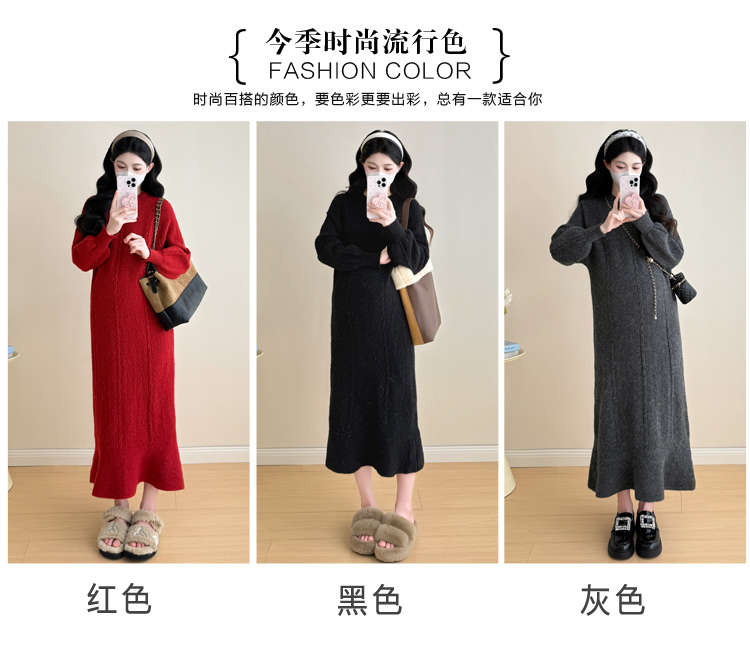 实拍~网红2025秋冬细闪加厚气质显瘦针织毛衣孕妇装鱼尾长裙