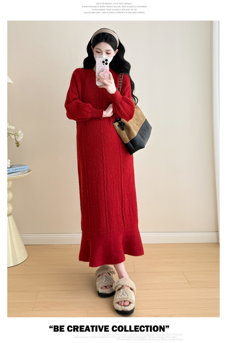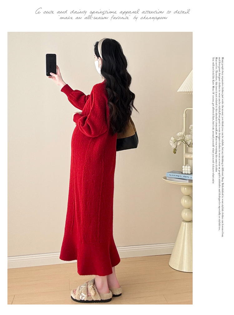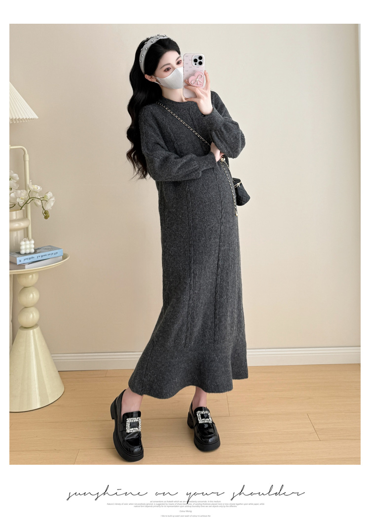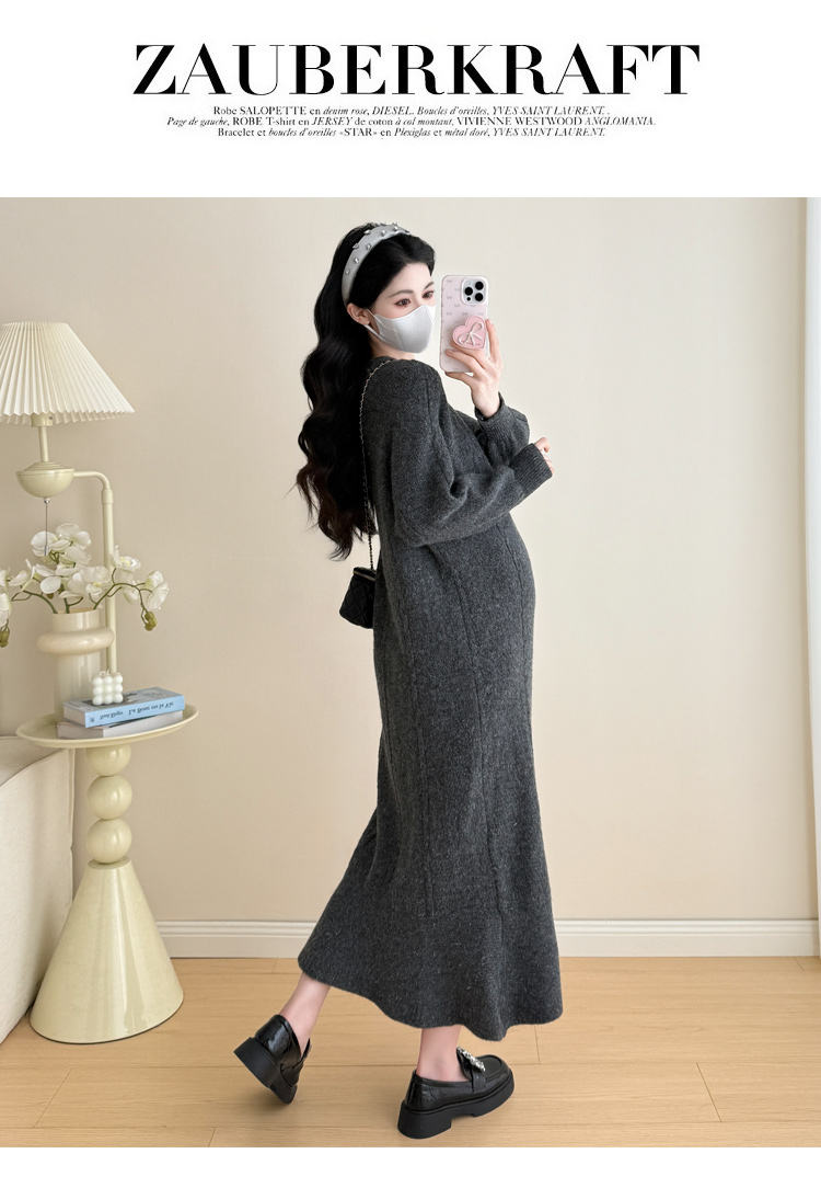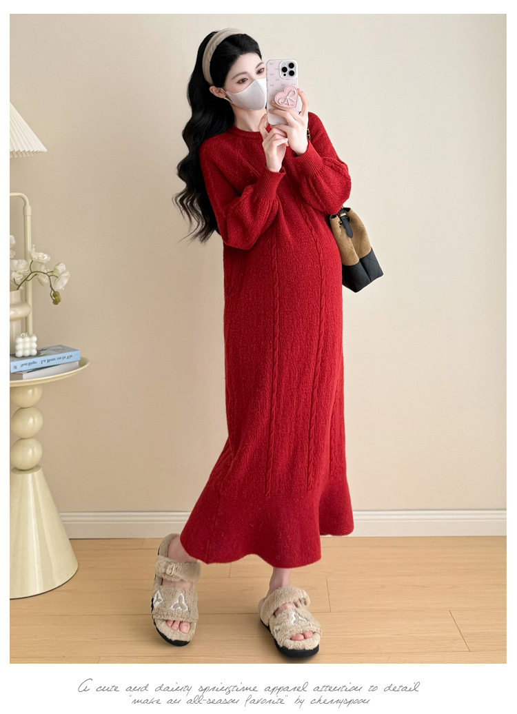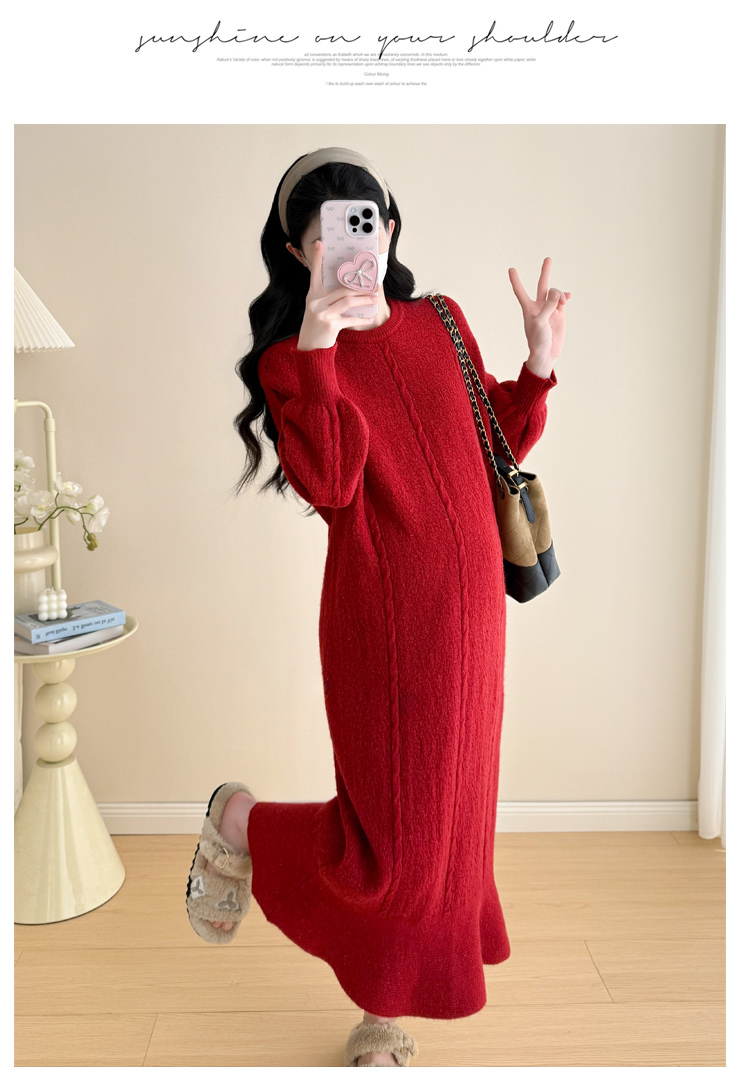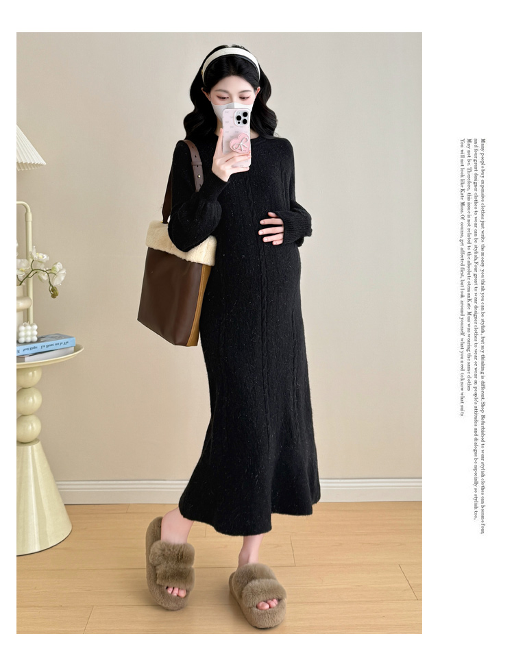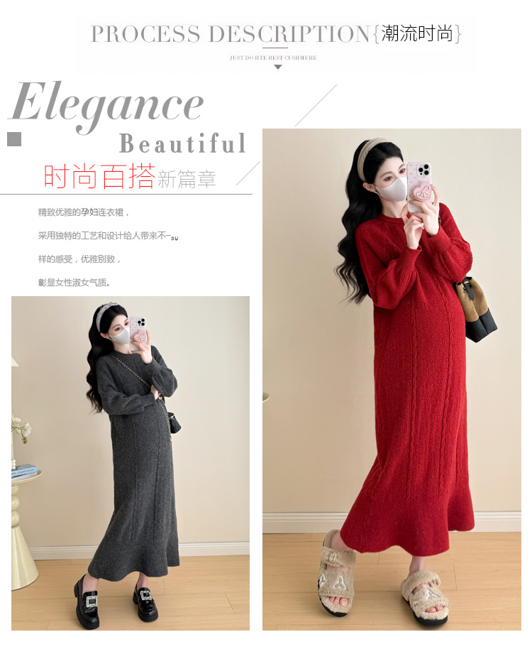 实拍~网红2025秋冬细闪加厚气质显瘦针织毛衣孕妇装鱼尾长裙