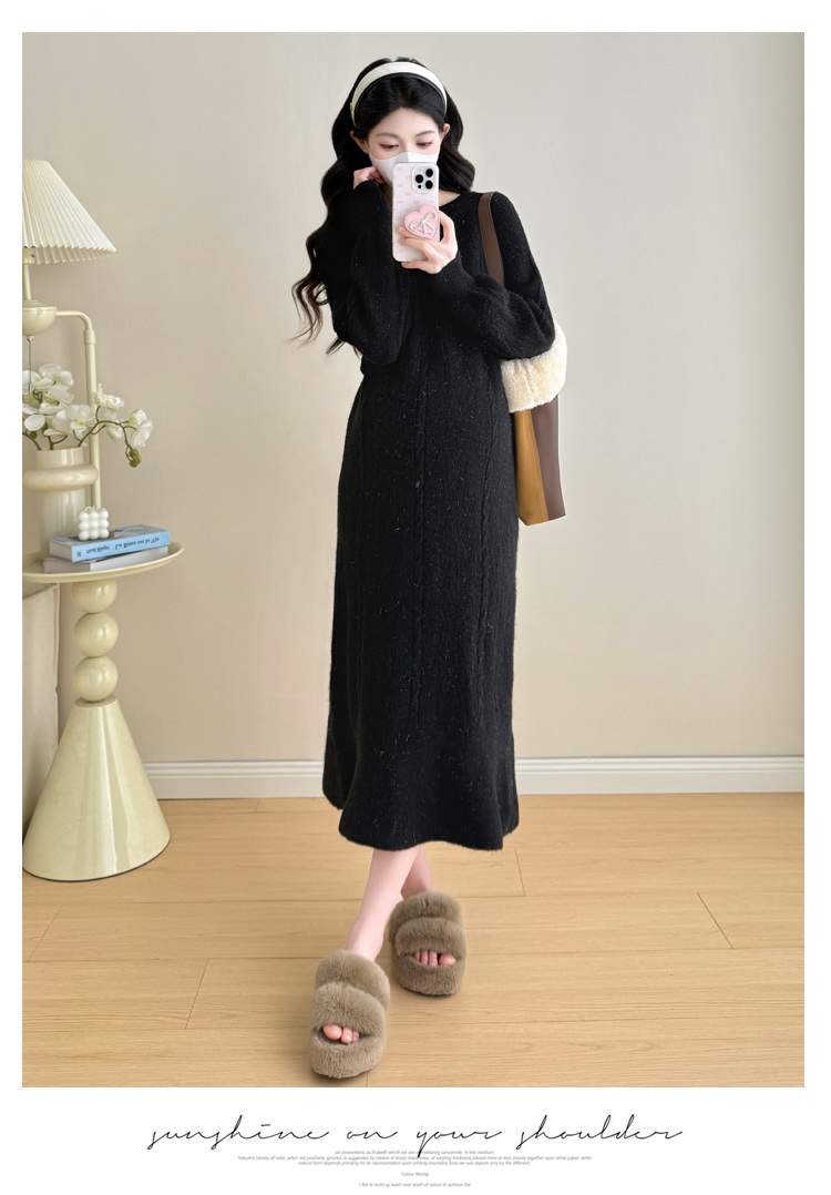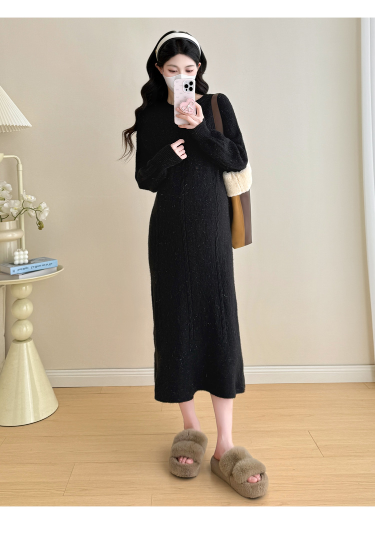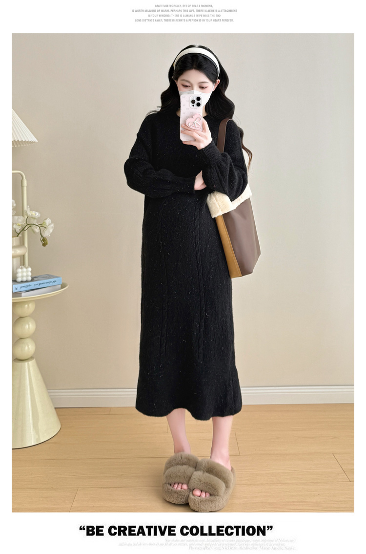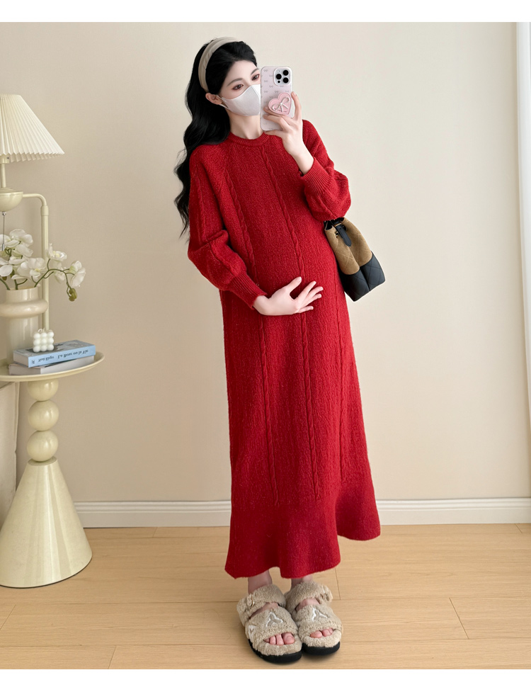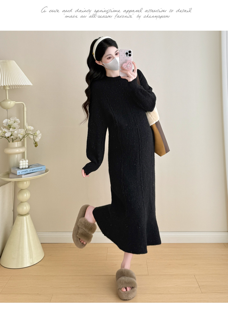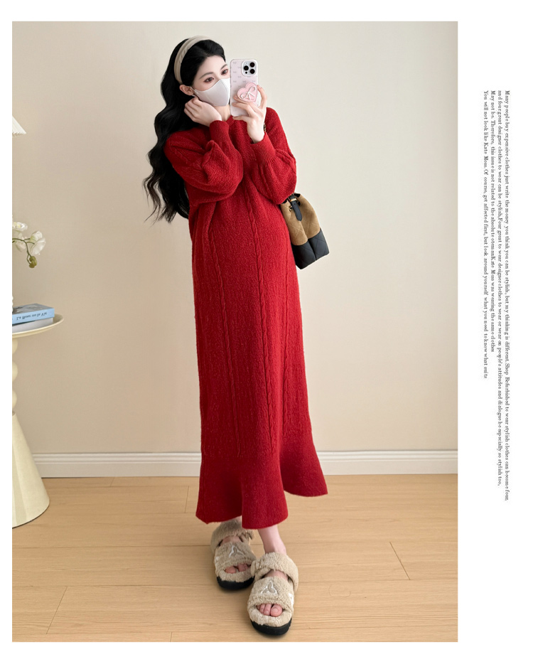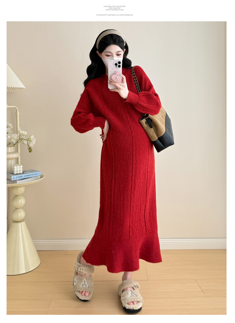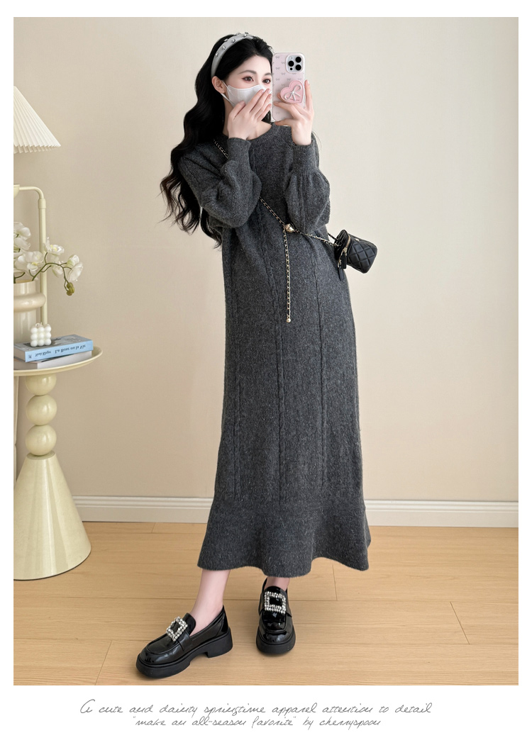 实拍~网红2025秋冬细闪加厚气质显瘦针织毛衣孕妇装鱼尾长裙