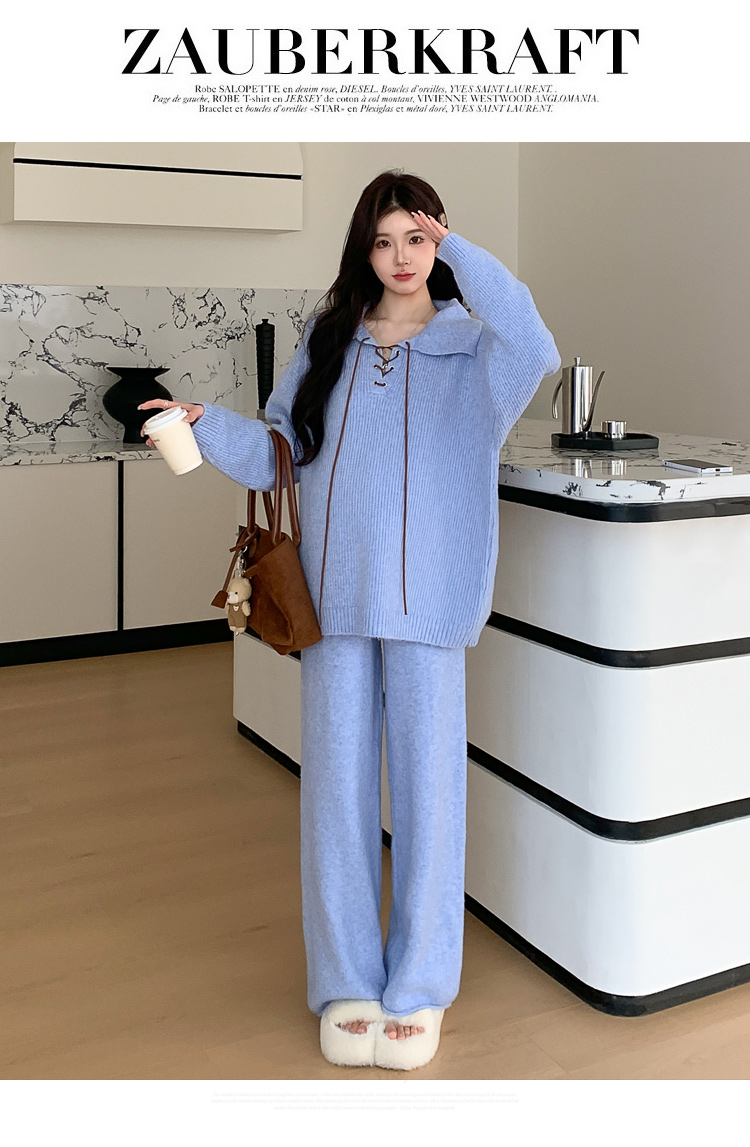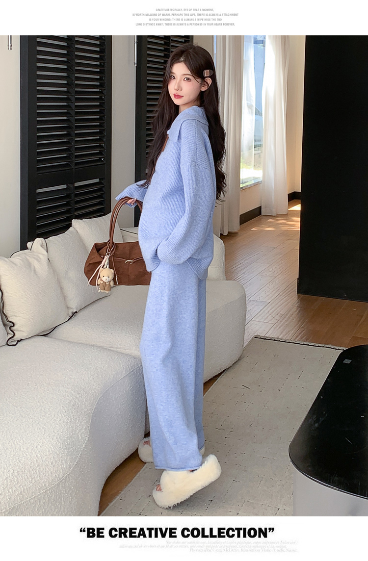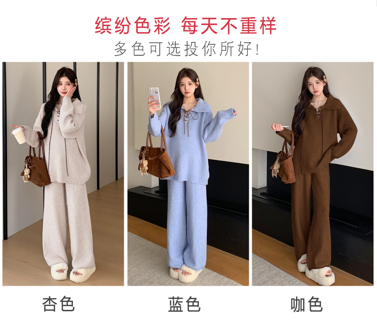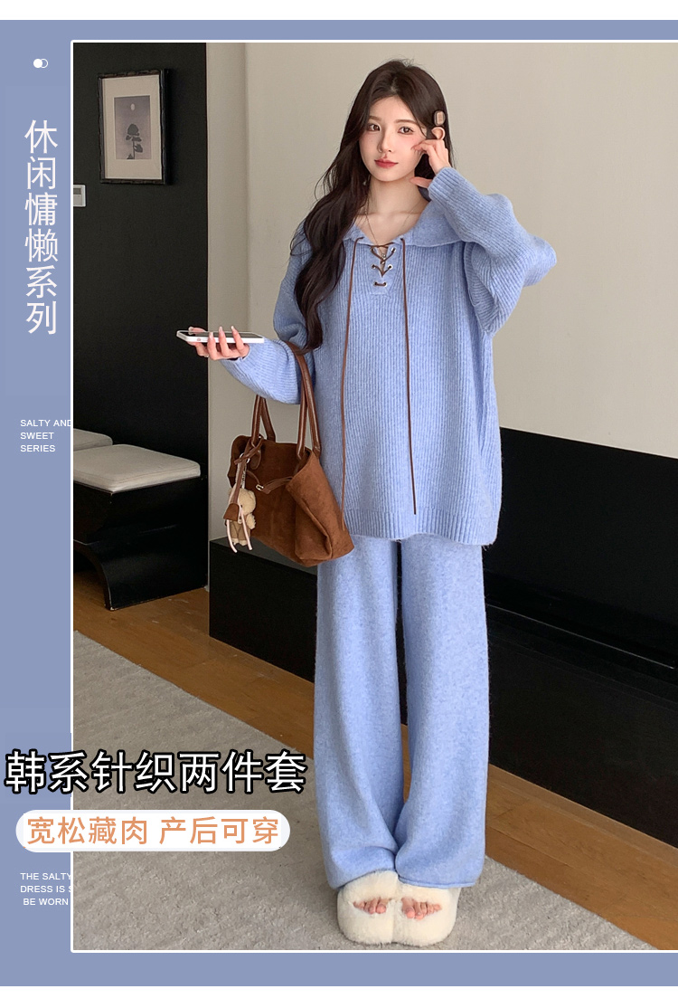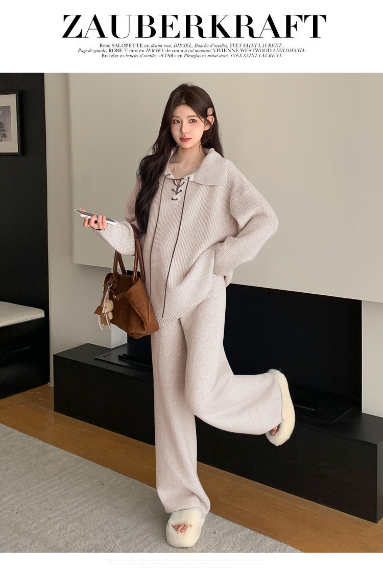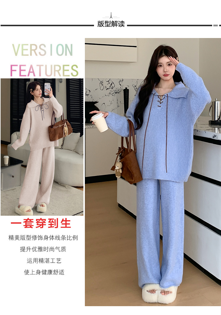 实拍~2025孕妇宽松慵懒风针织秋冬时尚保暖两件套小个子套装