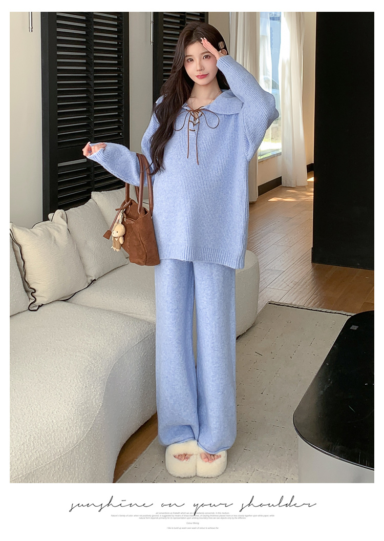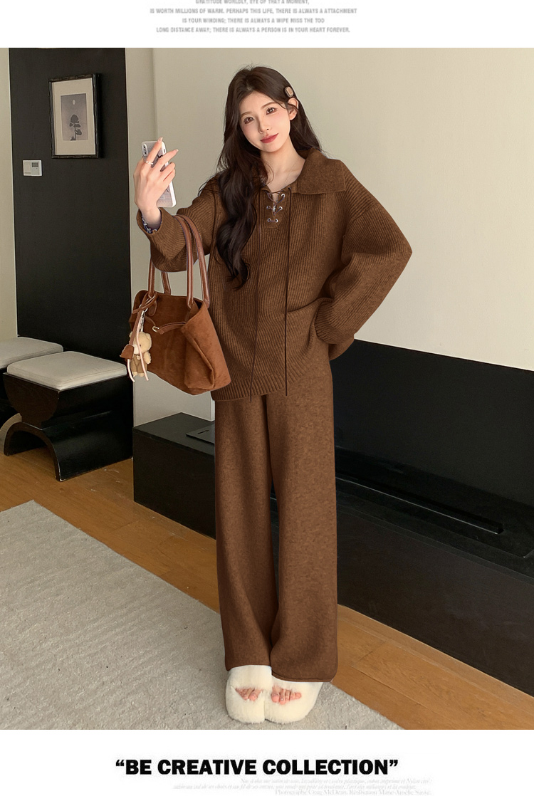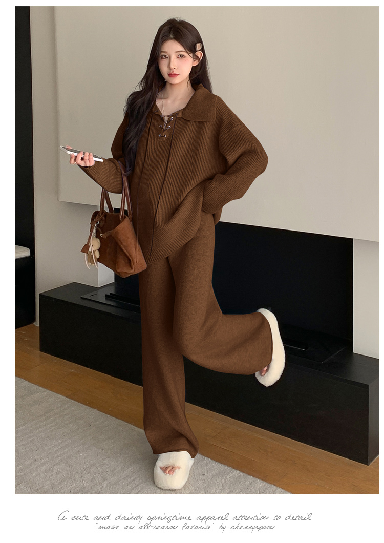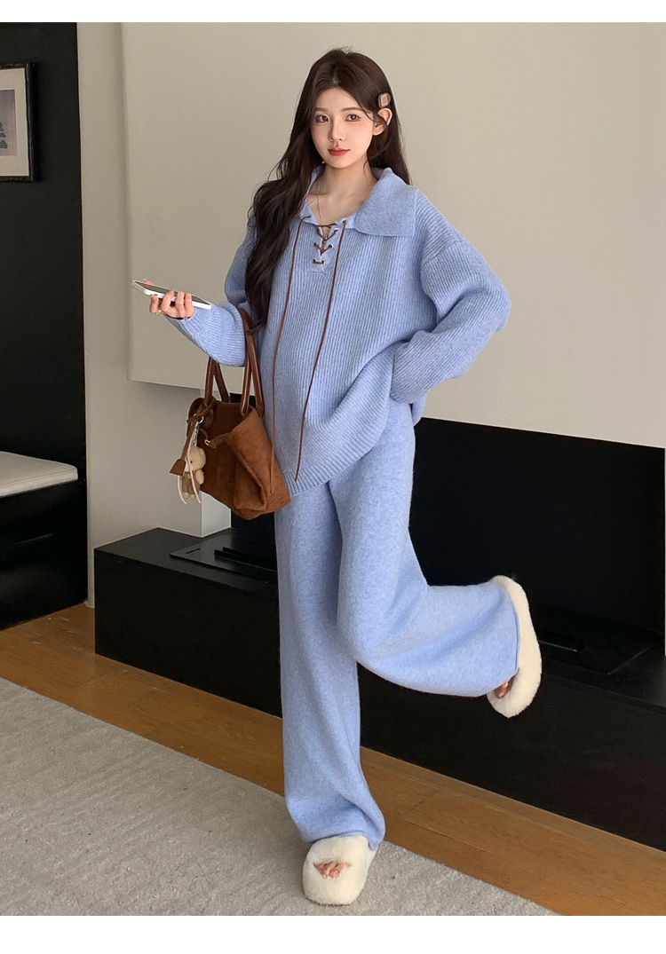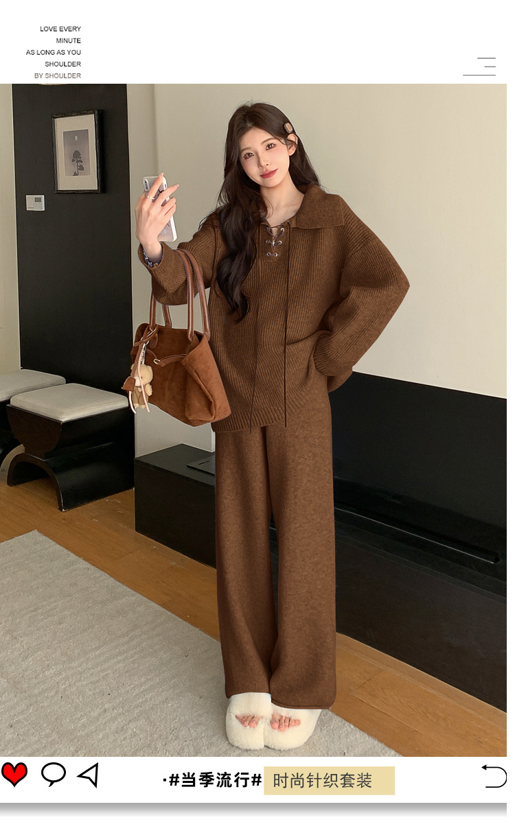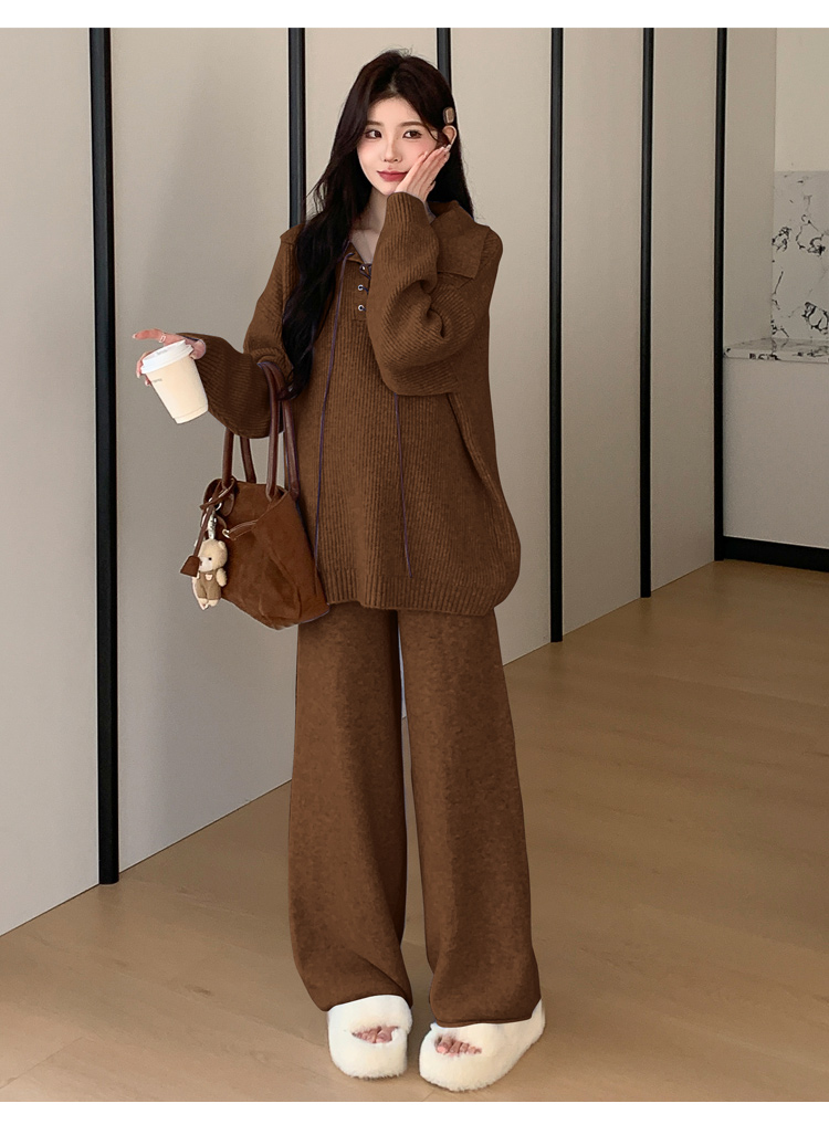 实拍~2025孕妇宽松慵懒风针织秋冬时尚保暖两件套小个子套装