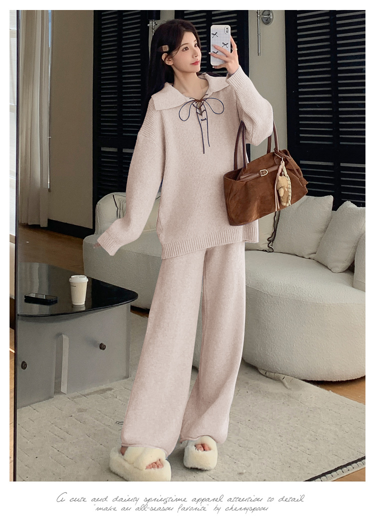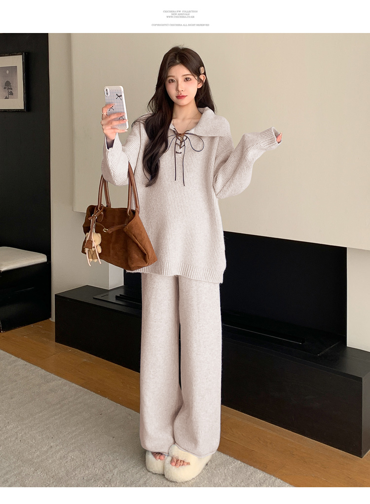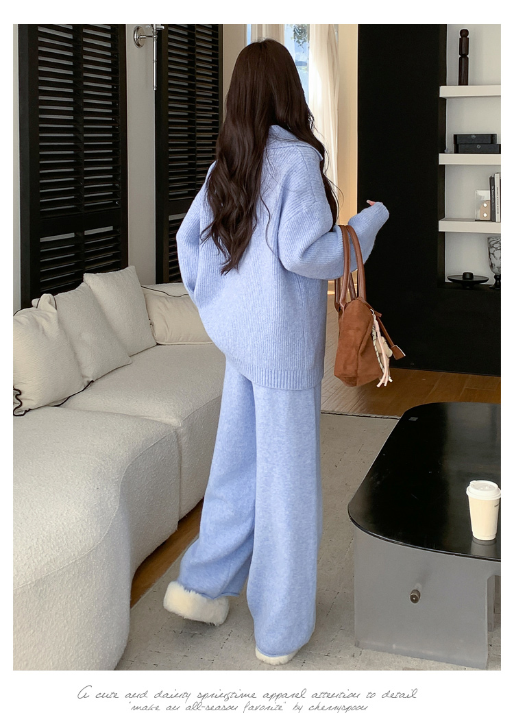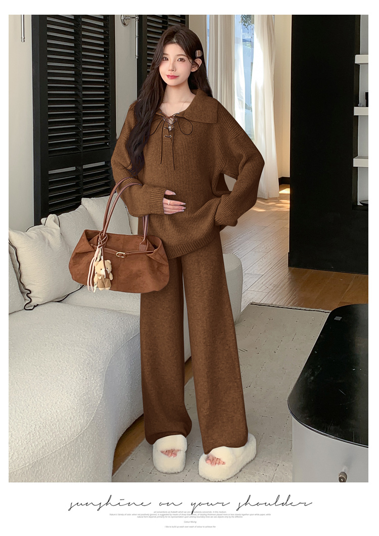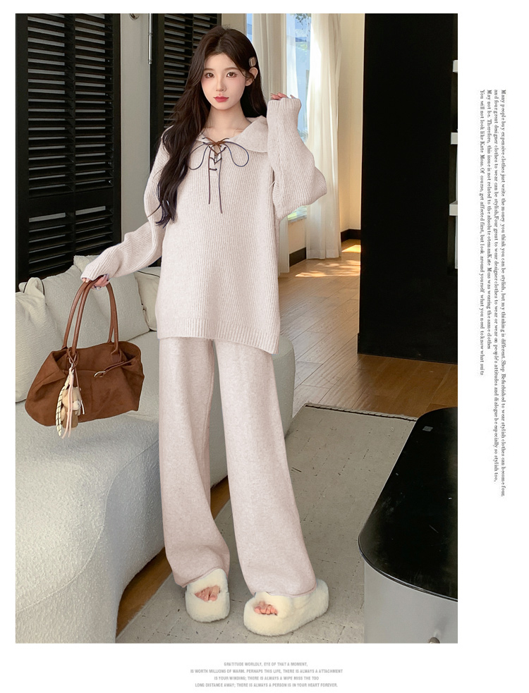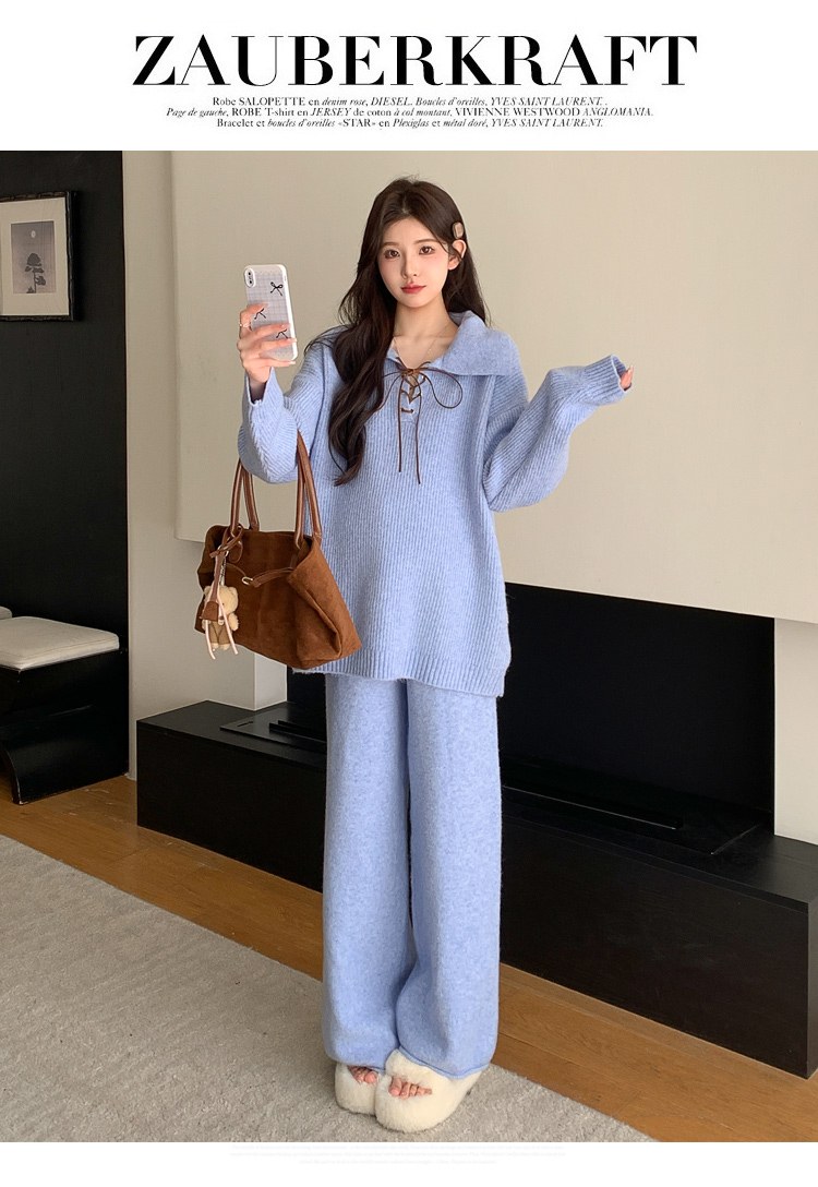 实拍~2025孕妇宽松慵懒风针织秋冬时尚保暖两件套小个子套装