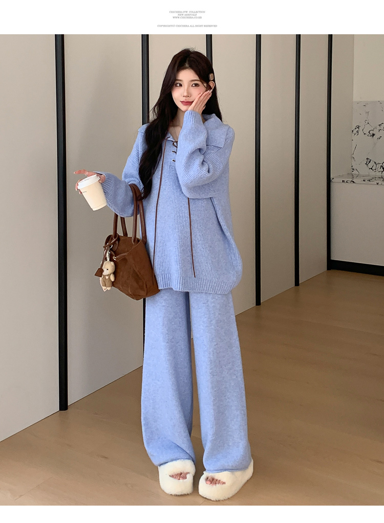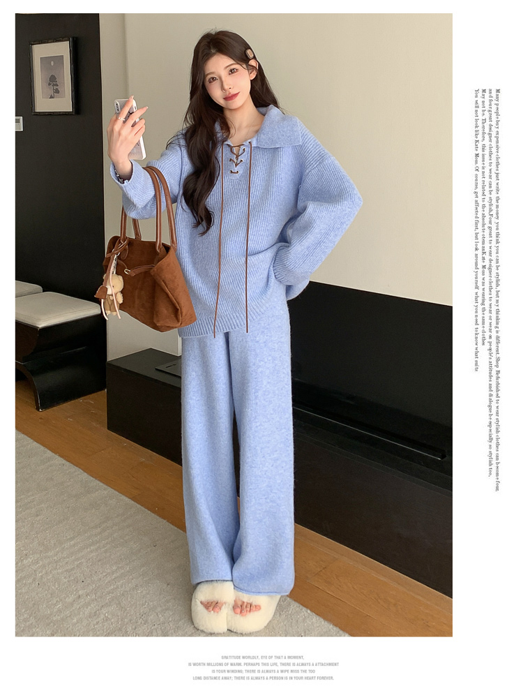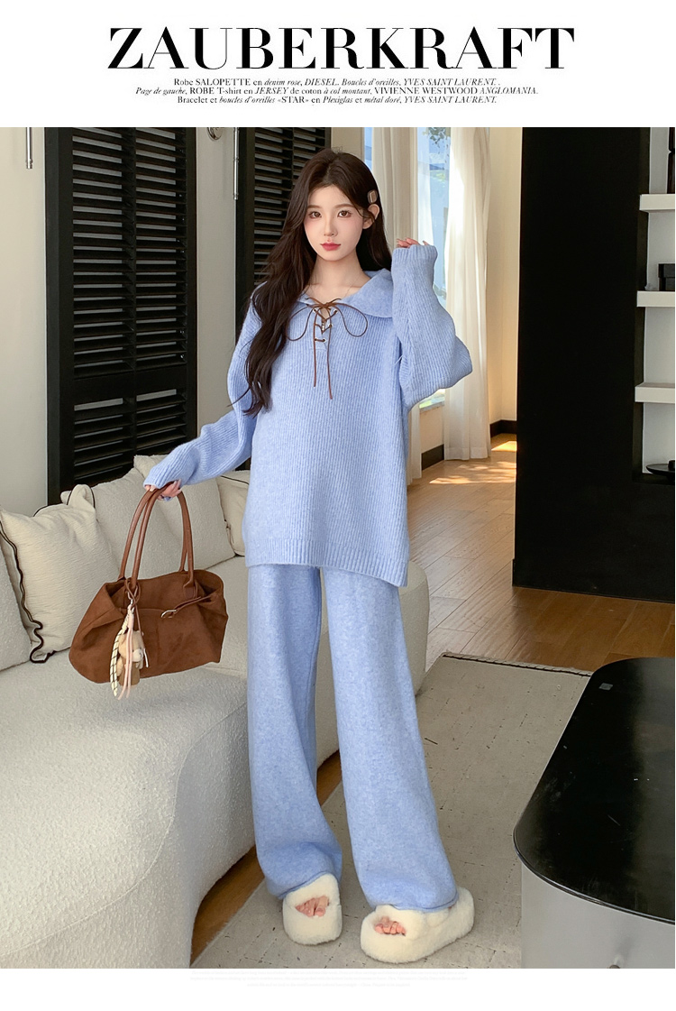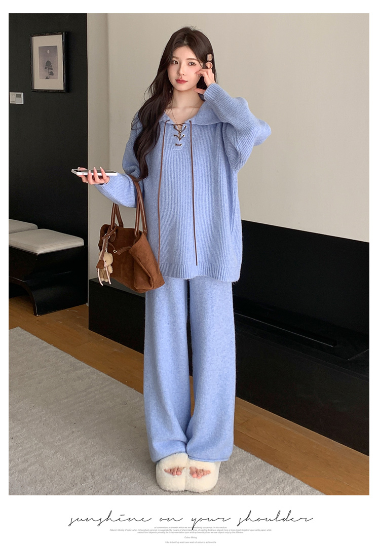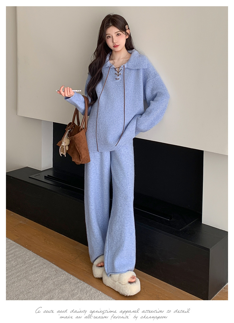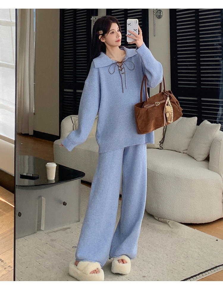 实拍~2025孕妇宽松慵懒风针织秋冬时尚保暖两件套小个子套装