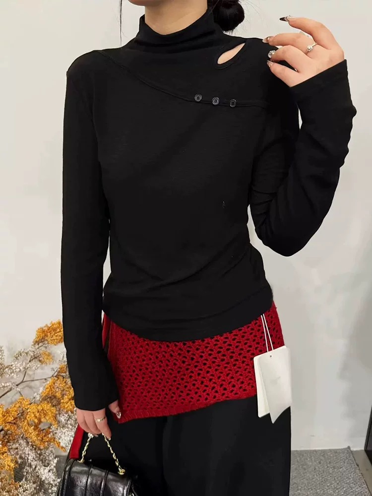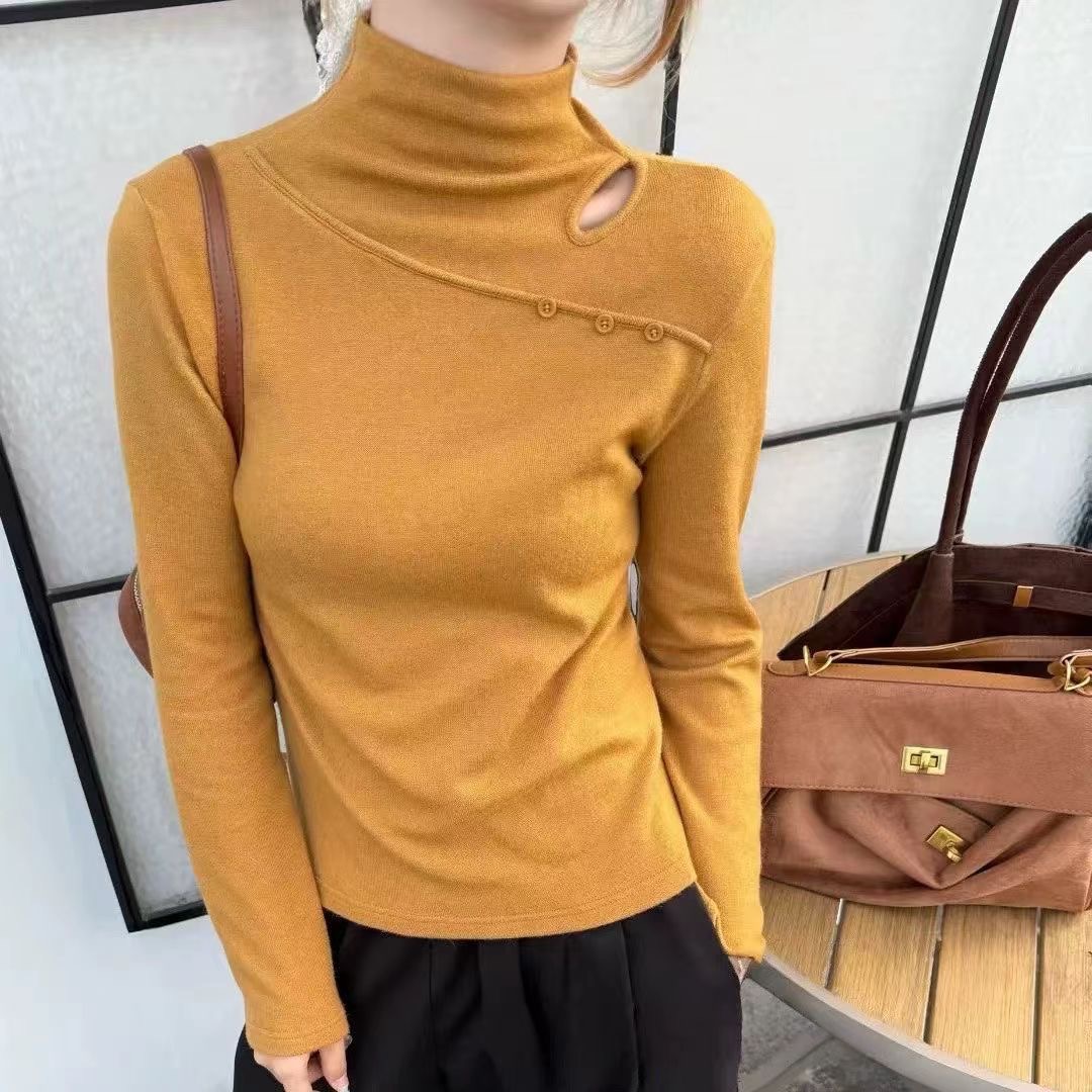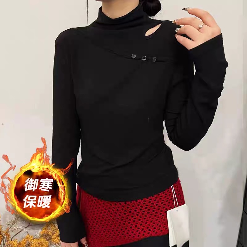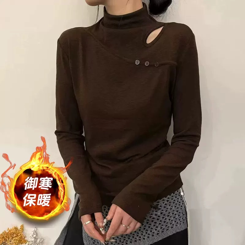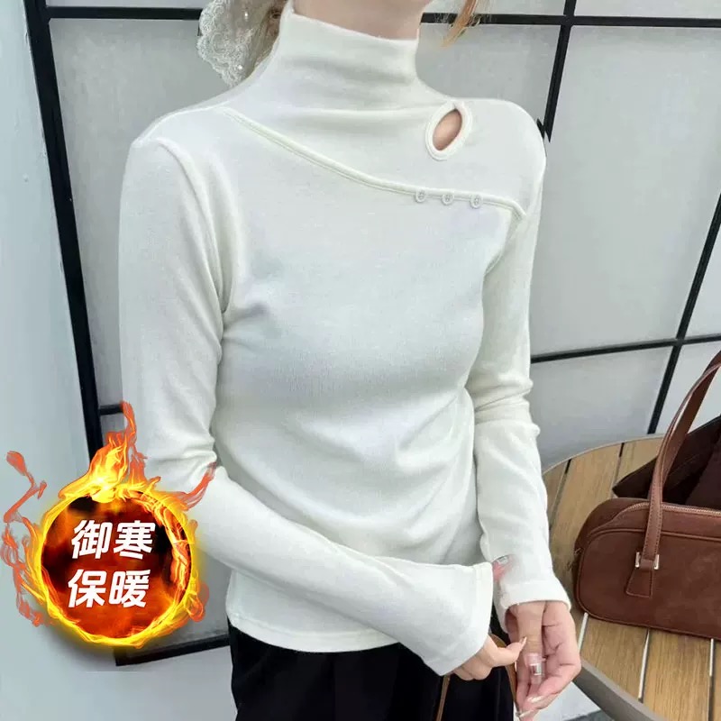 加绒打底衫女2025秋冬新款洋气高领体恤衫设计感显瘦加厚德绒上衣