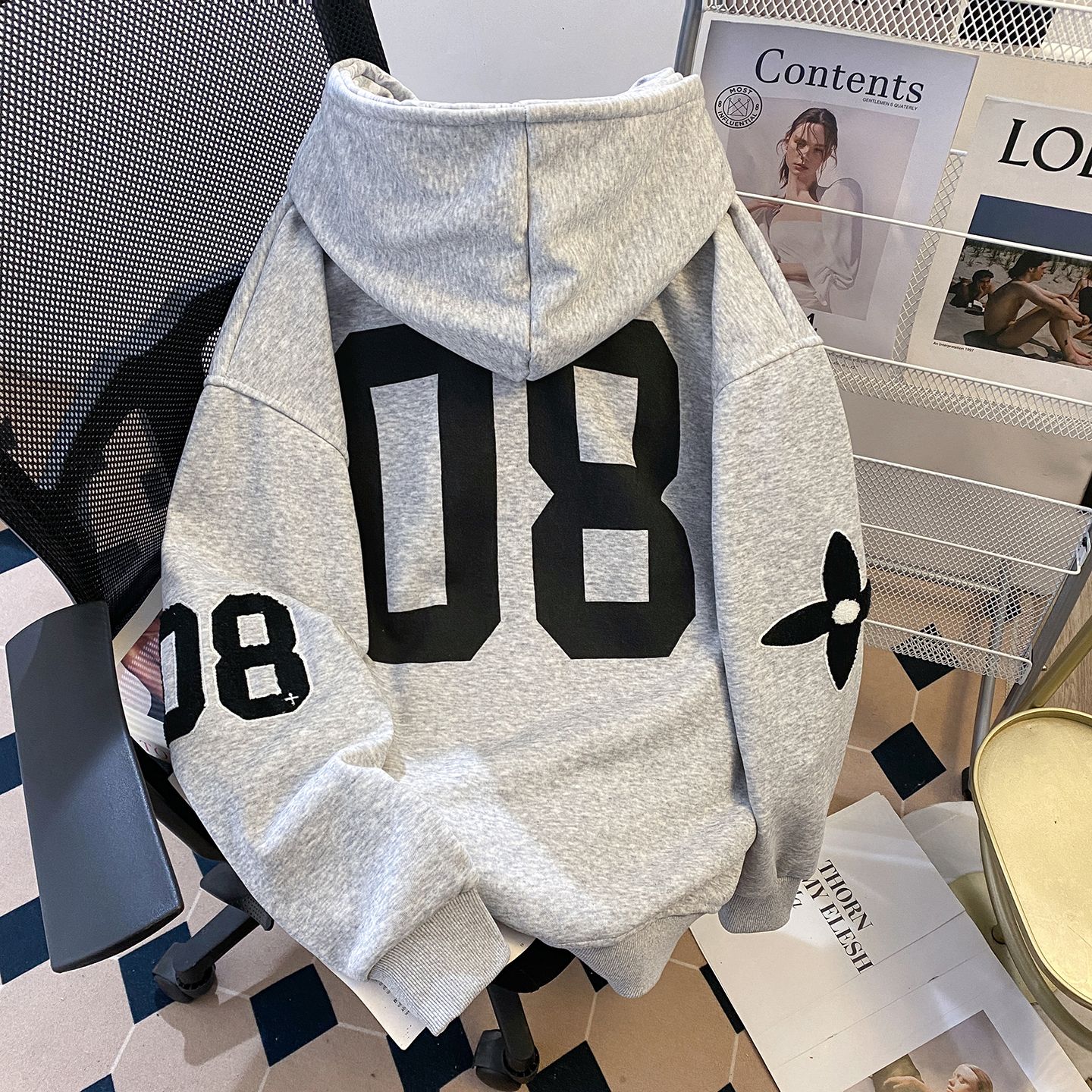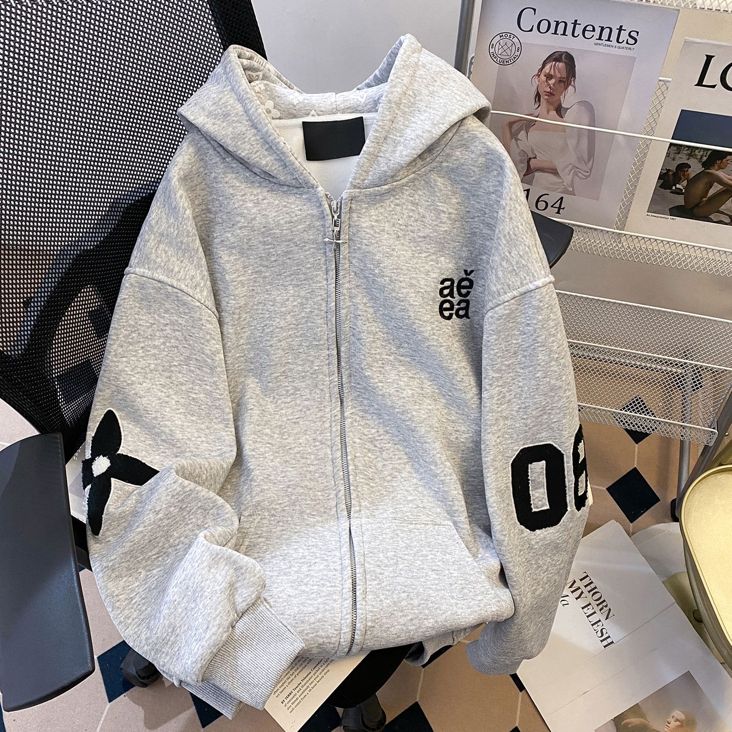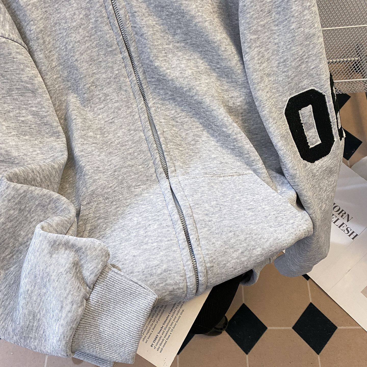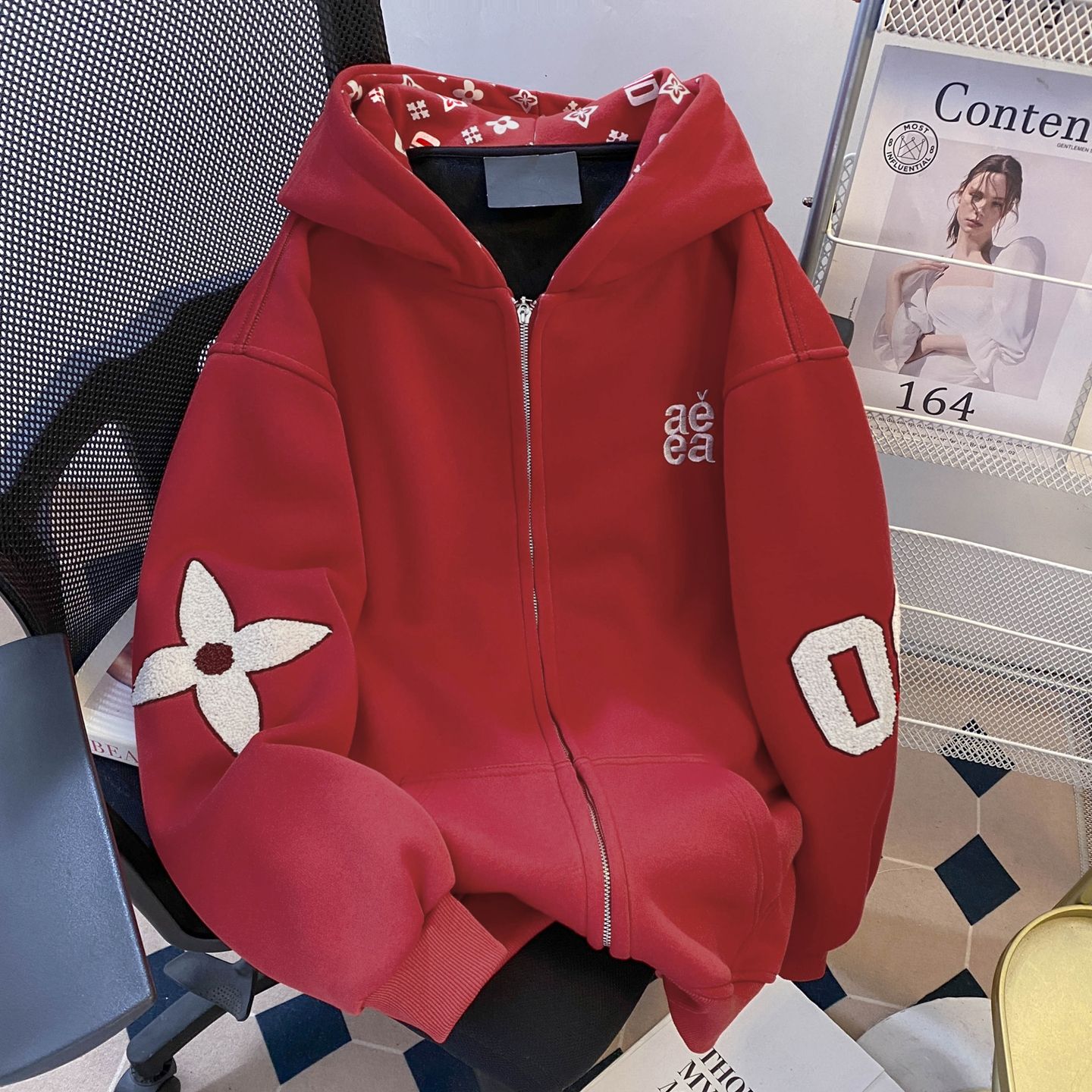 실제 사진, 특별 가격 변동 없음, 오리지널 자수, 화미안 순면 혼방 은여우털 420g 커플 가디건 스웨트셔츠.