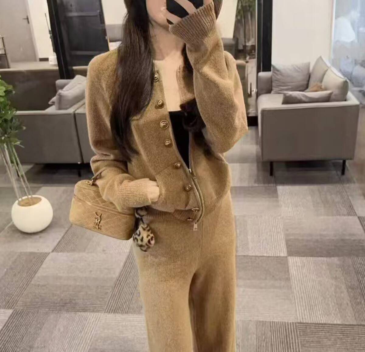 올해 인기 있는 여성 투피스 정장 세트, 2025년 신상 스타일, 캐주얼하고 편안한 디자인, 두툼한 니트 가디건과 캐주얼 팬츠로 구성되어 있습니다.
