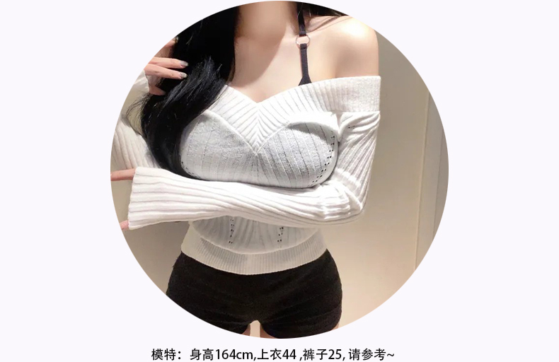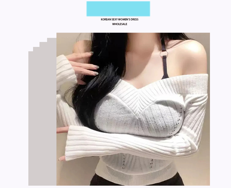 韩国东大门新品 性感显身材 纯欲 女人味露肩紧身打底针织衫上衣