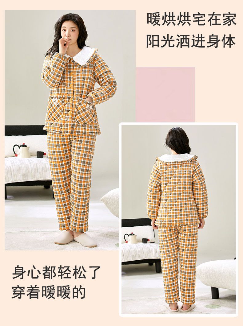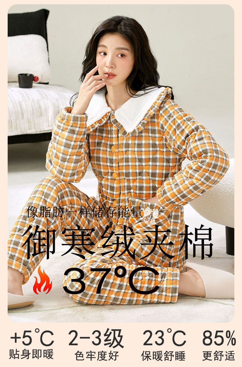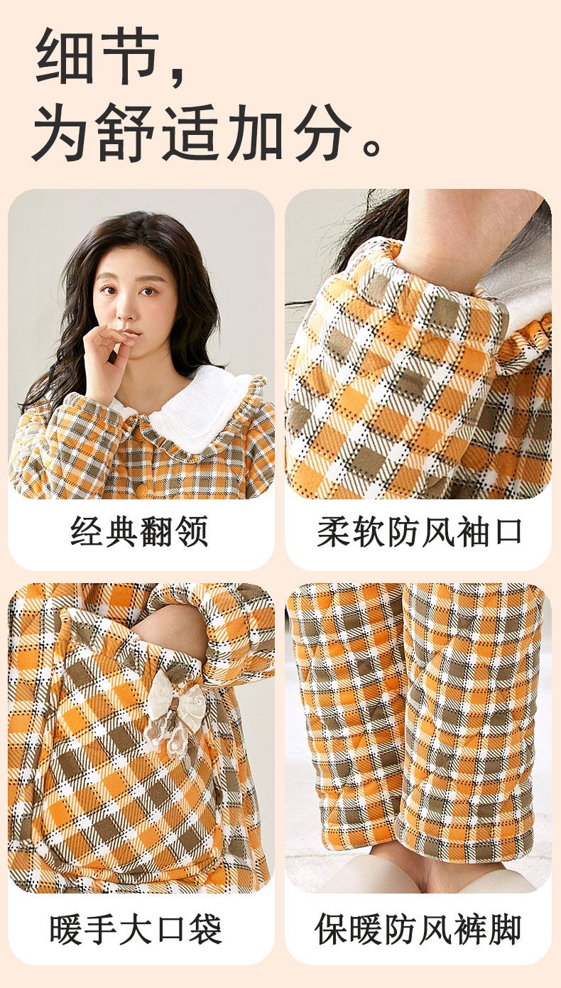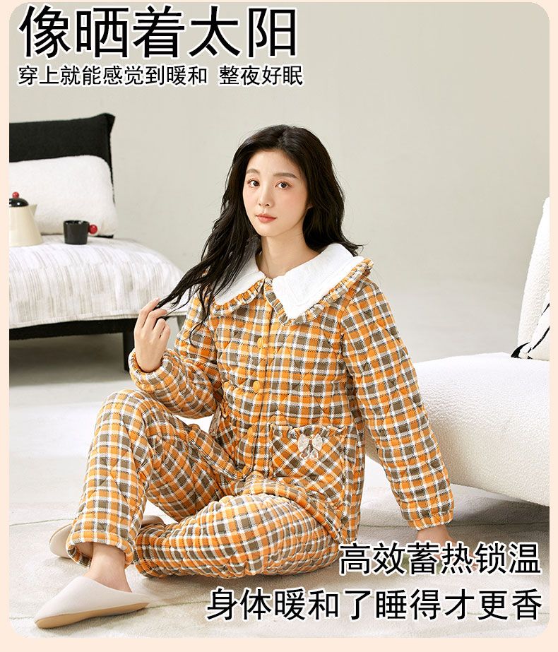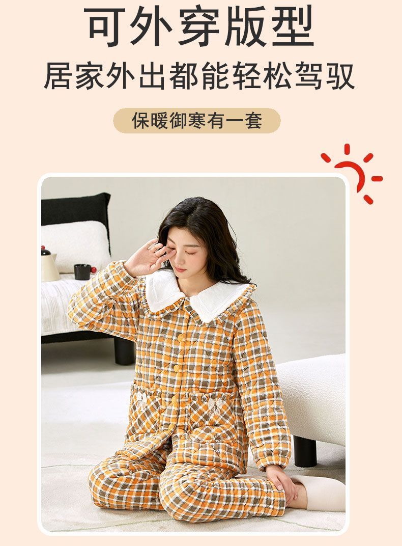 슈야 겨울 여성용 거위털 면 다운 프린트 3겹 퀼팅 플리스 두툼하고 따뜻하며 사랑스러운 홈웨어