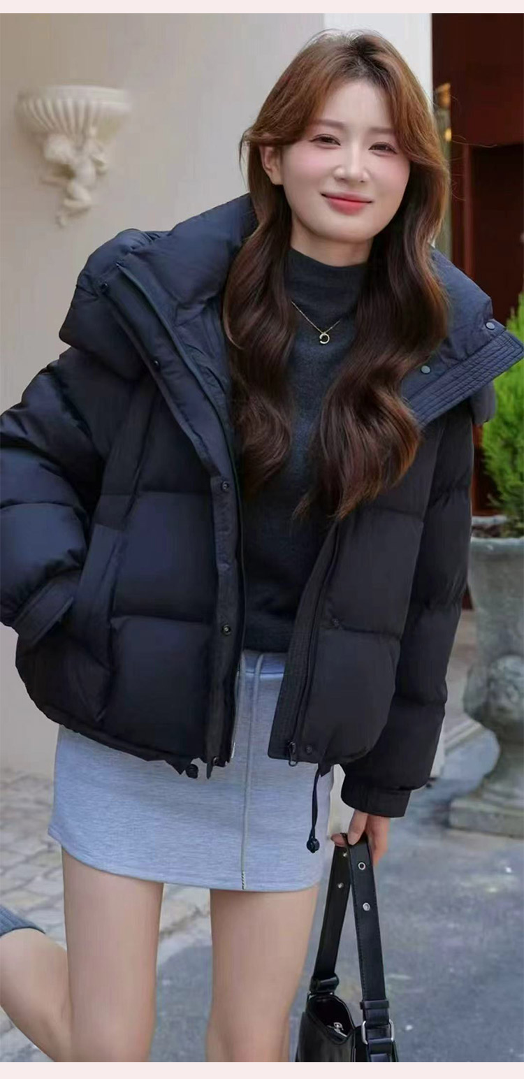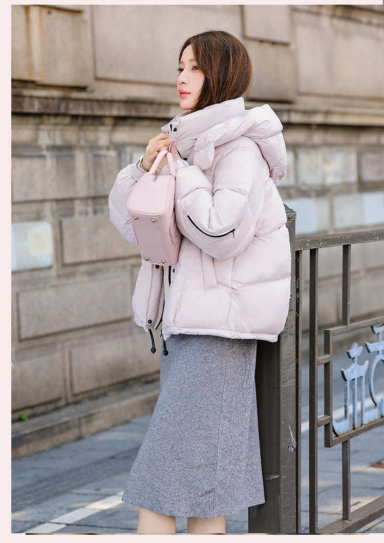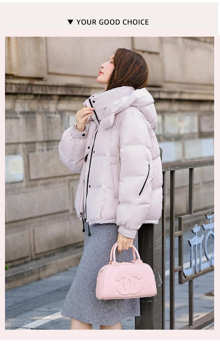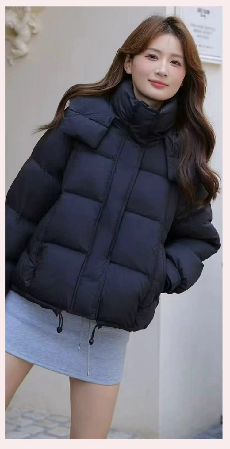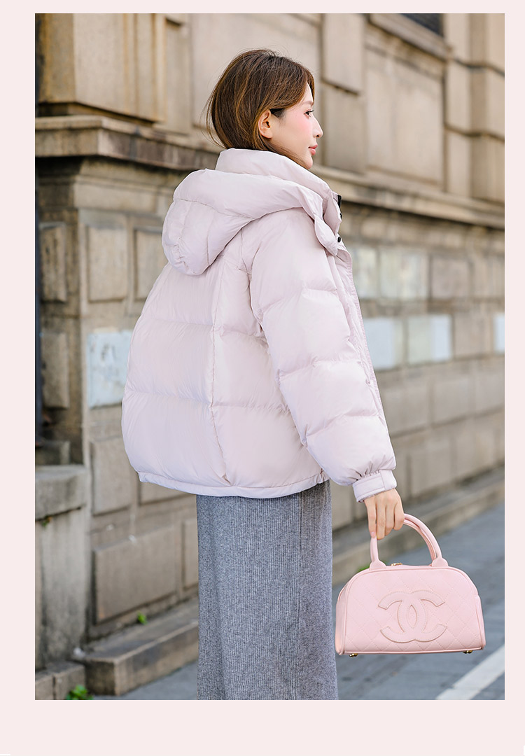 두툼하고 폭신한 소매에 작은 지퍼가 달린 2025년 신상 여성용 화이트 덕다운 재킷입니다. 두툼하고 넉넉한 핏으로 활용도 높은 아우터입니다.