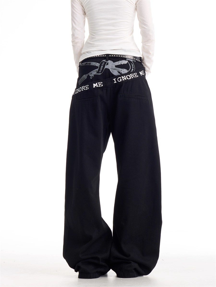 여성용 아메리칸 스타일 레트로 핫걸 디자인 와이드 레그 진, 2025 가을/겨울, 루즈핏 스트레이트 레그 캐주얼 팬츠