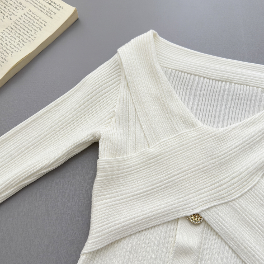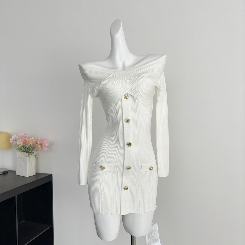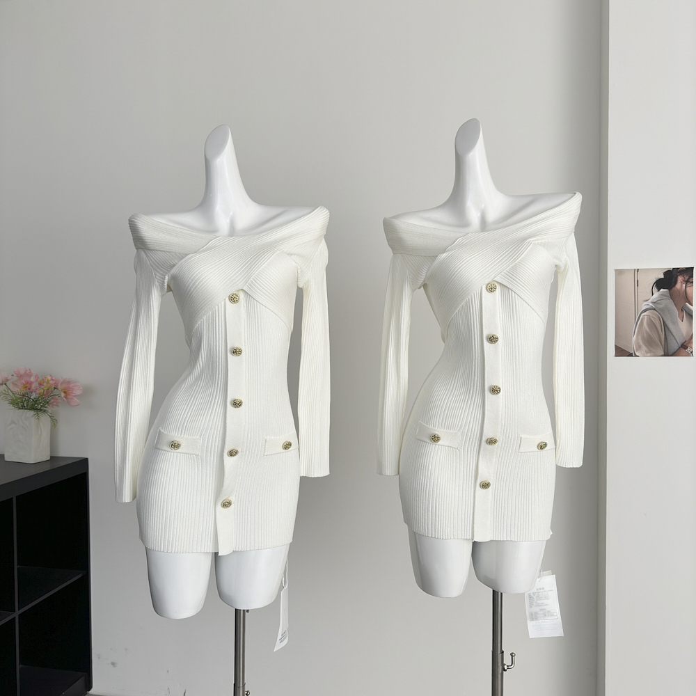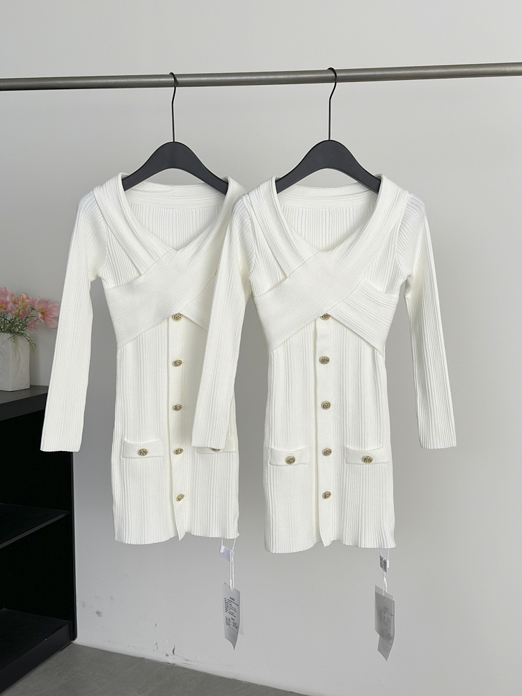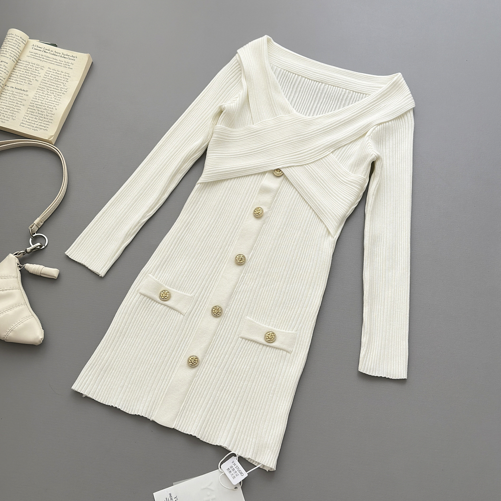 저스트퀸 웨이스트라인 걸 2025 신상 크로스 니트 스커트, 우아한 스웨터 드레스, 여성용 짧은 스커트