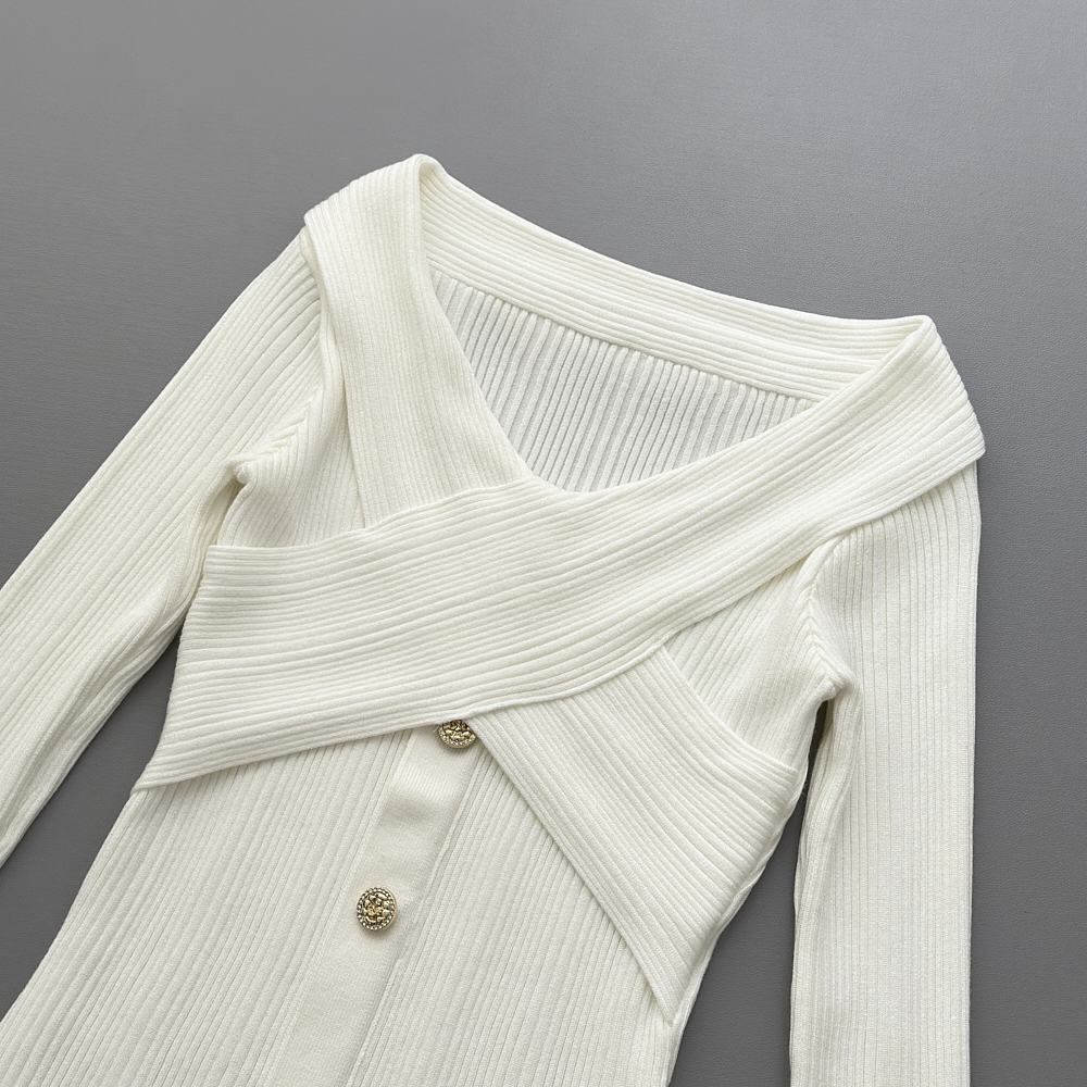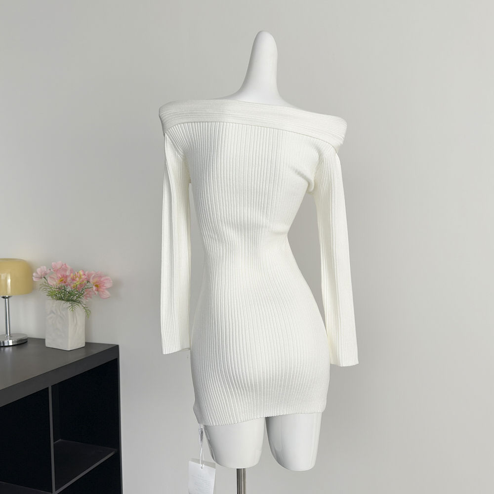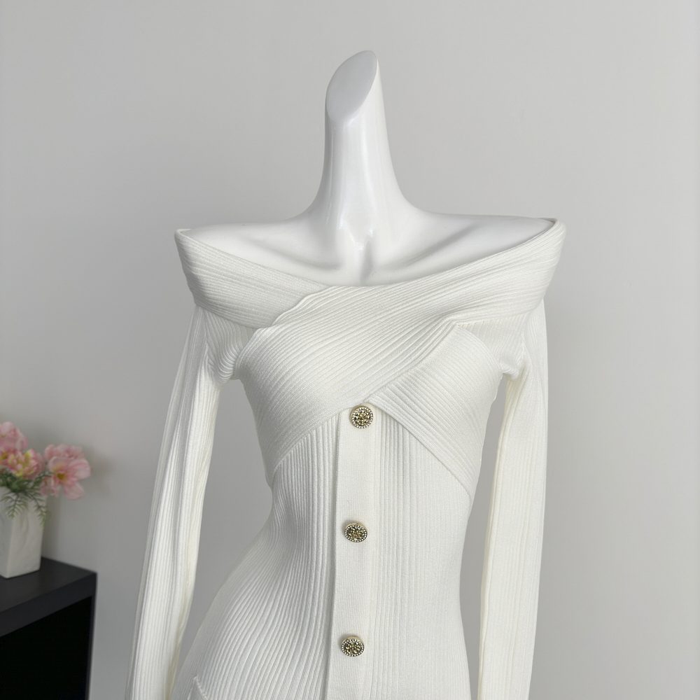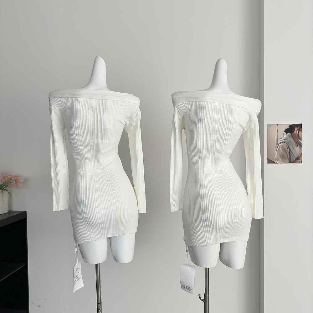 저스트퀸 웨이스트라인 걸 2025 신상 크로스 니트 스커트, 우아한 스웨터 드레스, 여성용 짧은 스커트
