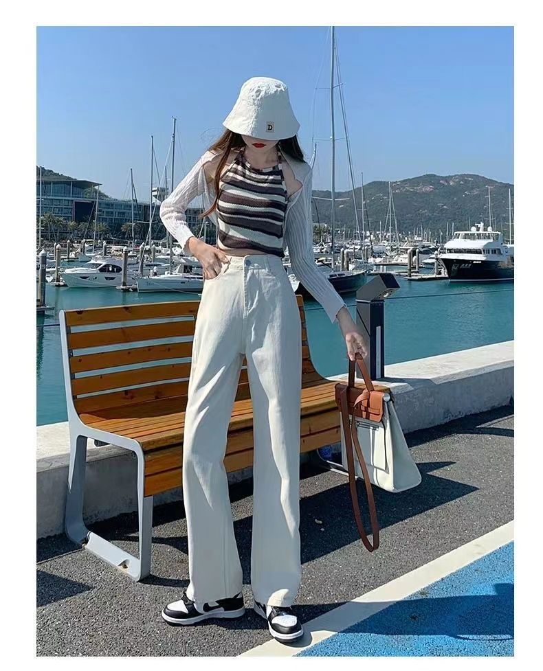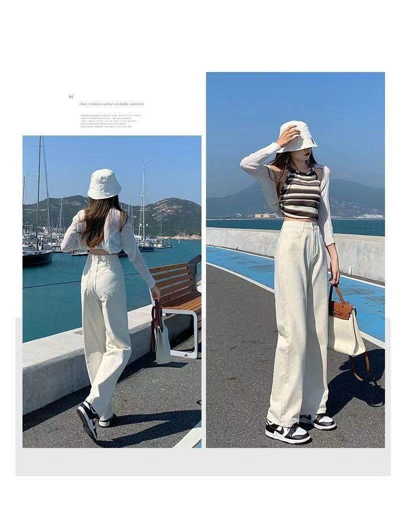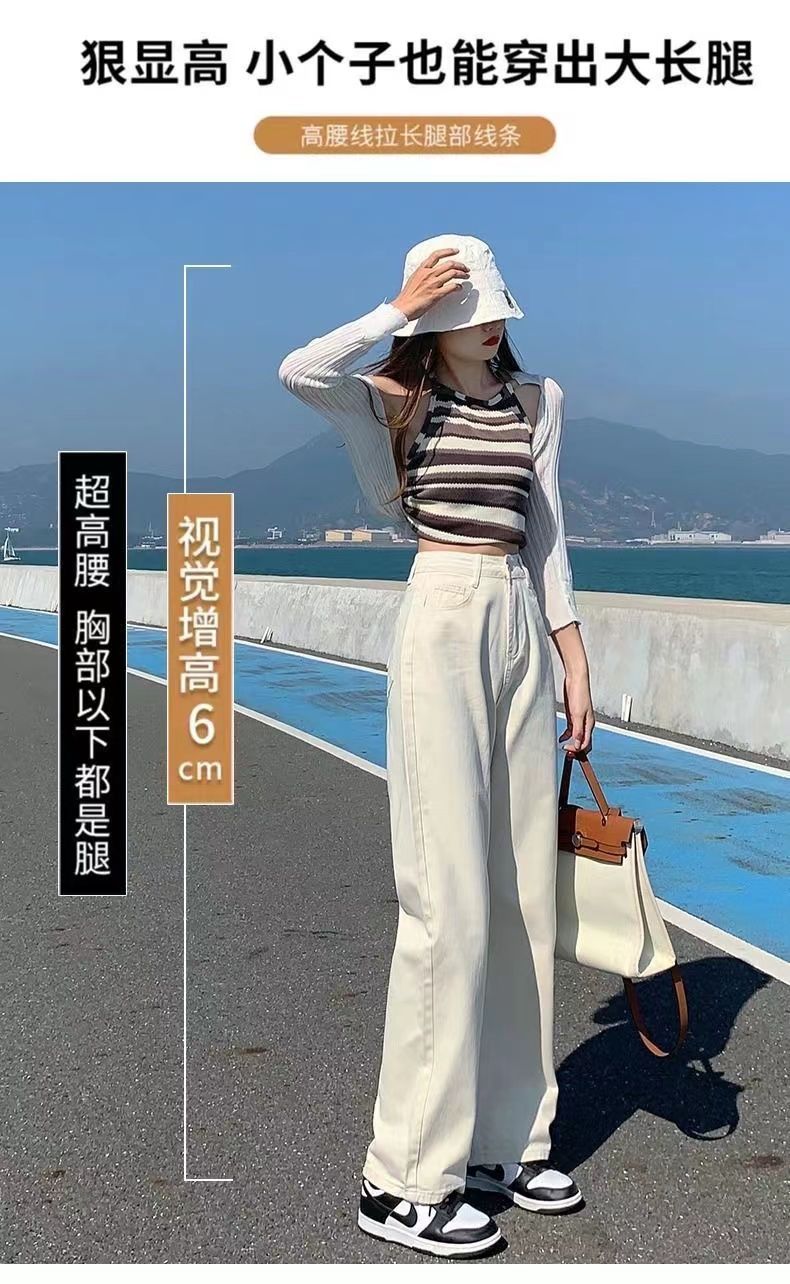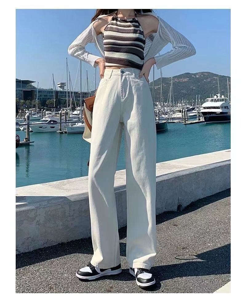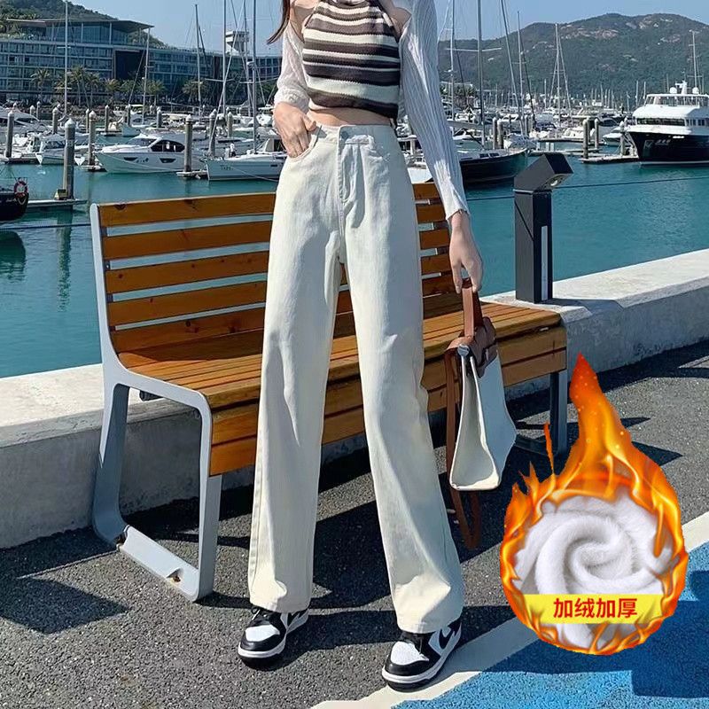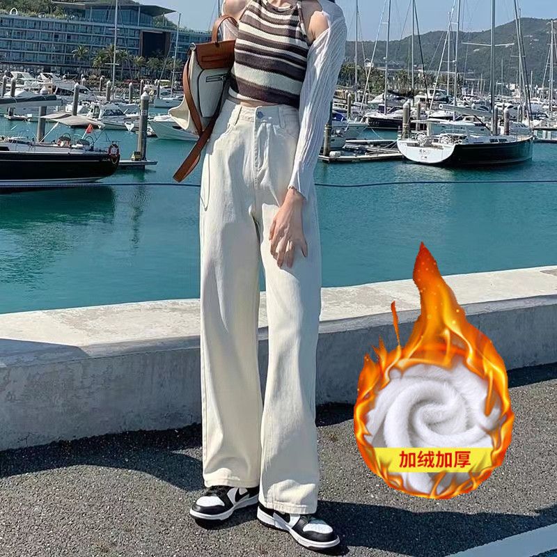 여성용 흰색 플리스 안감 와이드 팬츠, 2025 가을/겨울 신상, 하이웨이스트, 슬림핏, 루즈핏, 스트레이트 핏, 발목까지 오는 길이.