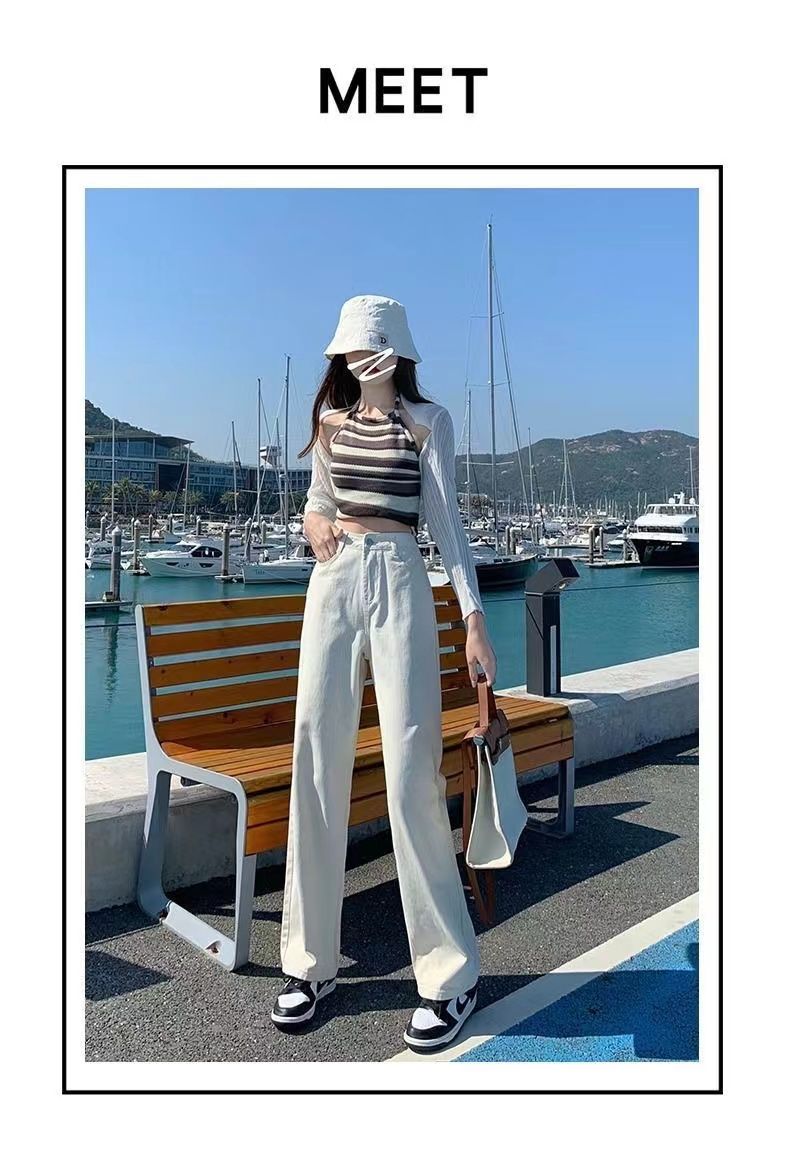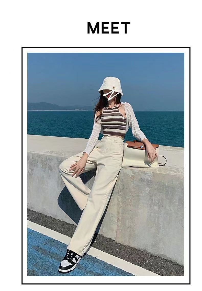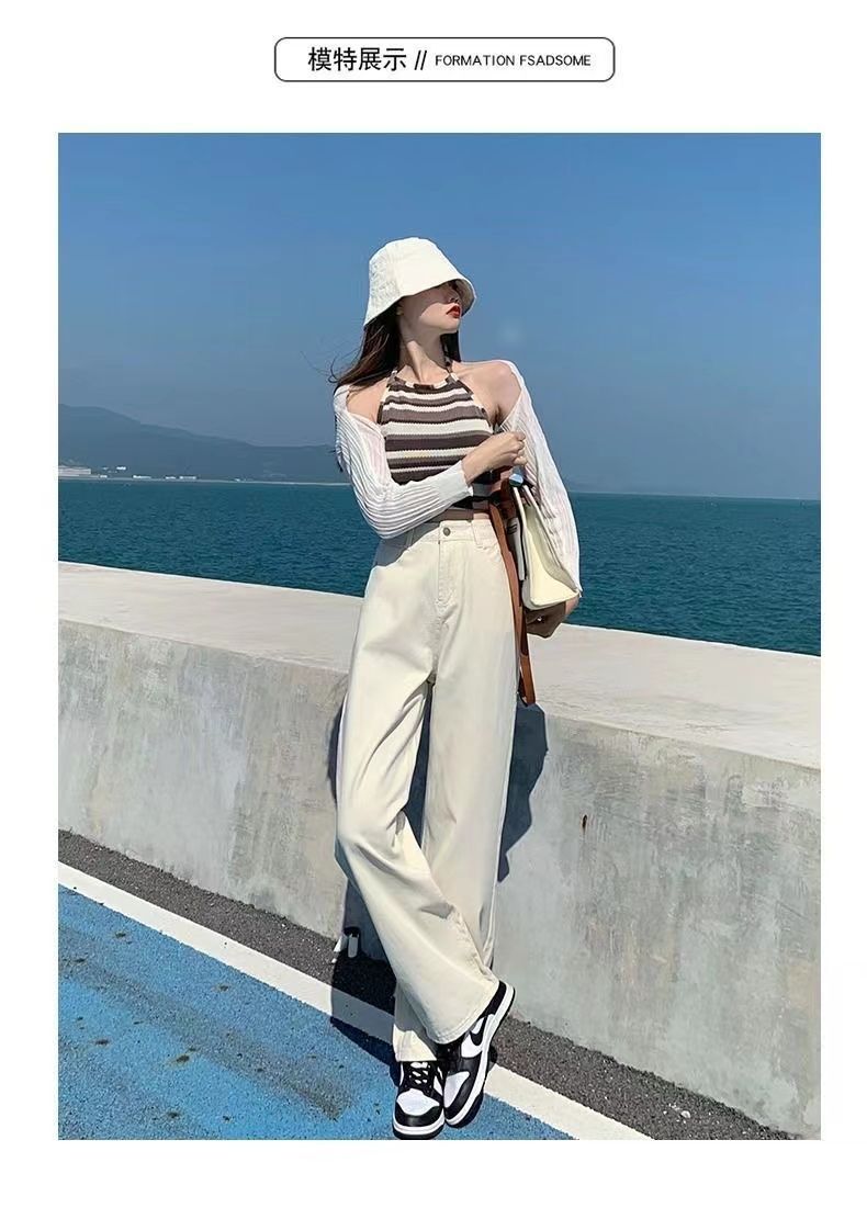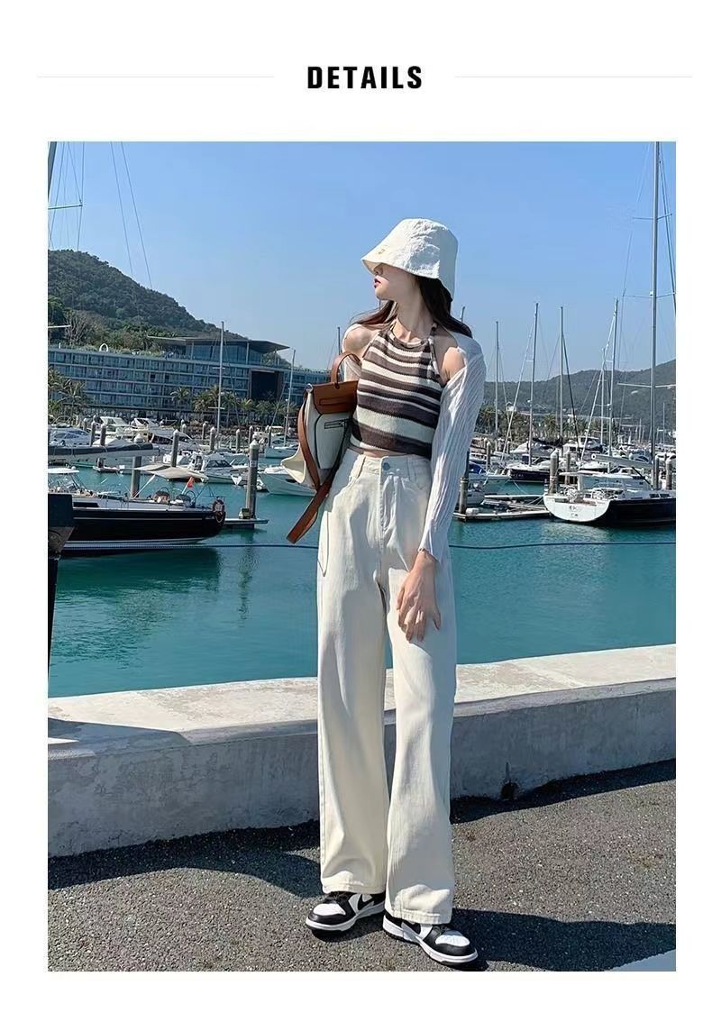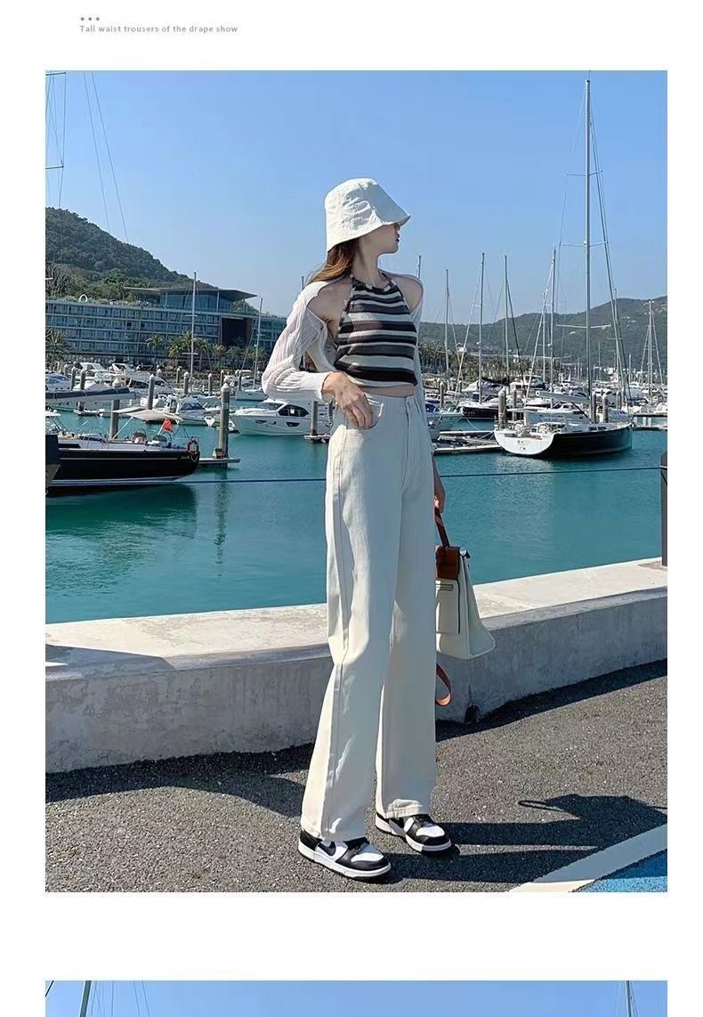 여성용 흰색 플리스 안감 와이드 팬츠, 2025 가을/겨울 신상, 하이웨이스트, 슬림핏, 루즈핏, 스트레이트 핏, 발목까지 오는 길이.