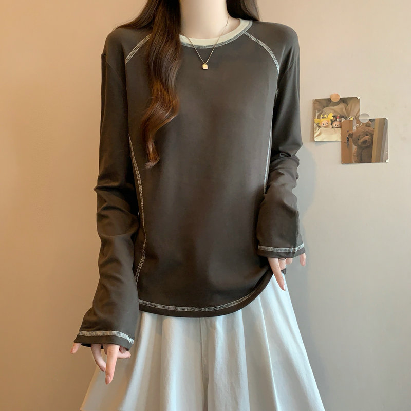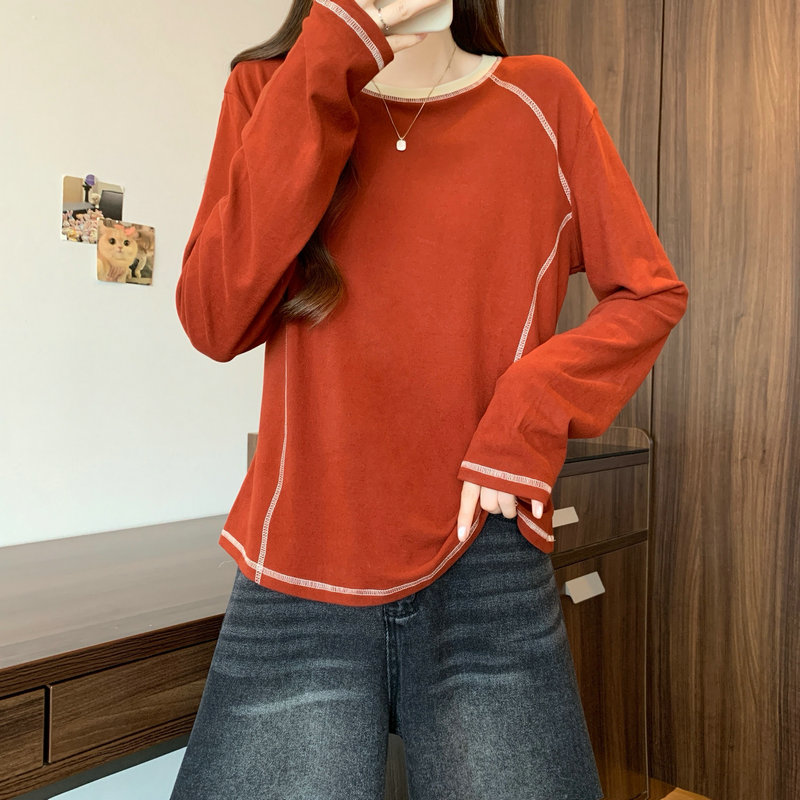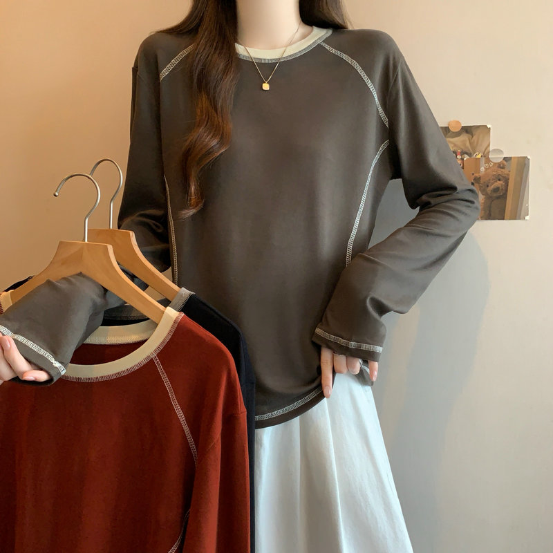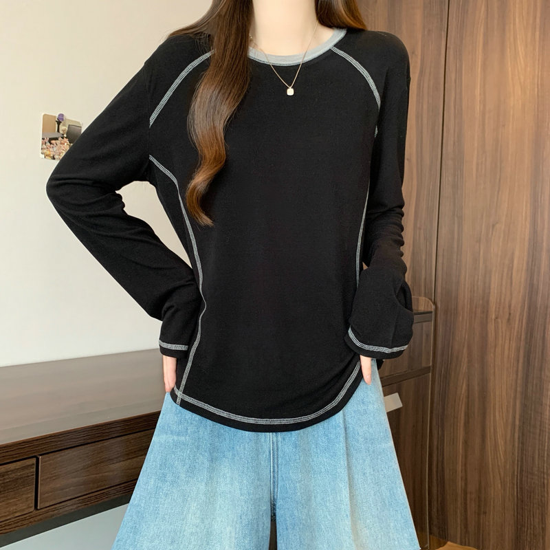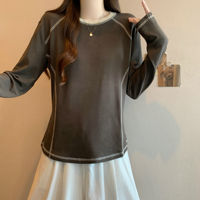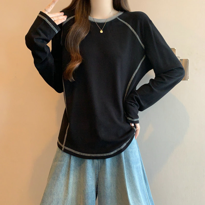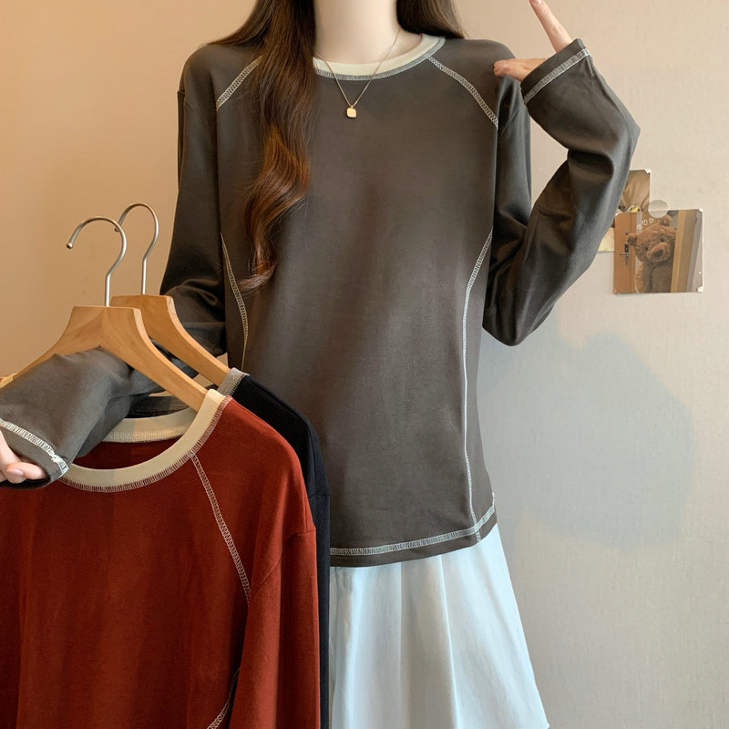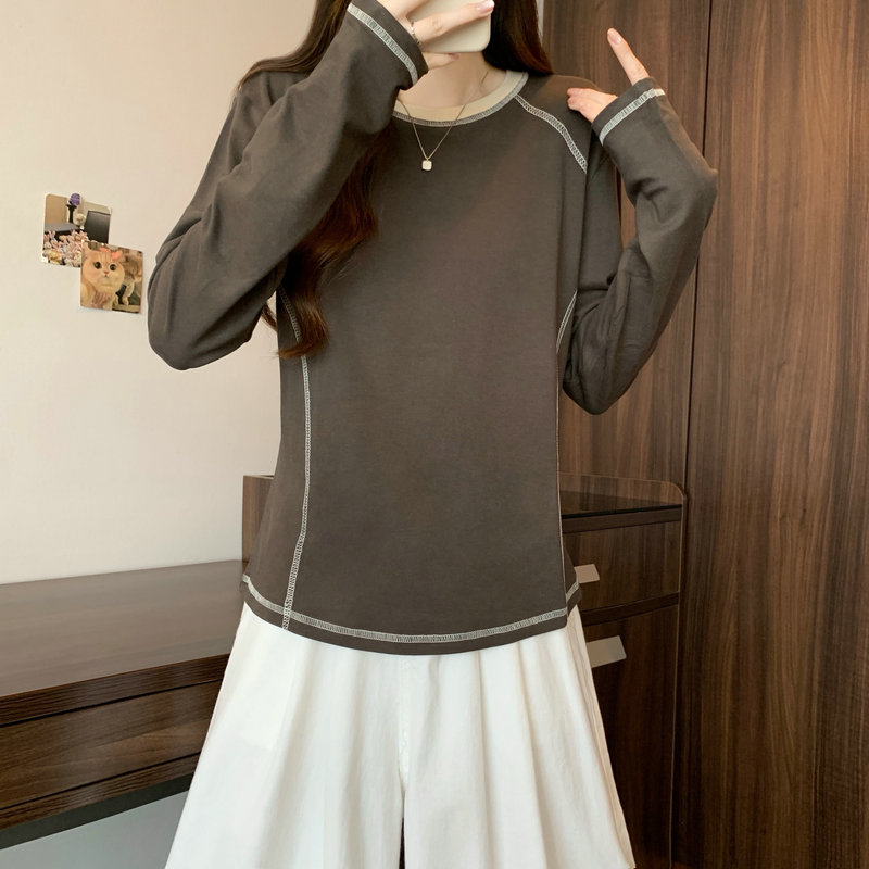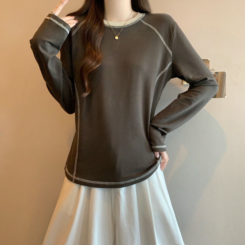 270g 독일산 울 소재의 오리지널 긴팔 티셔츠 실제 사진입니다. 트렌디한 봄/가을 신상 스타일, 플러스 사이즈 여성 의류입니다.