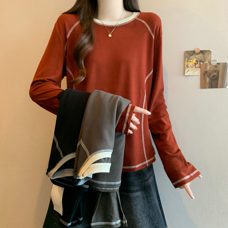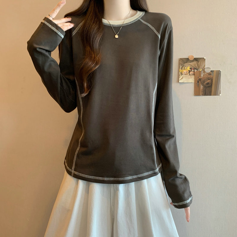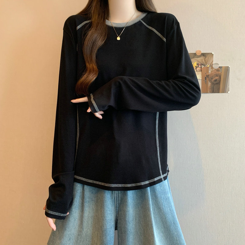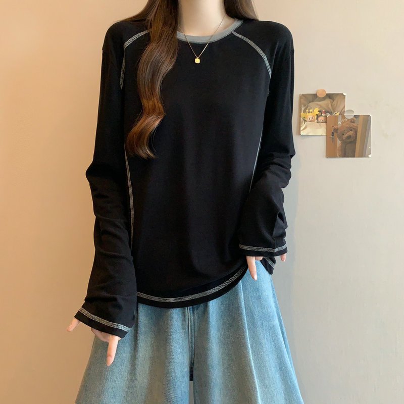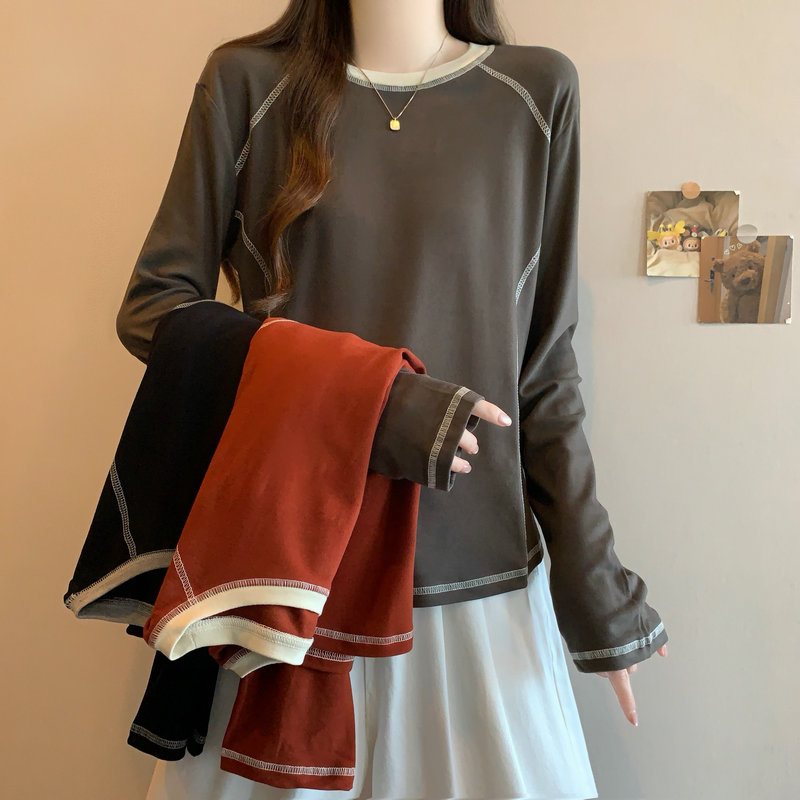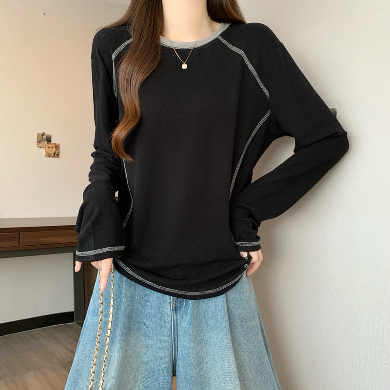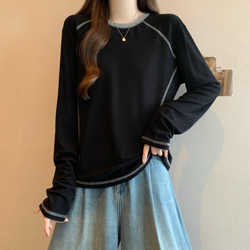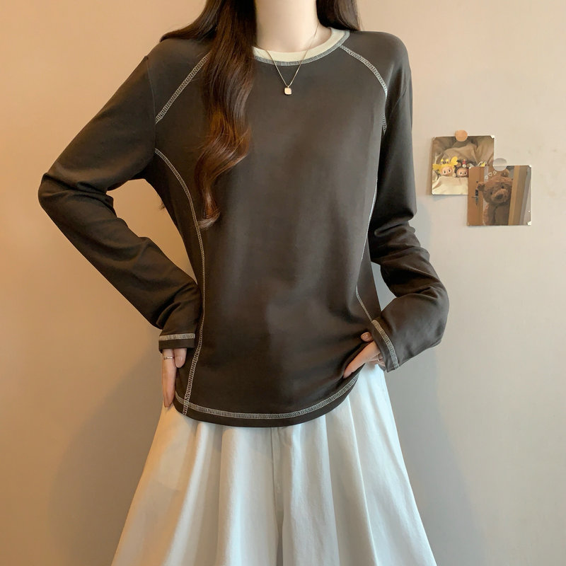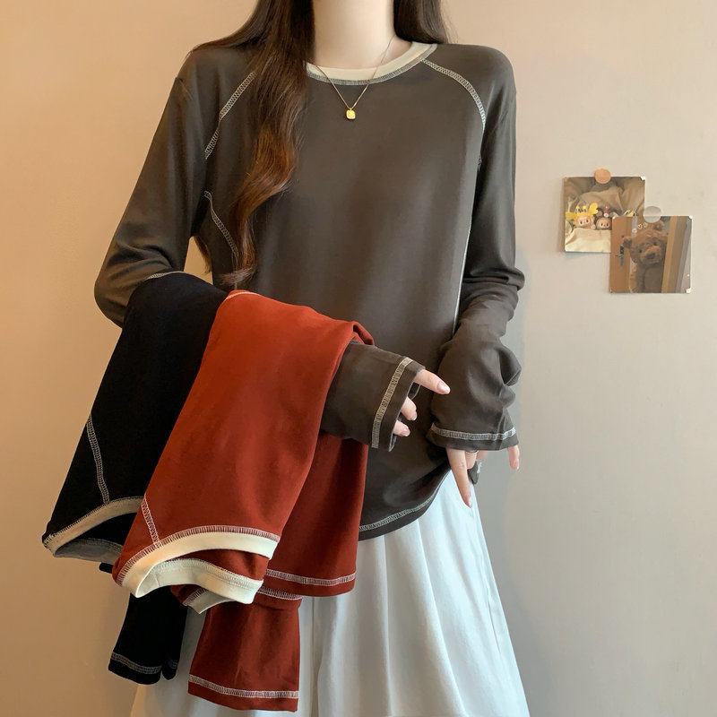270g 독일산 울 소재의 오리지널 긴팔 티셔츠 실제 사진입니다. 트렌디한 봄/가을 신상 스타일, 플러스 사이즈 여성 의류입니다.