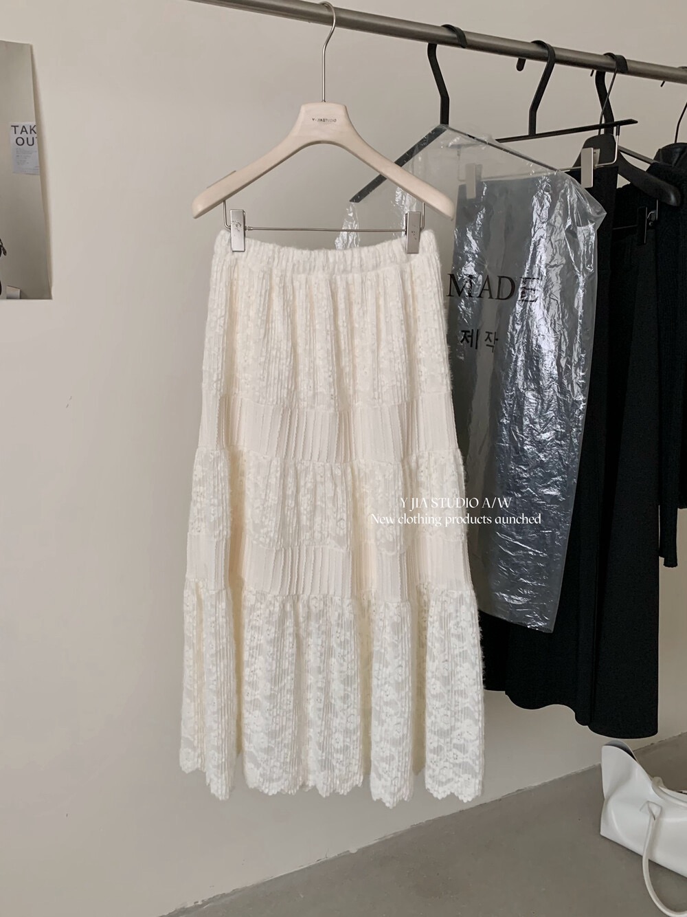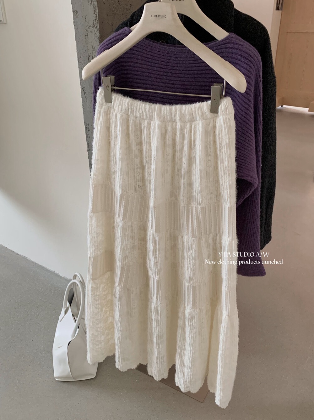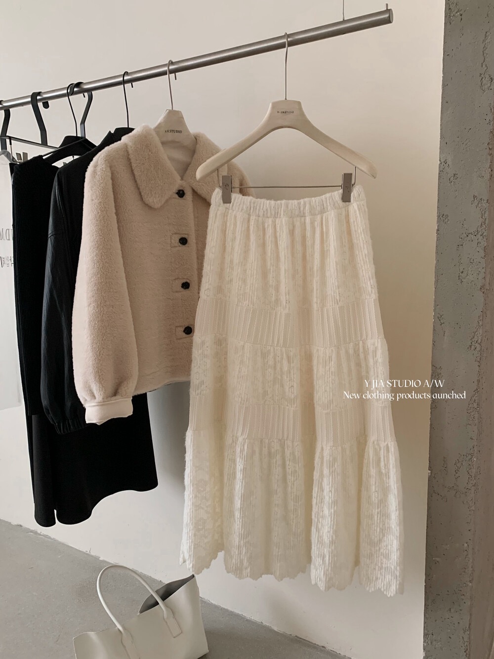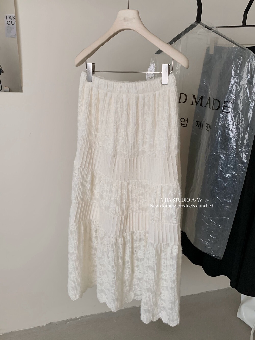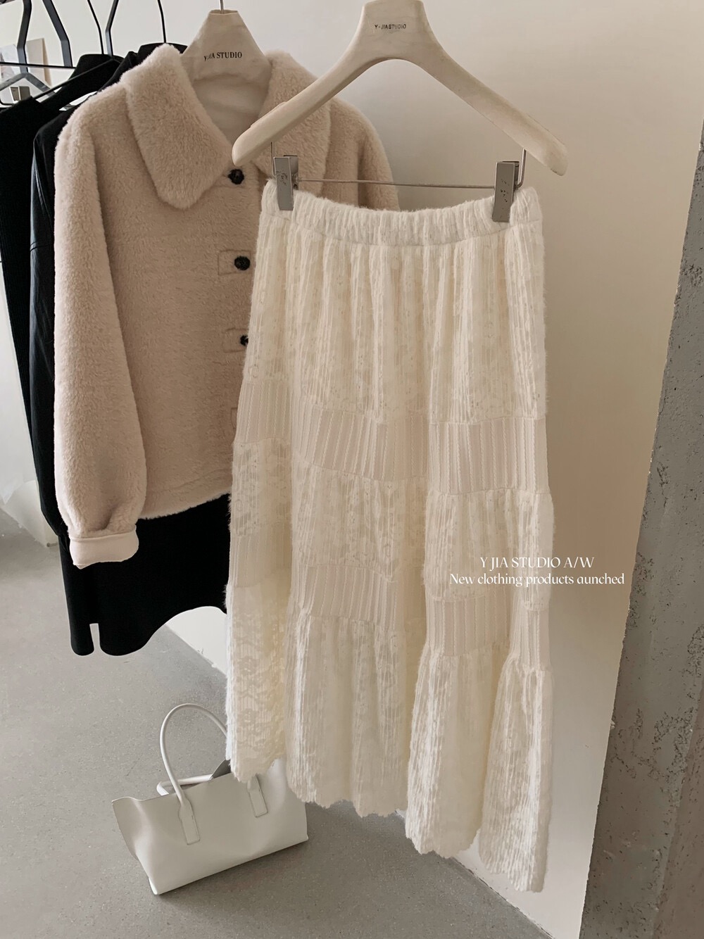 Y.JIA 伊嘉淑女风百搭休闲减龄加厚磨毛蕾丝半身裙半身裙
