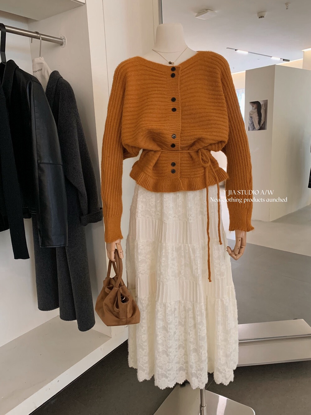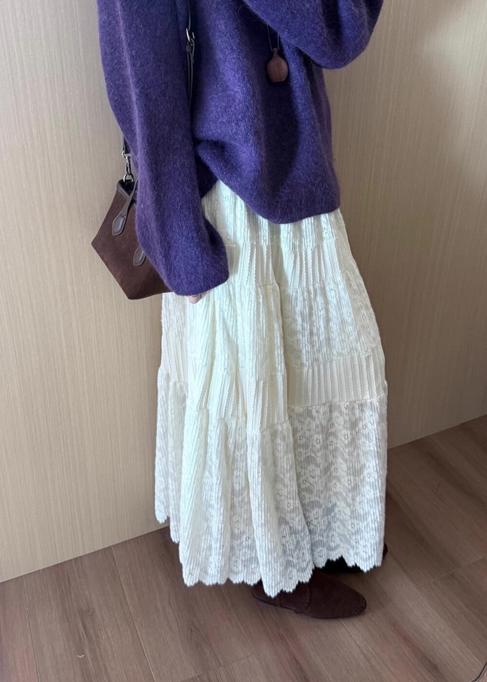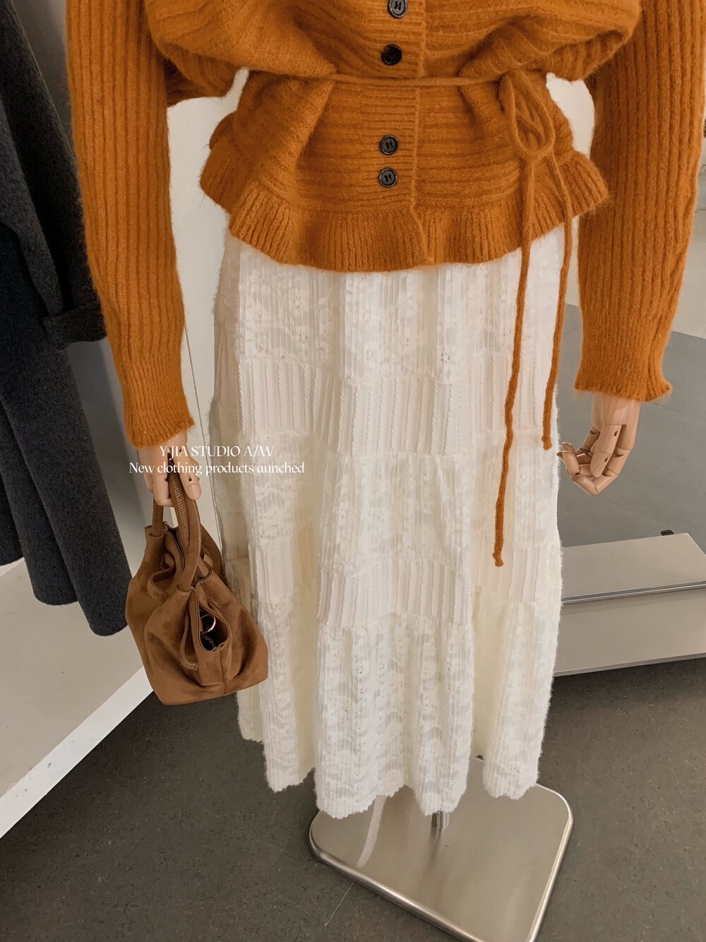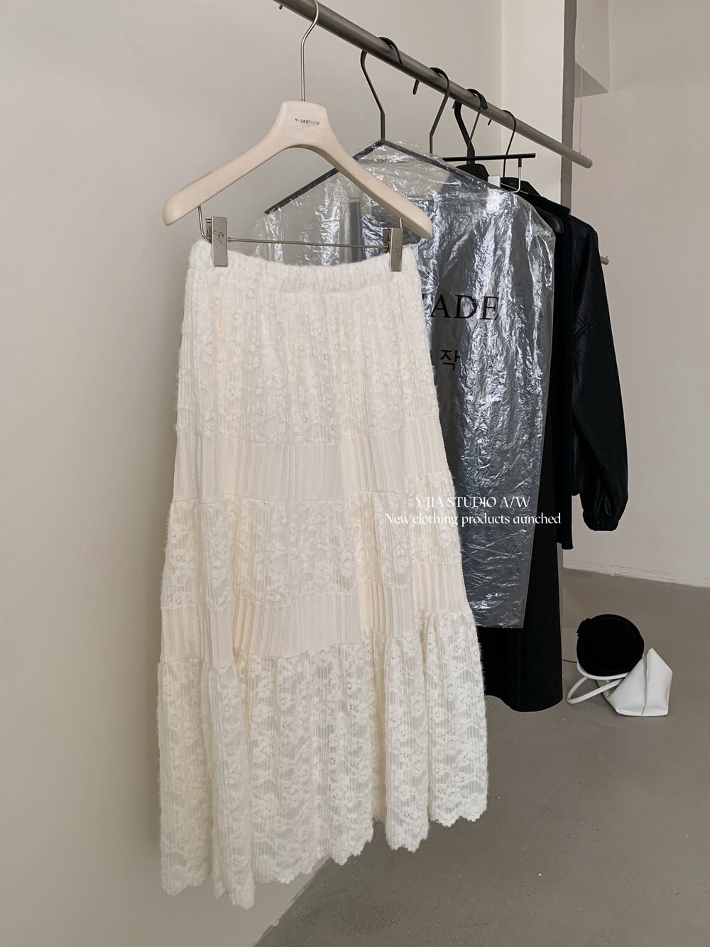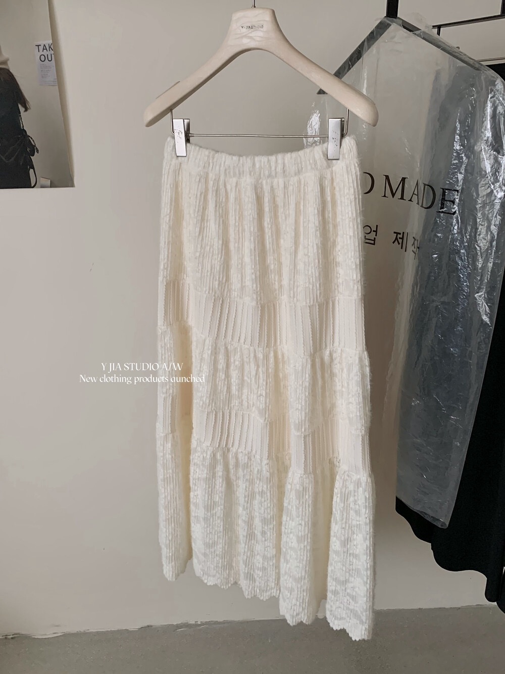 Y.JIA 伊嘉淑女风百搭休闲减龄加厚磨毛蕾丝半身裙半身裙
