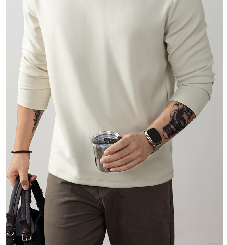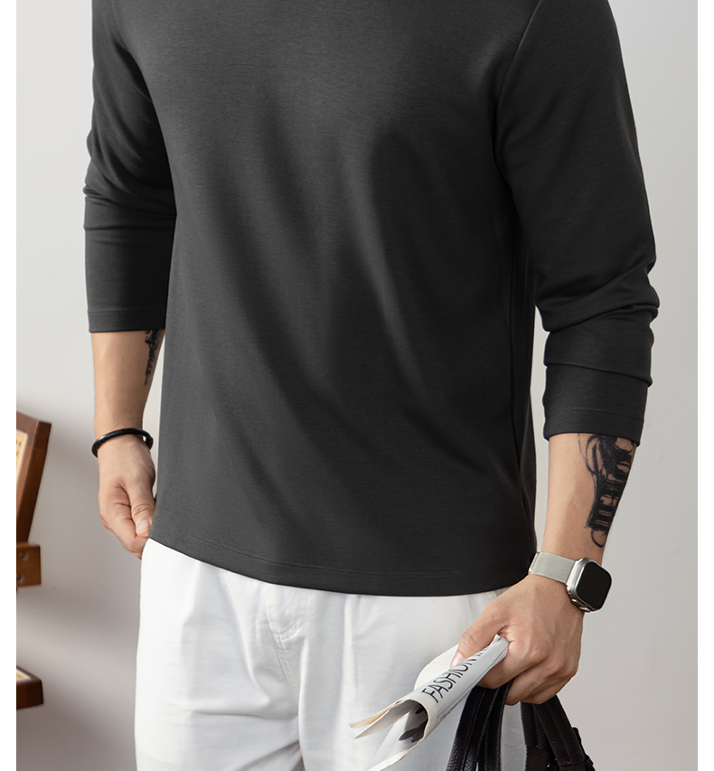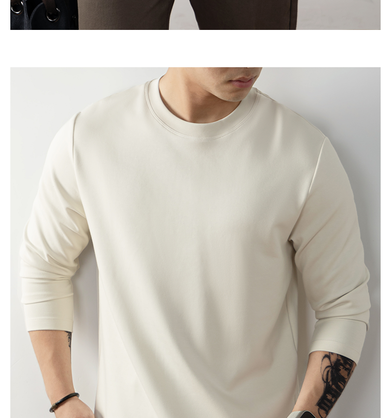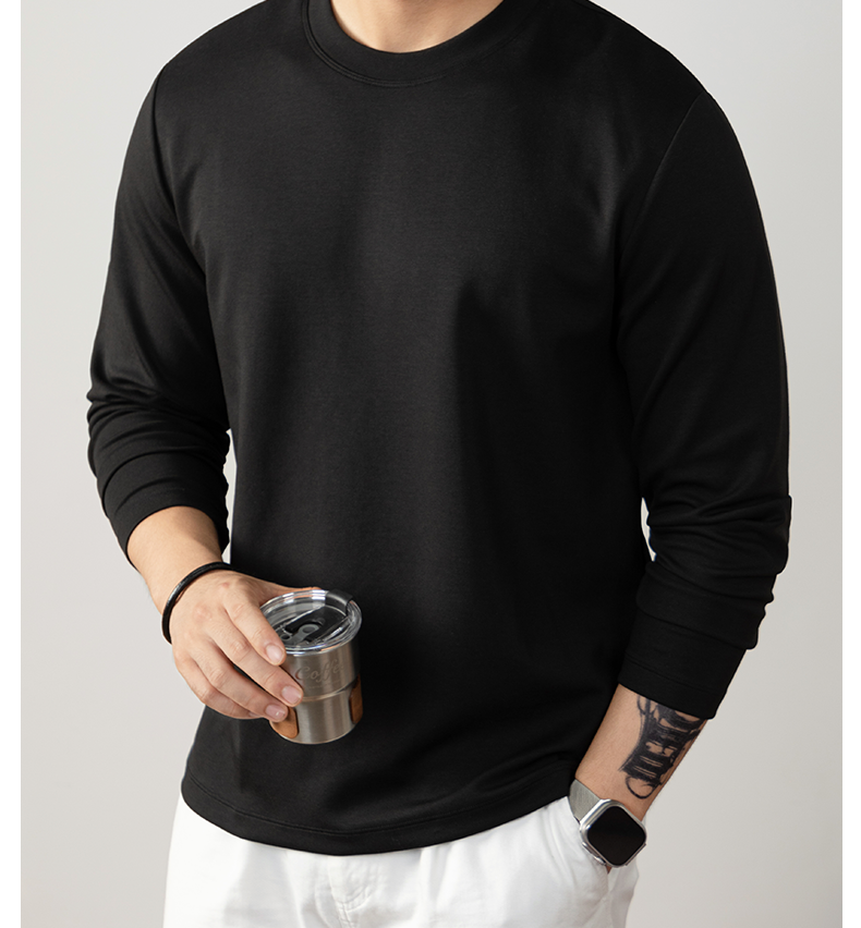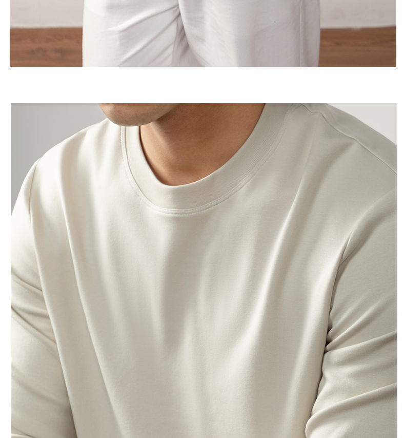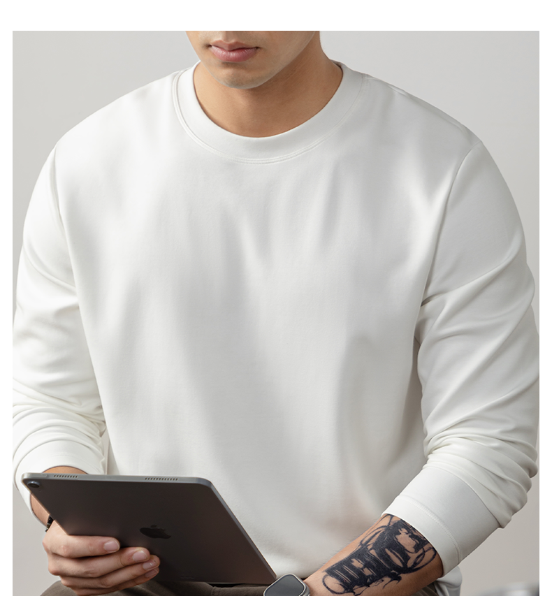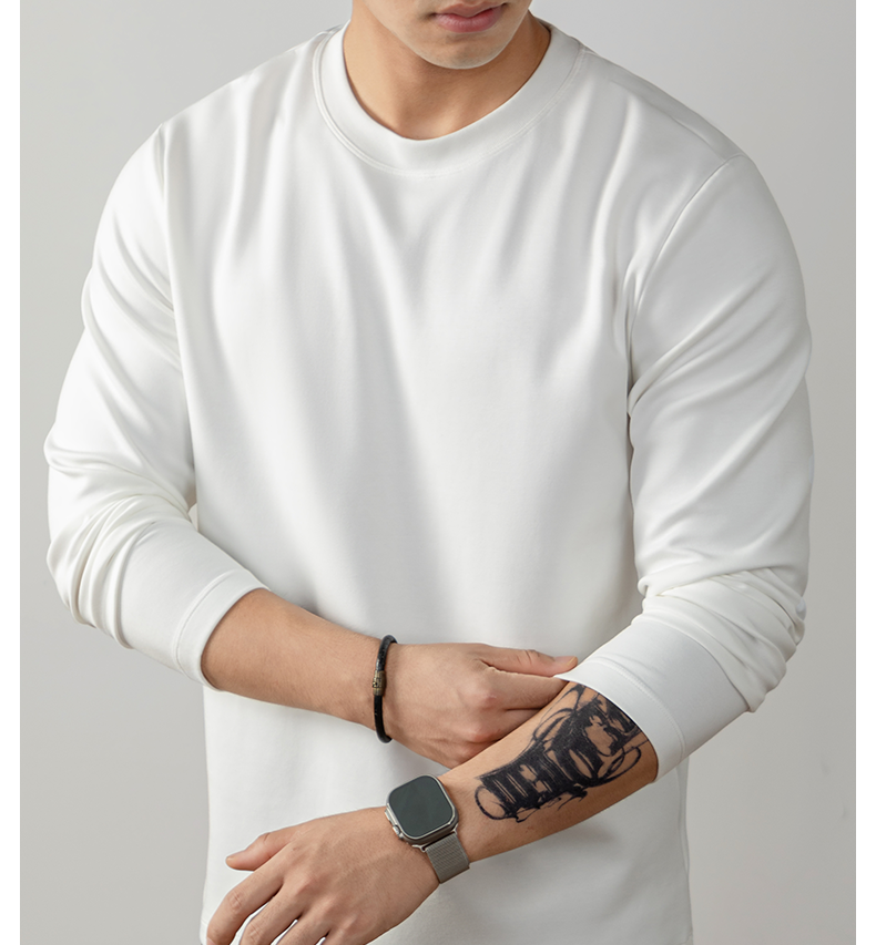 남성용 300g 헤비웨이트 모달 클라우드필 코튼 긴팔 티셔츠, 가을/겨울용, 두툼하고 고급스러운 이너웨어, 퓨어 화이트