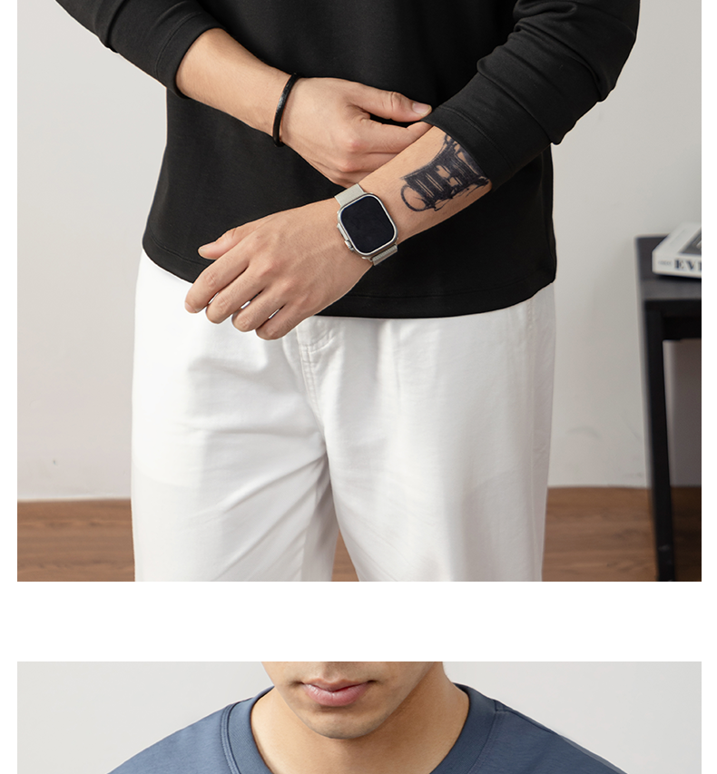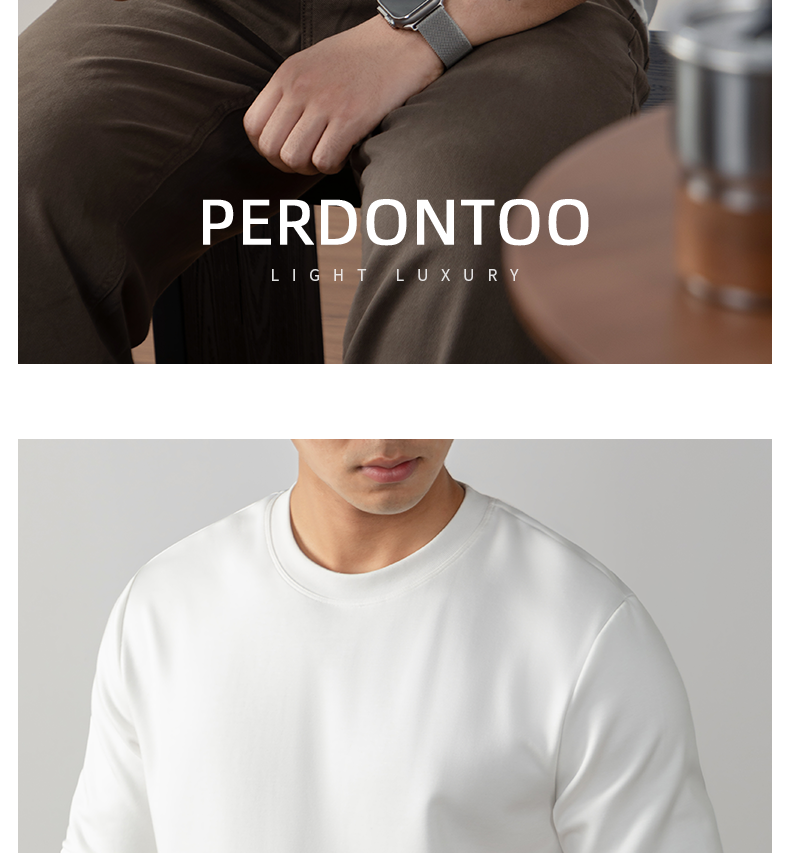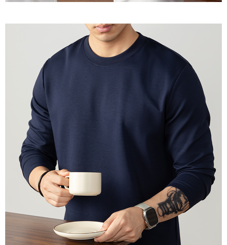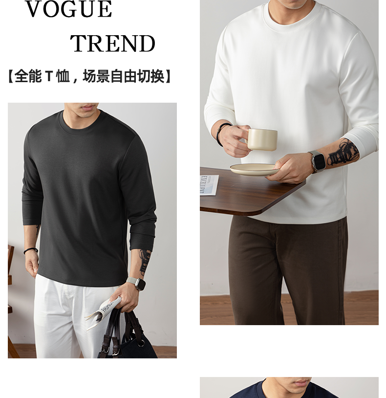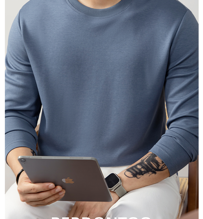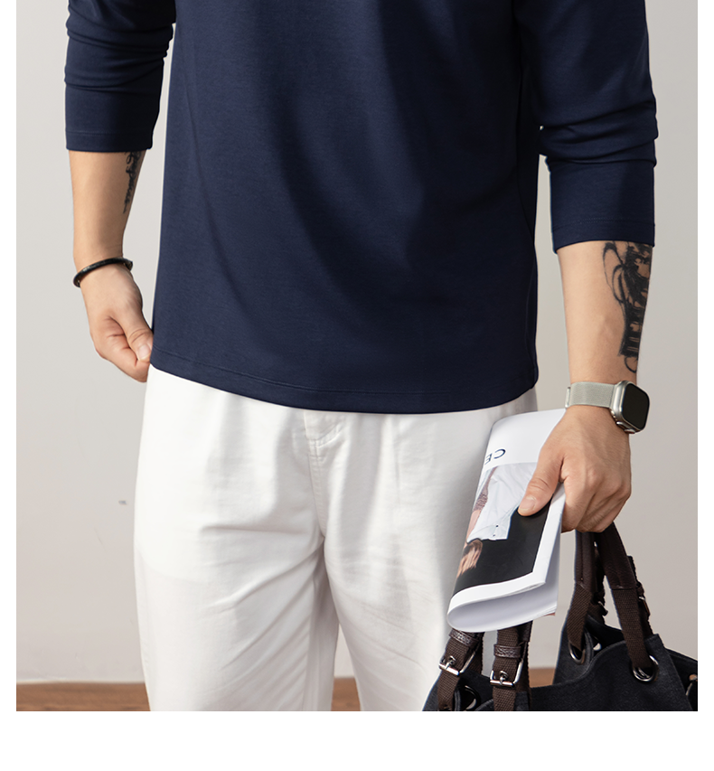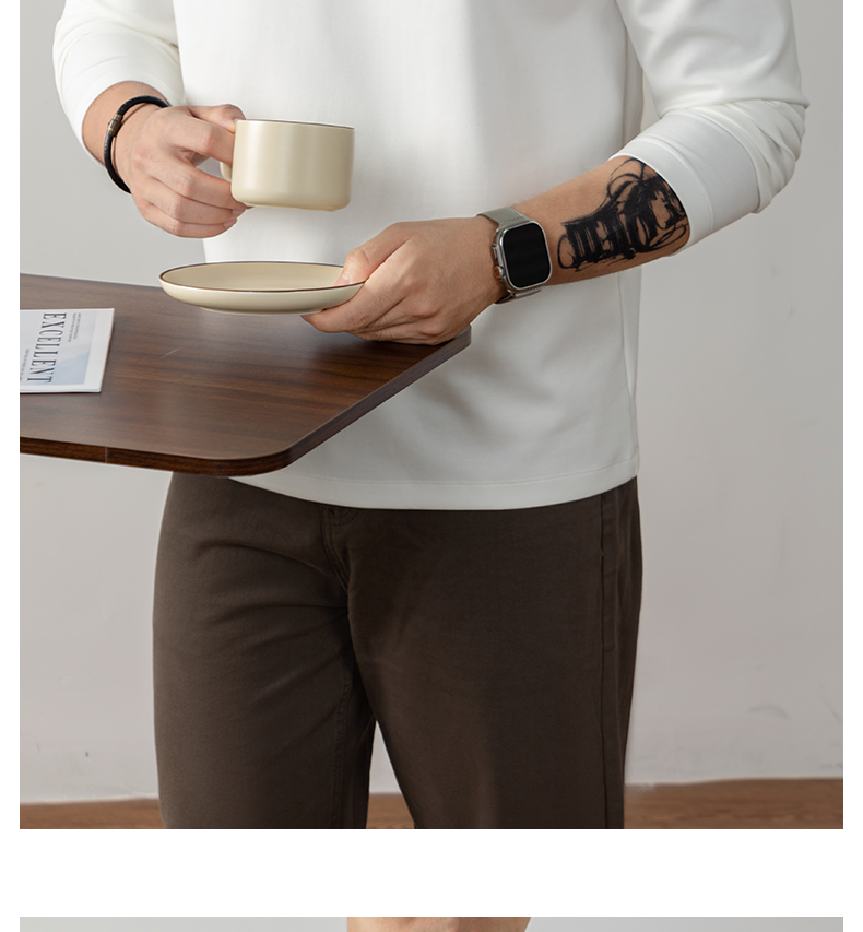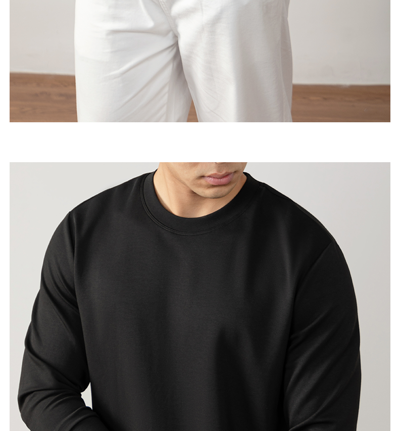 남성용 300g 헤비웨이트 모달 클라우드필 코튼 긴팔 티셔츠, 가을/겨울용, 두툼하고 고급스러운 이너웨어, 퓨어 화이트