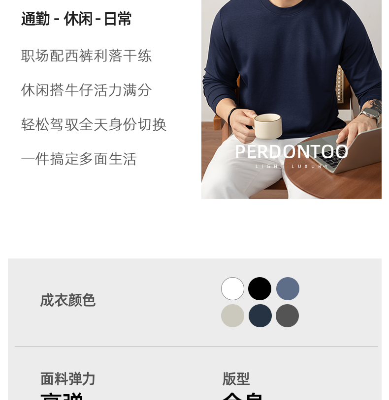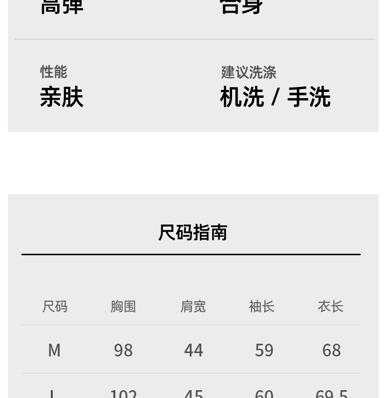 폴리에스터 섬유/폴리에스터 44.7%, 모달 26.2%, 면 24%, 스판덱스/라이크라 5.1%