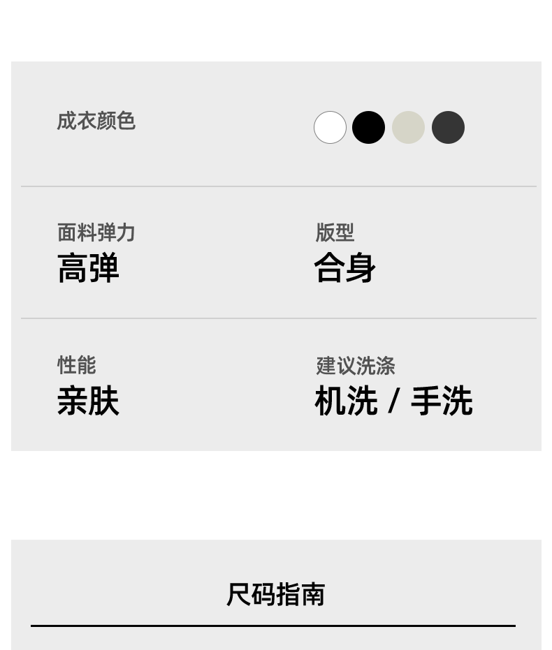 폴리에스터 섬유/폴리에스터 44.7%, 모달 26.2%, 면 24%, 스판덱스/라이크라 5.1%