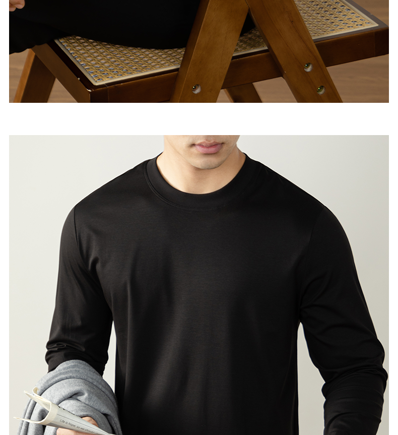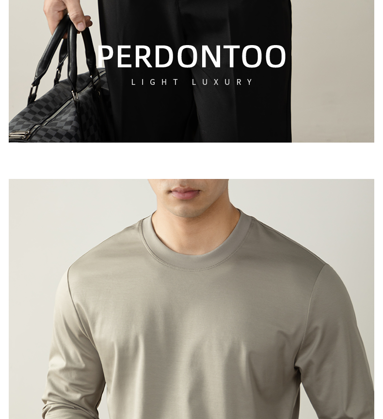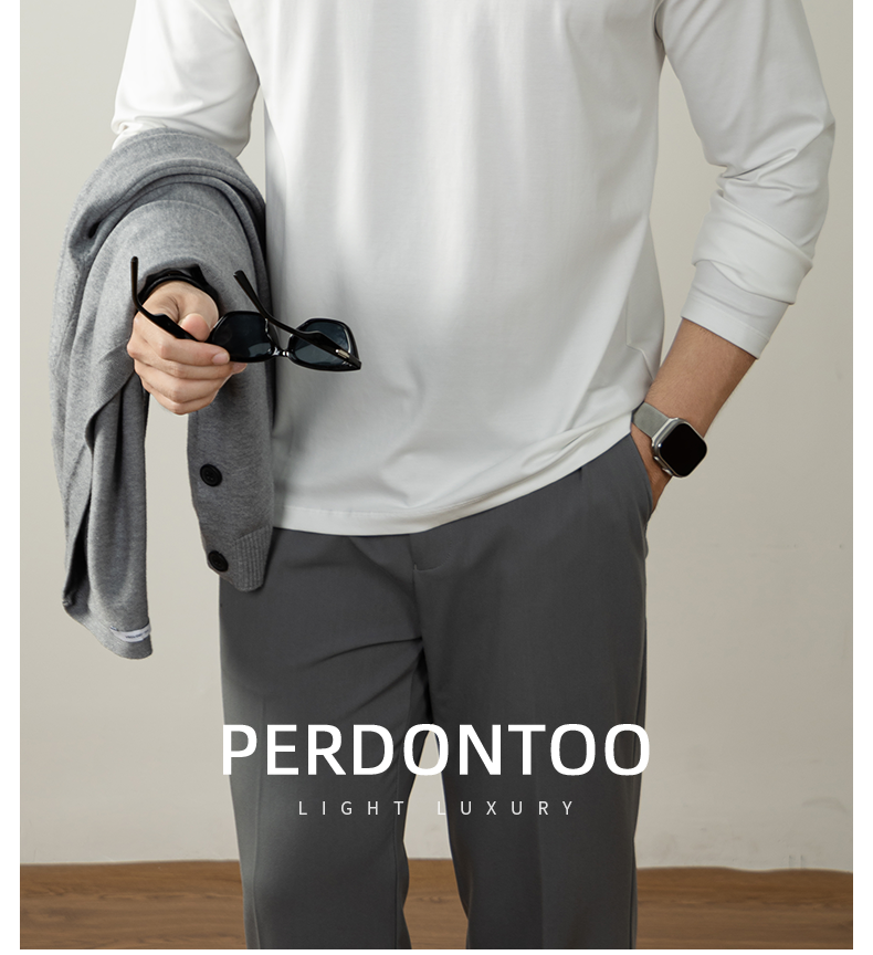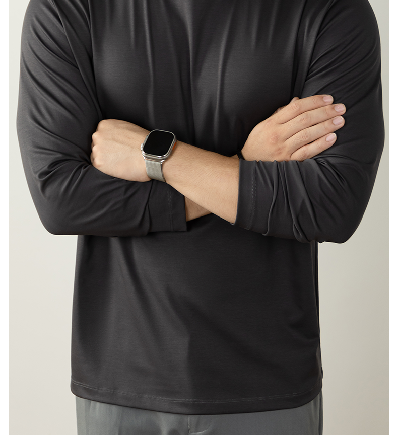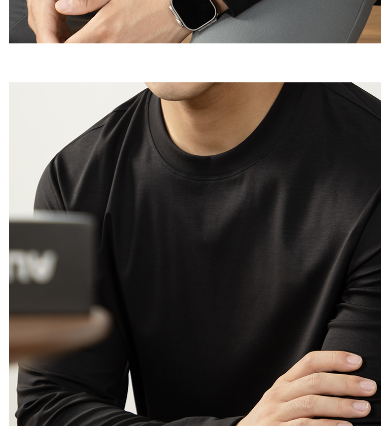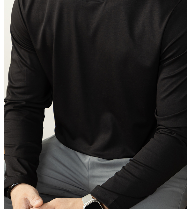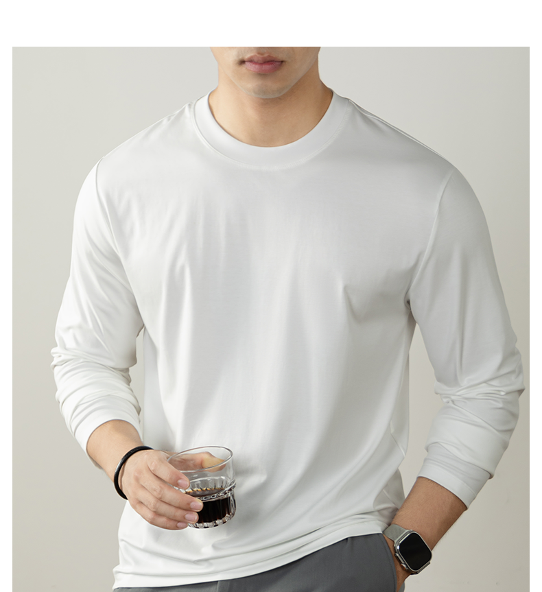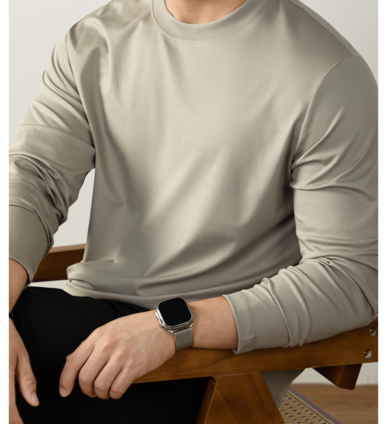 남성용 고급 양면 액체 암모니아 티셔츠 (200매), 긴팔, 실키 드레이프 베이스 레이어, 2025 가을/겨울 컬렉션, 단색, 실키 마감