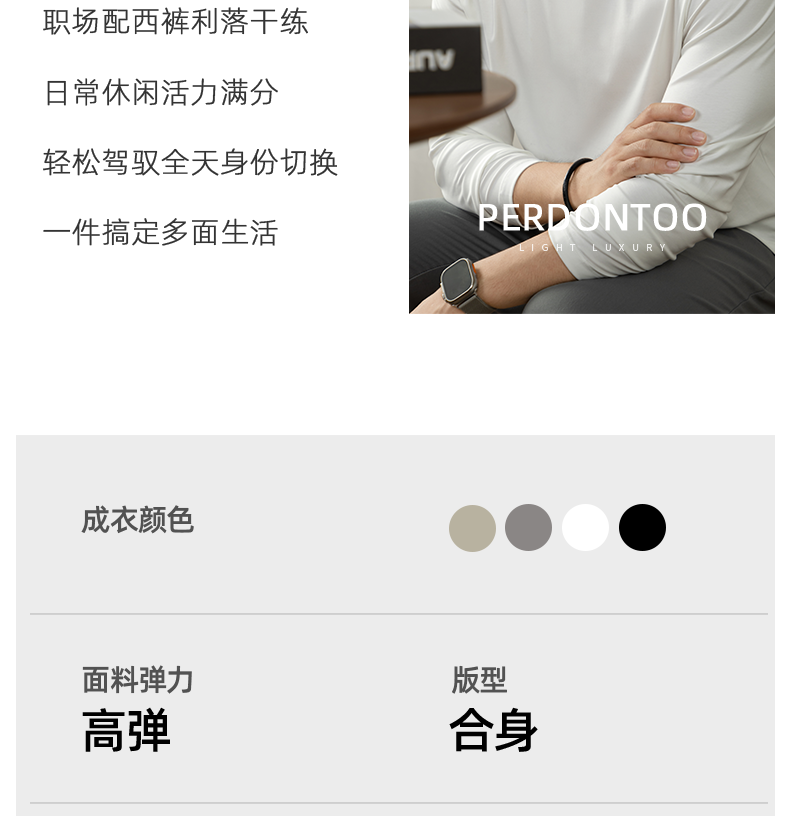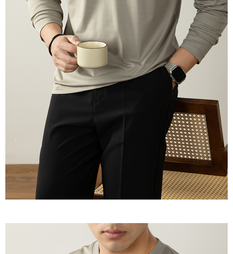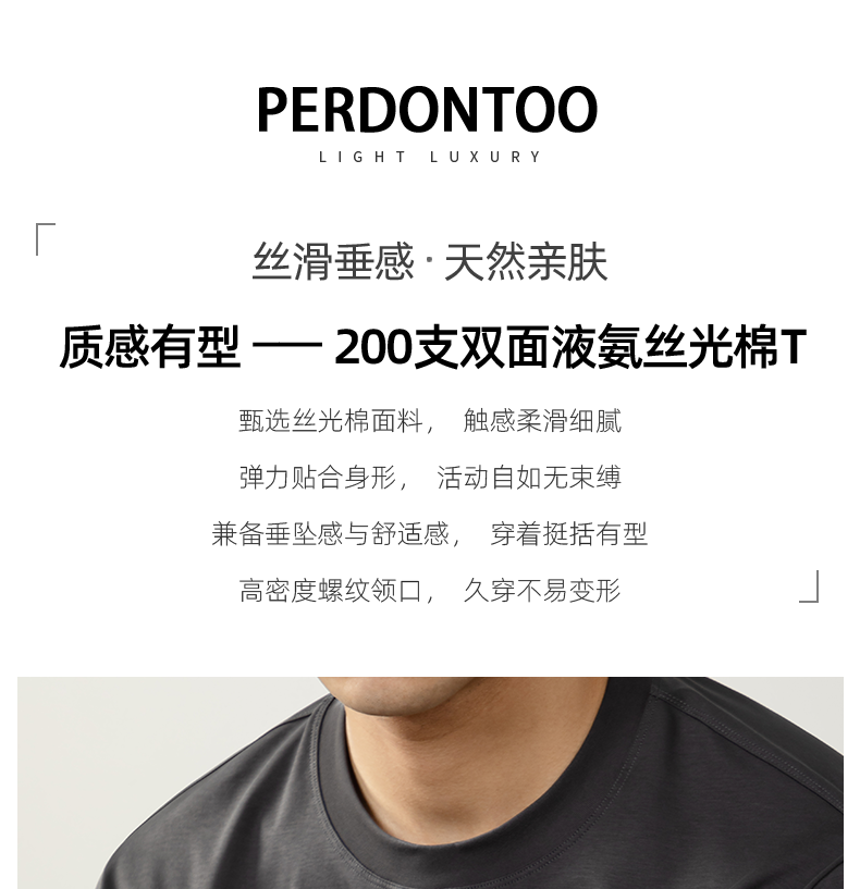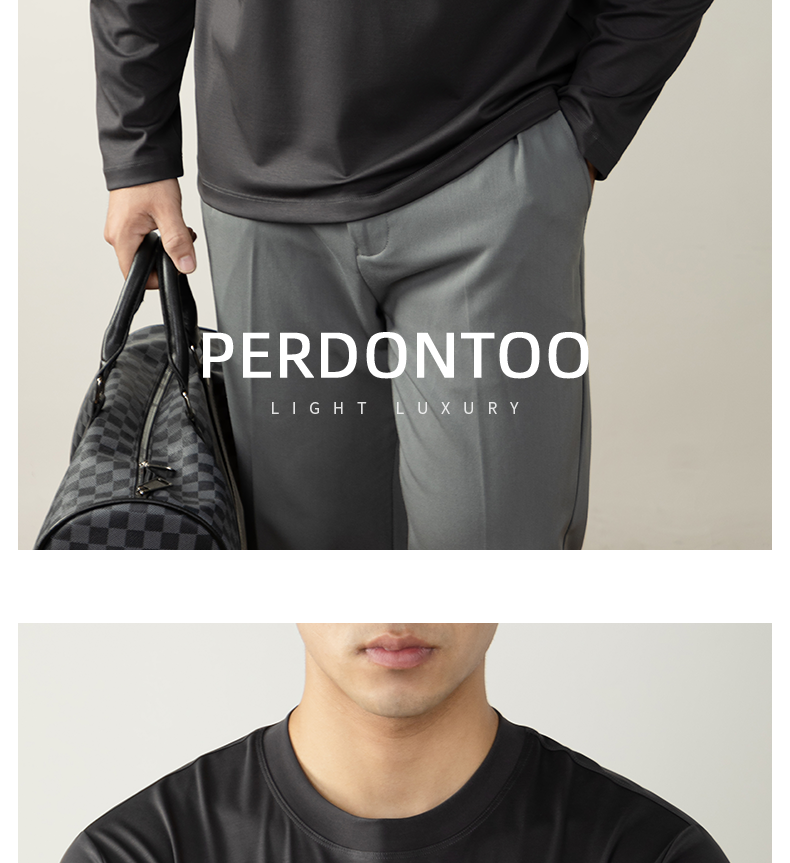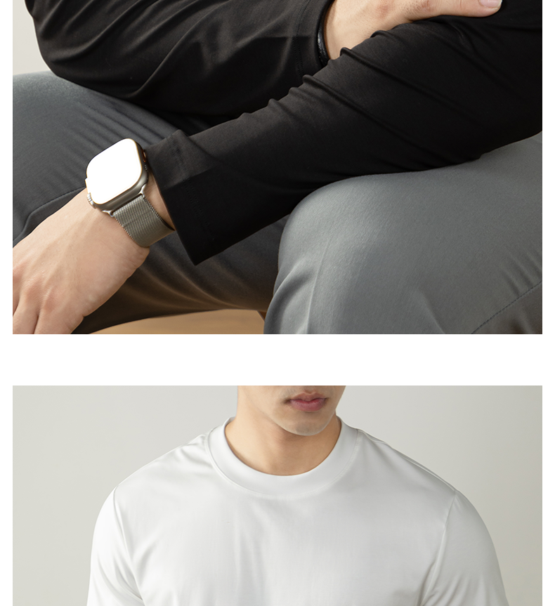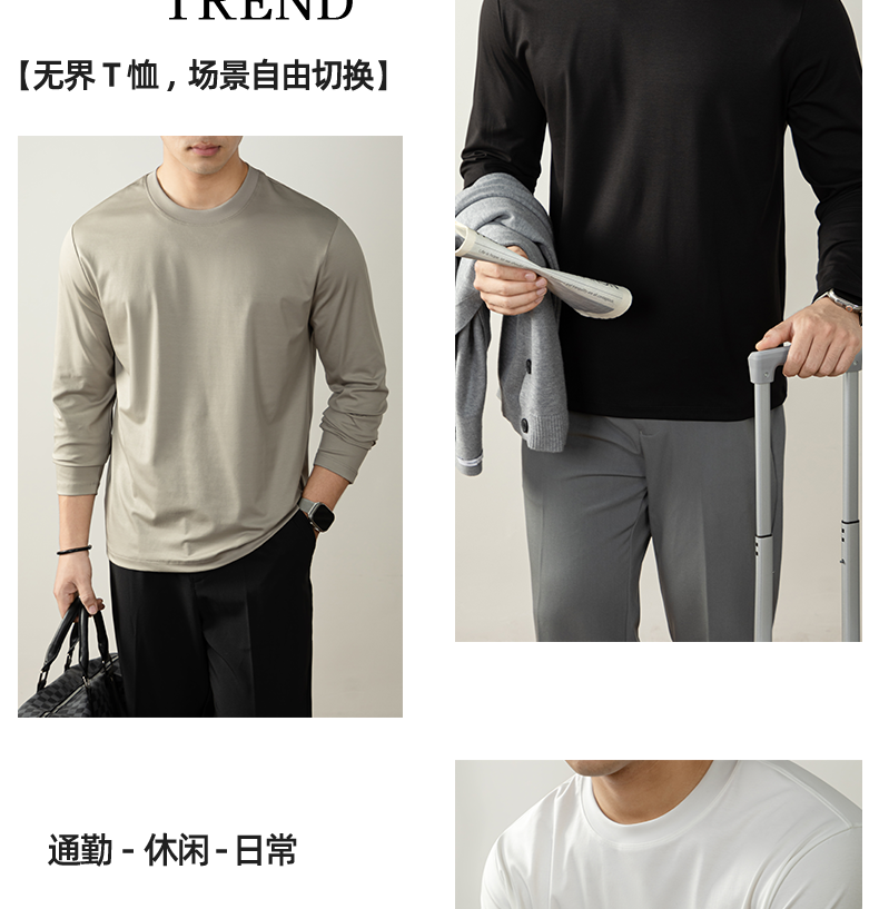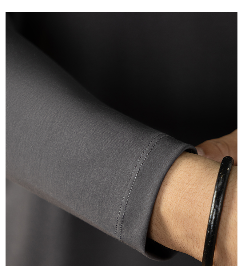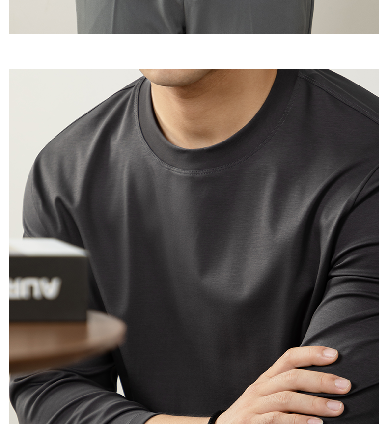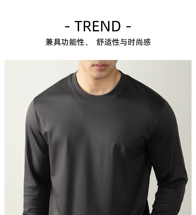남성용 고급 양면 액체 암모니아 티셔츠 (200매), 긴팔, 실키 드레이프 베이스 레이어, 2025 가을/겨울 컬렉션, 단색, 실키 마감