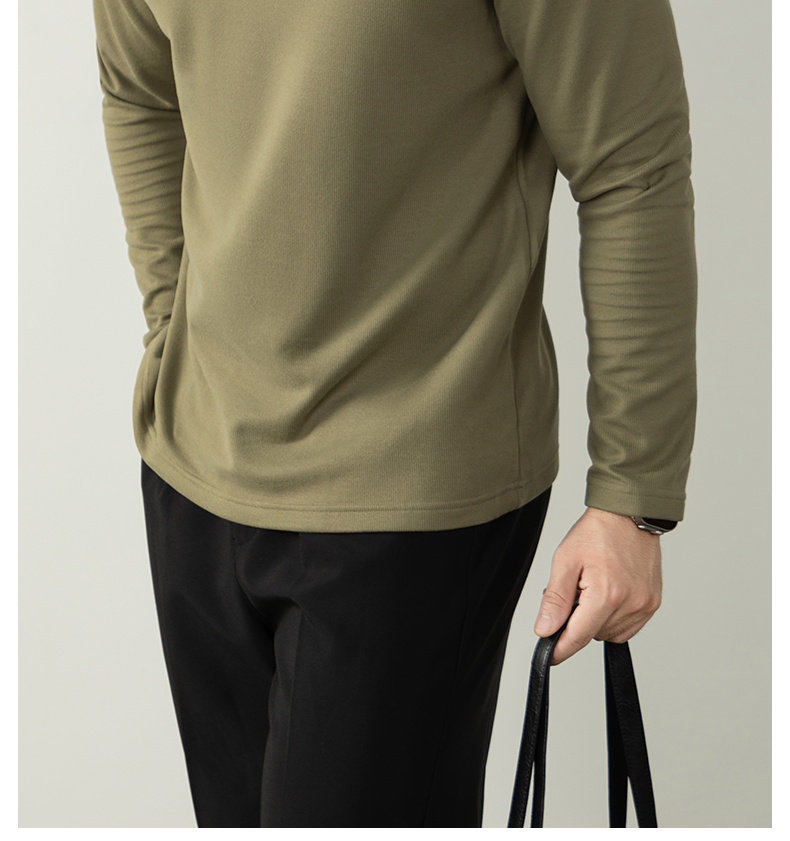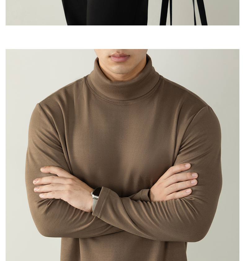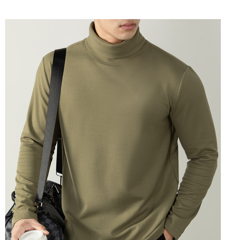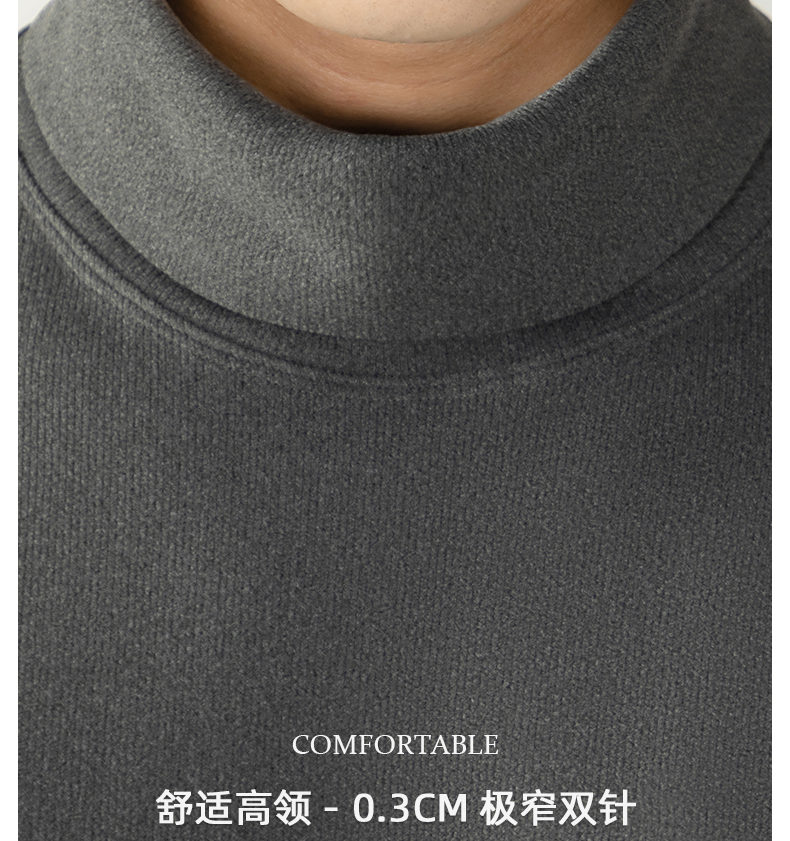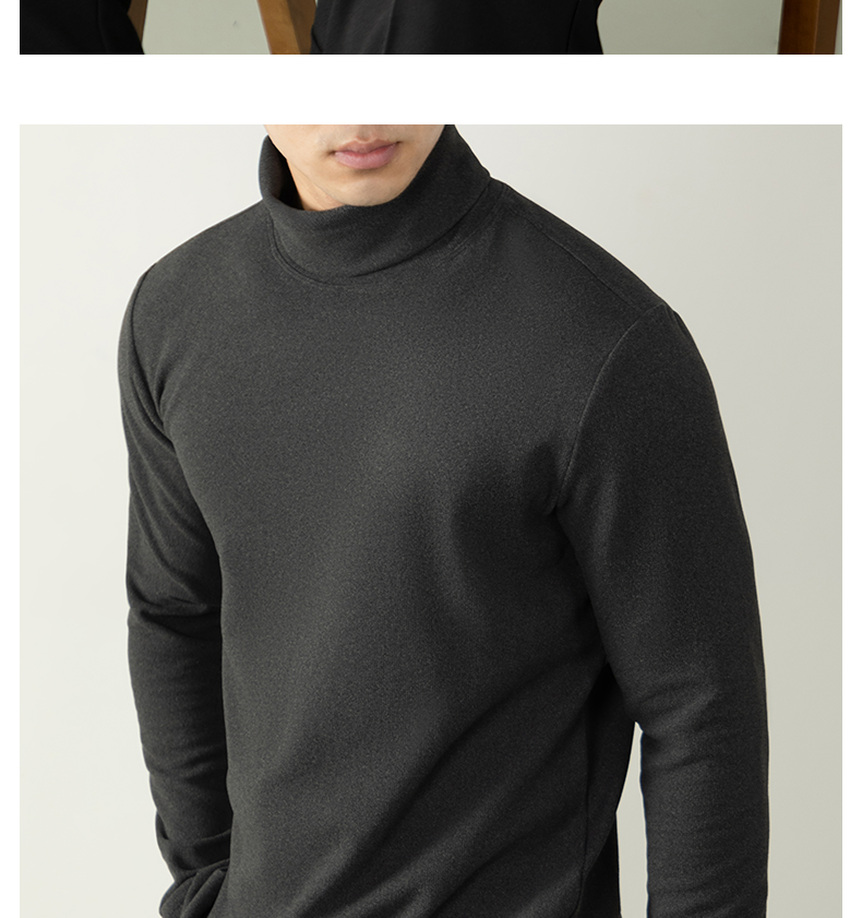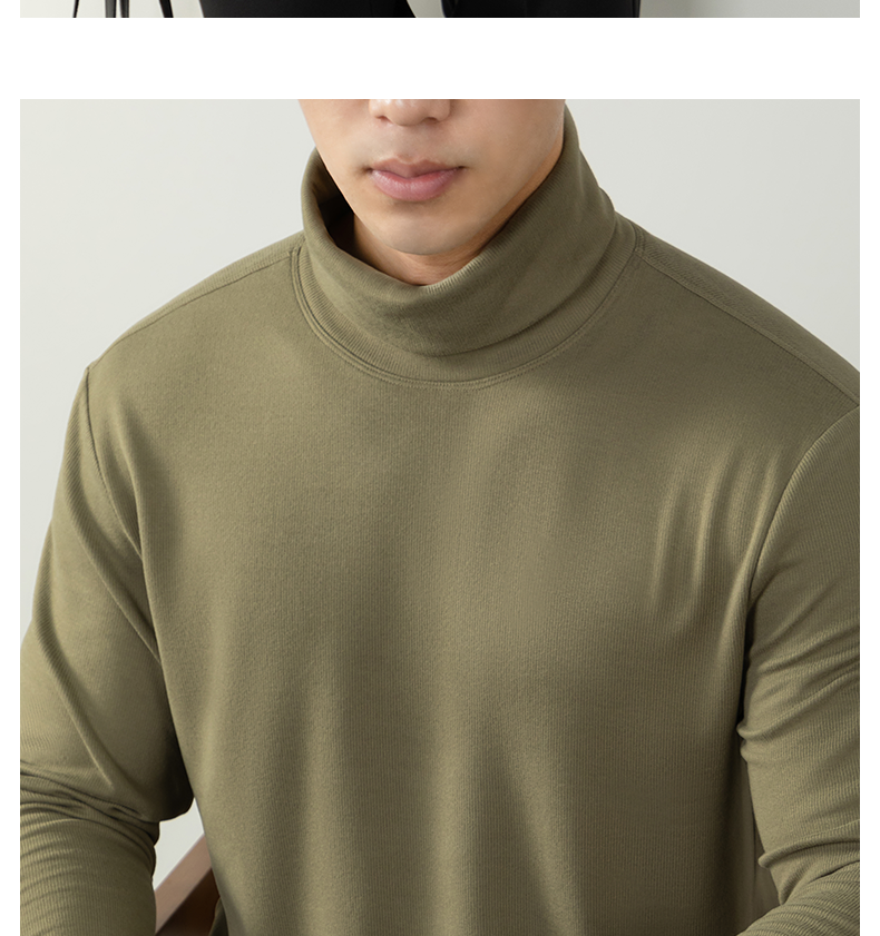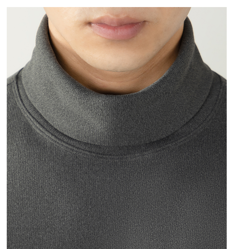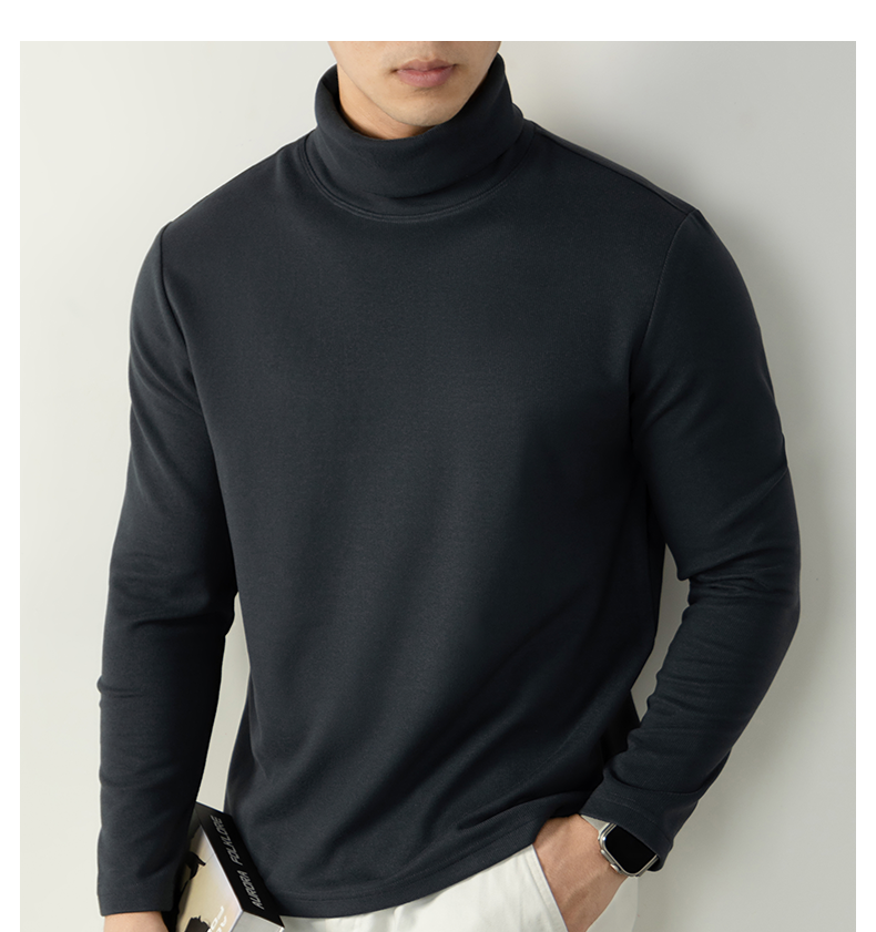 남성용 스트라이프 양면 플리스 터틀넥 긴팔 티셔츠는 부드럽고 따뜻하며, 원적외선 발열 기능이 있어 가을과 겨울에 적합합니다.
