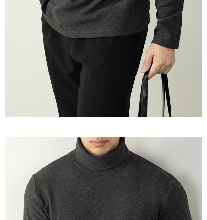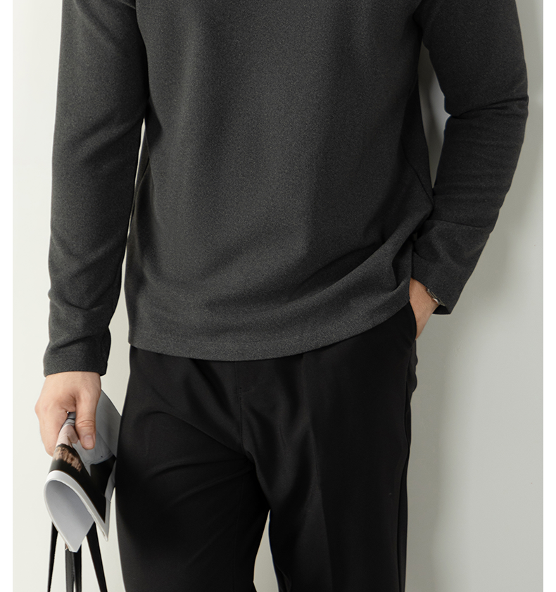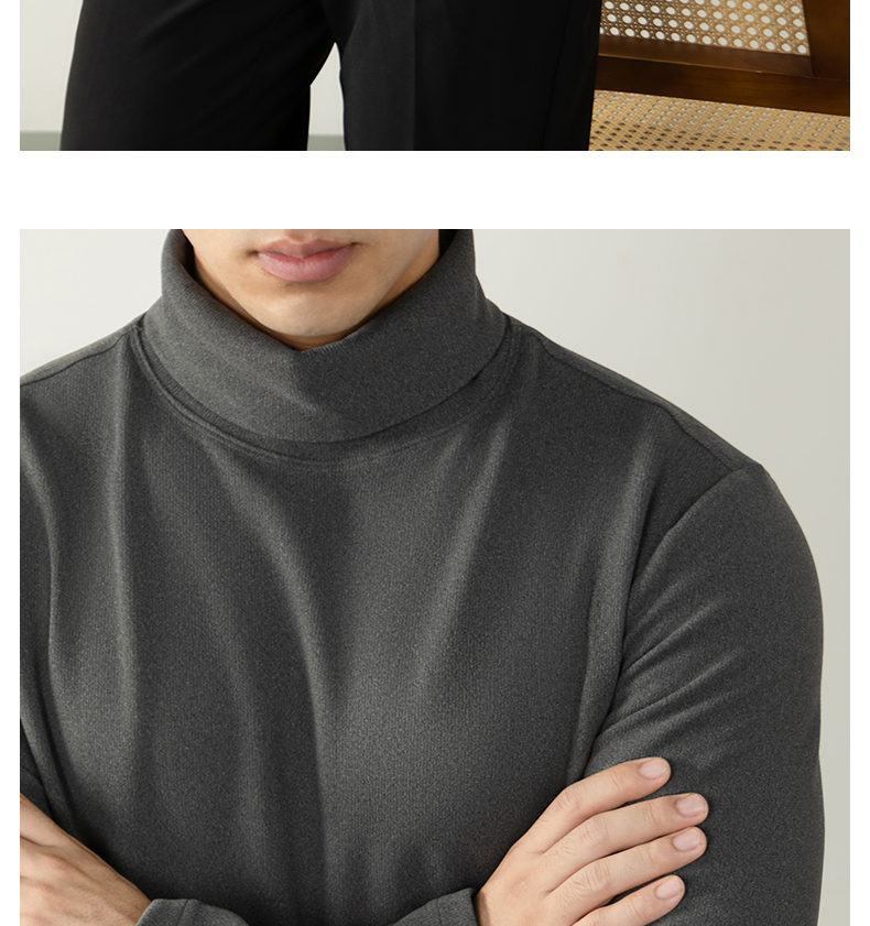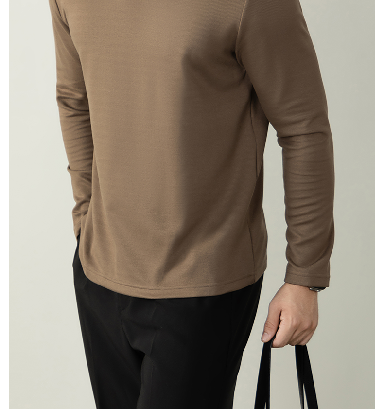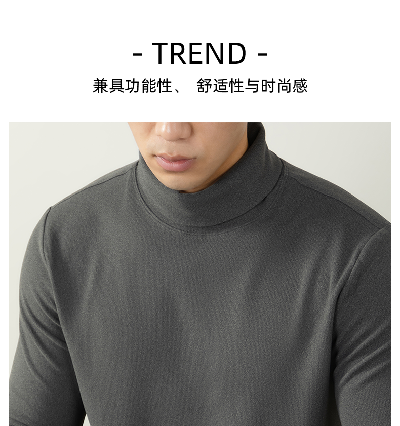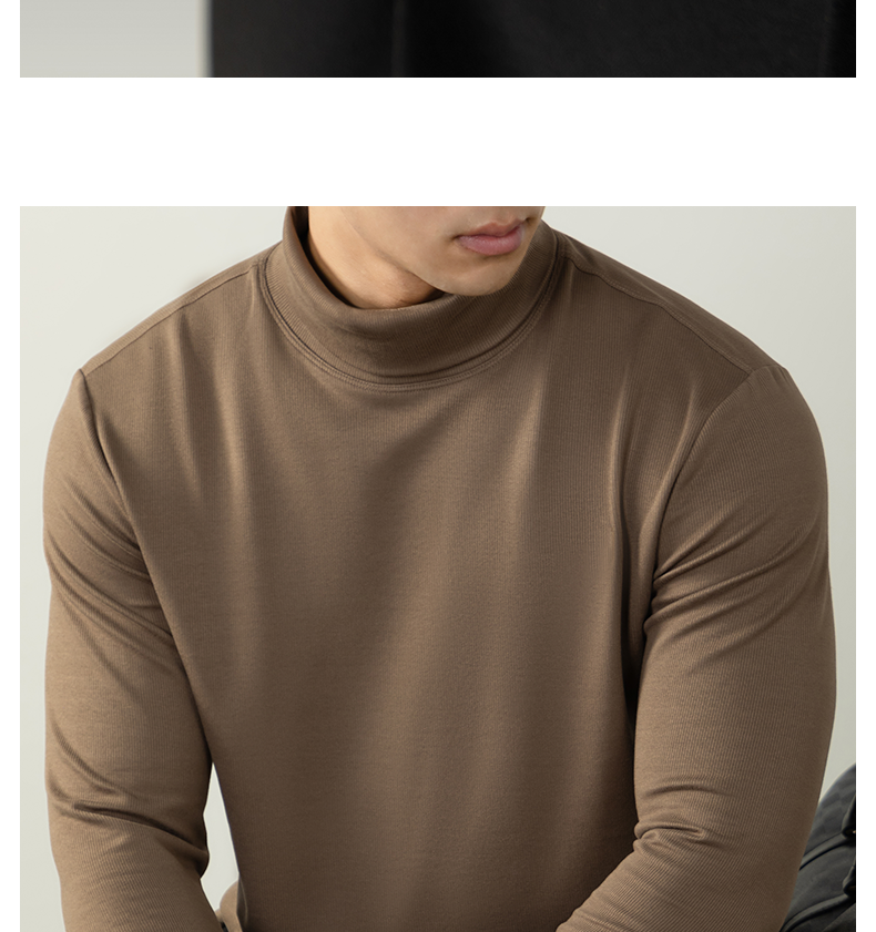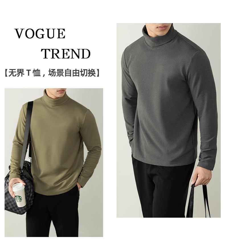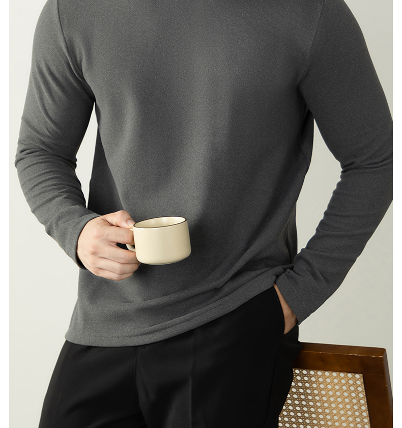 남성용 스트라이프 양면 플리스 터틀넥 긴팔 티셔츠는 부드럽고 따뜻하며, 원적외선 발열 기능이 있어 가을과 겨울에 적합합니다.