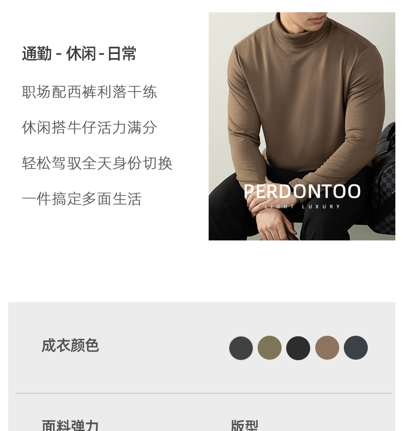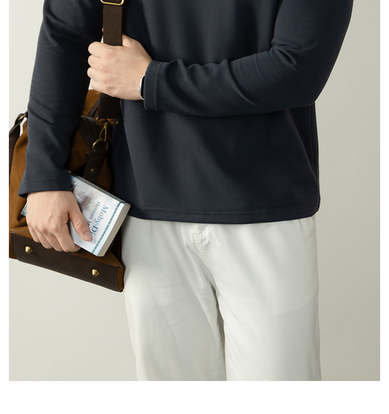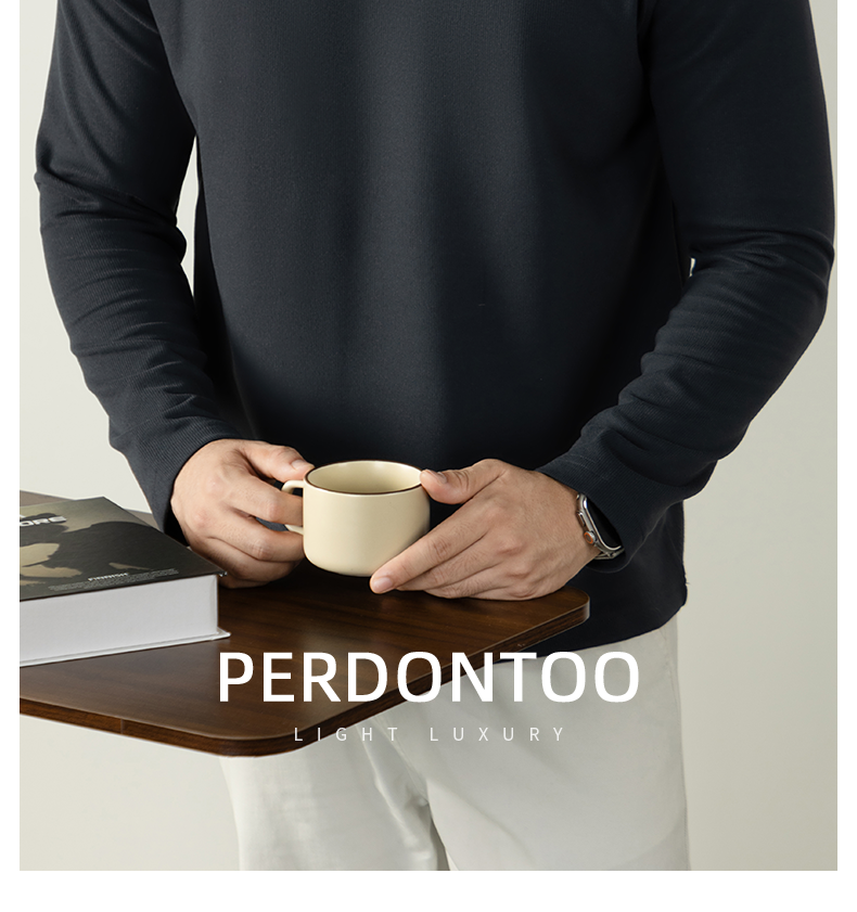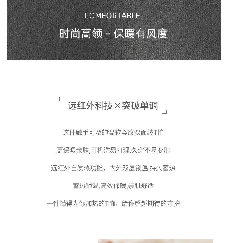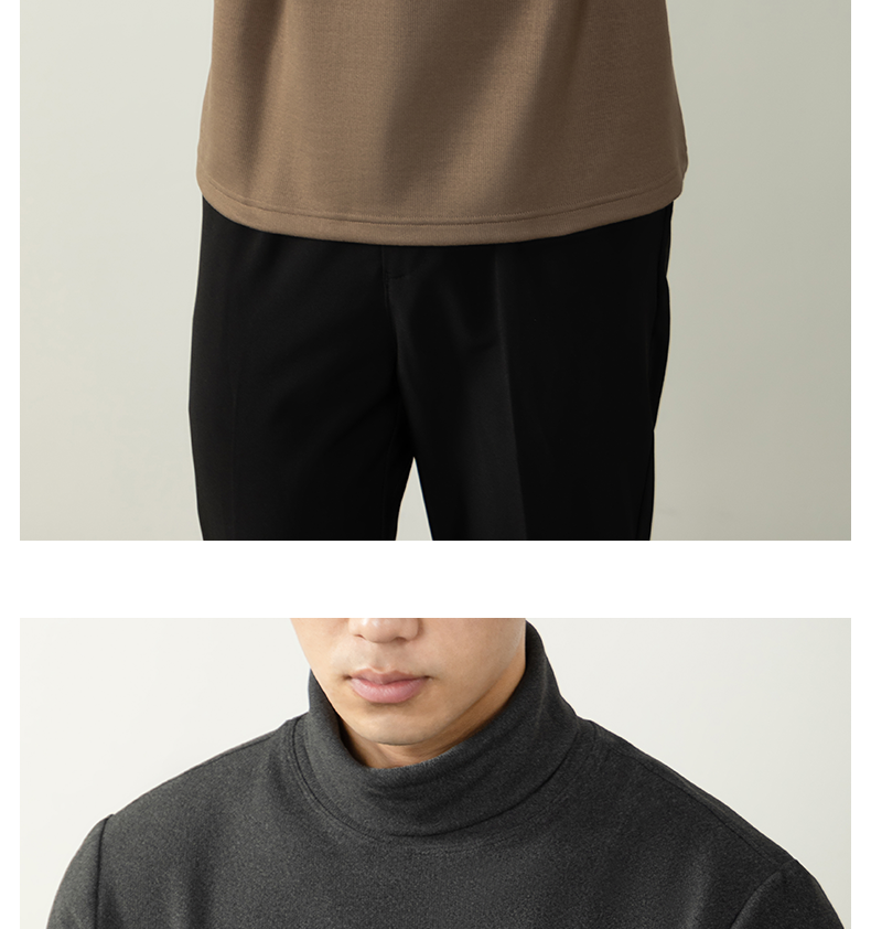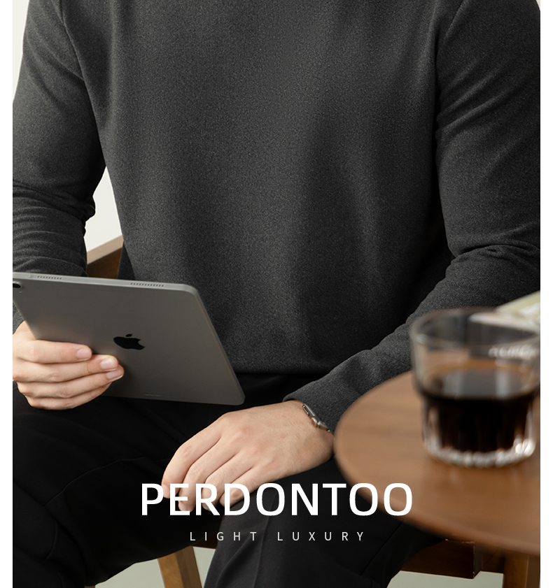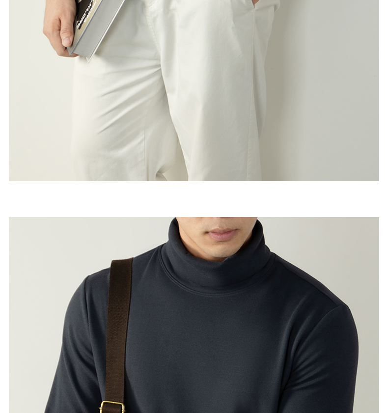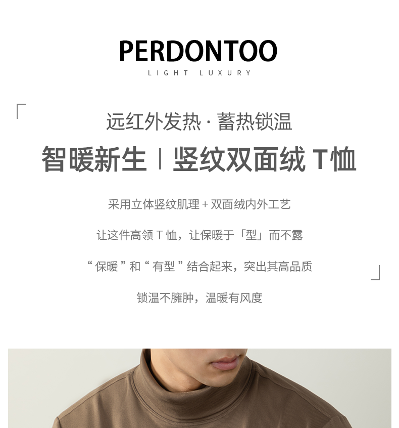 남성용 스트라이프 양면 플리스 터틀넥 긴팔 티셔츠는 부드럽고 따뜻하며, 원적외선 발열 기능이 있어 가을과 겨울에 적합합니다.