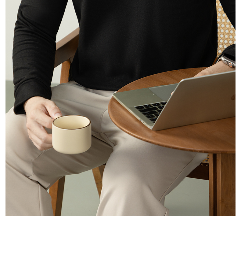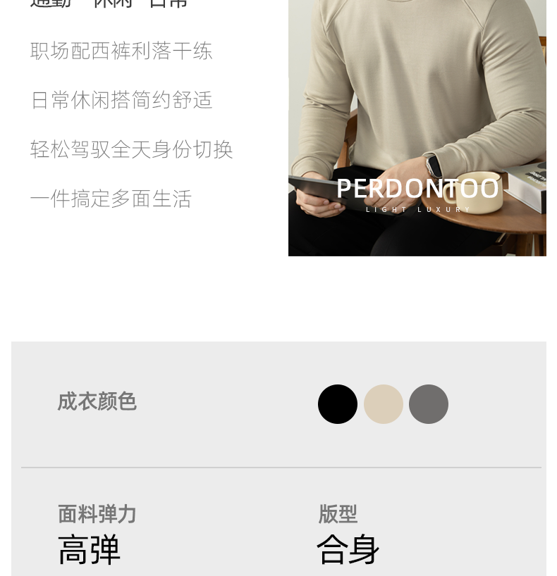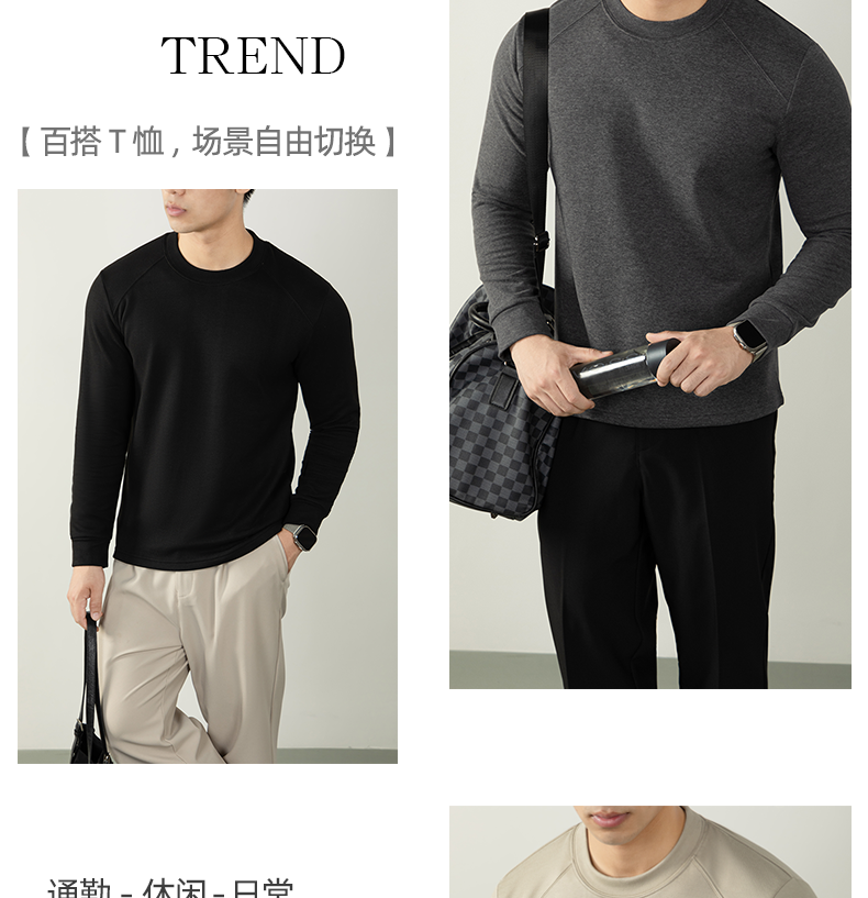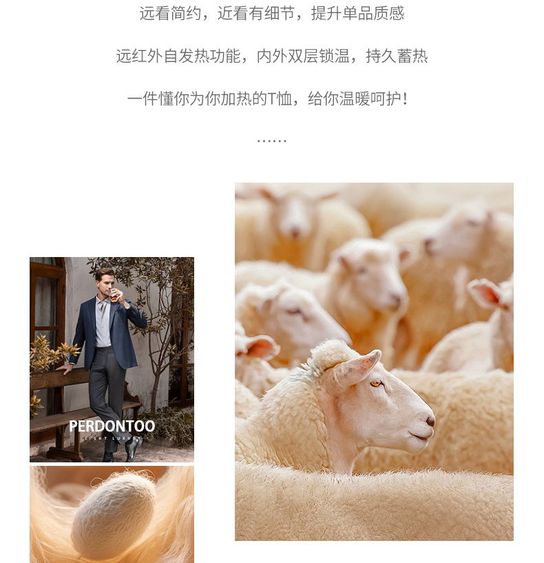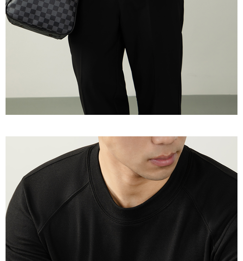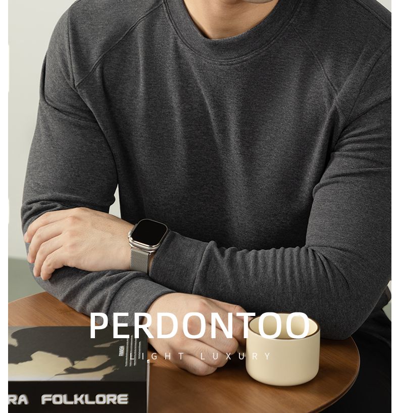 남성용 래글런 소매 긴팔 티셔츠로, 원적외선 발열 및 보온성을 제공하는 울과 실크 혼방 양면 플리스 소재로 제작되었습니다.