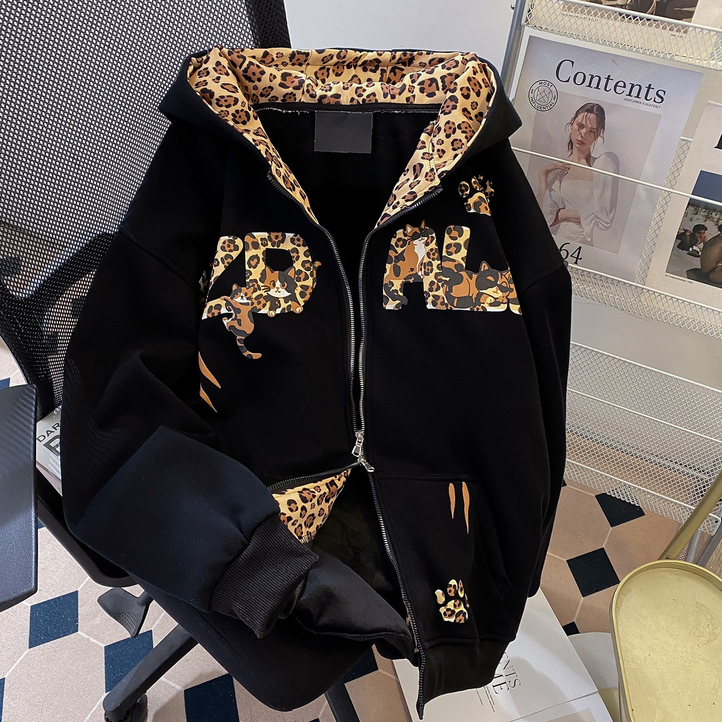 실제 사진, 특별 가격은 아직 유효합니다! 화미안 순면 혼방 밀크 실크 330g 레오파드 프린트 키튼 가디건/재킷, 커플룩으로 트렌디해요.