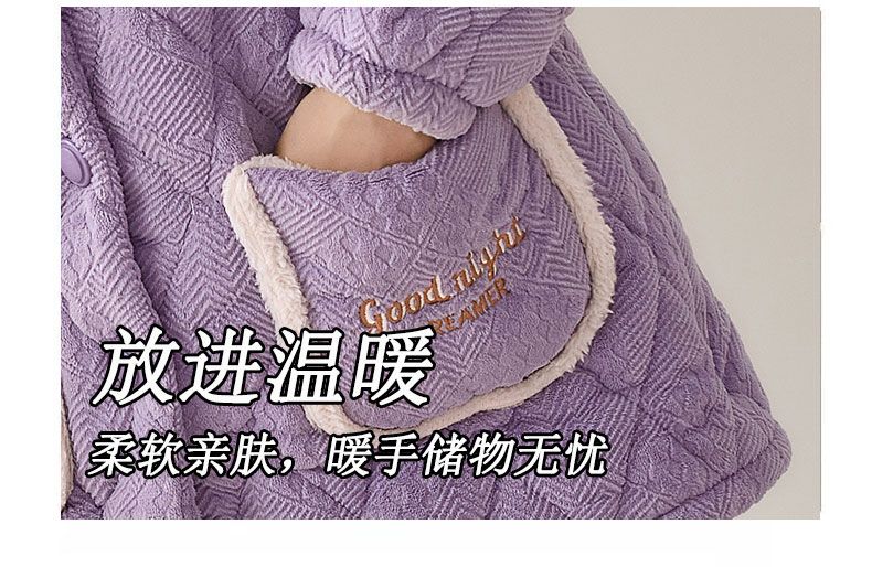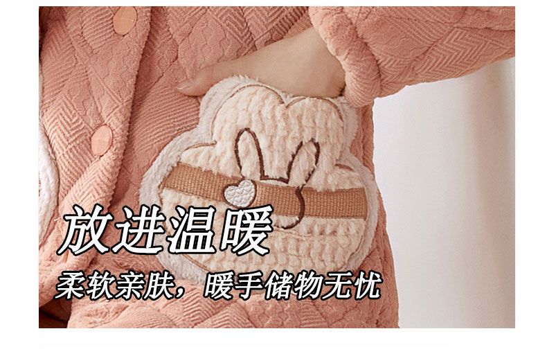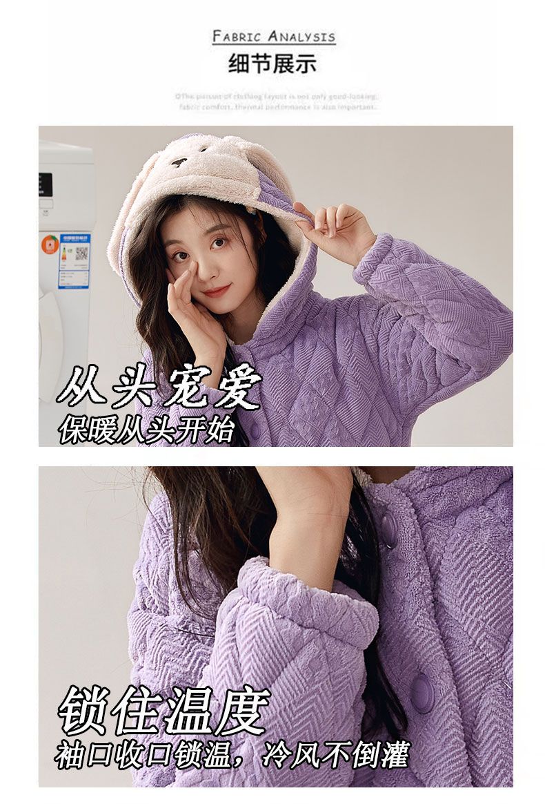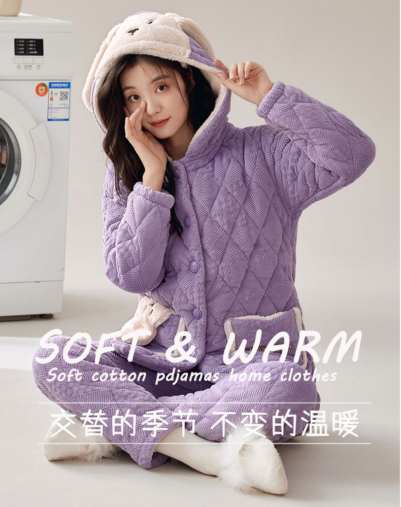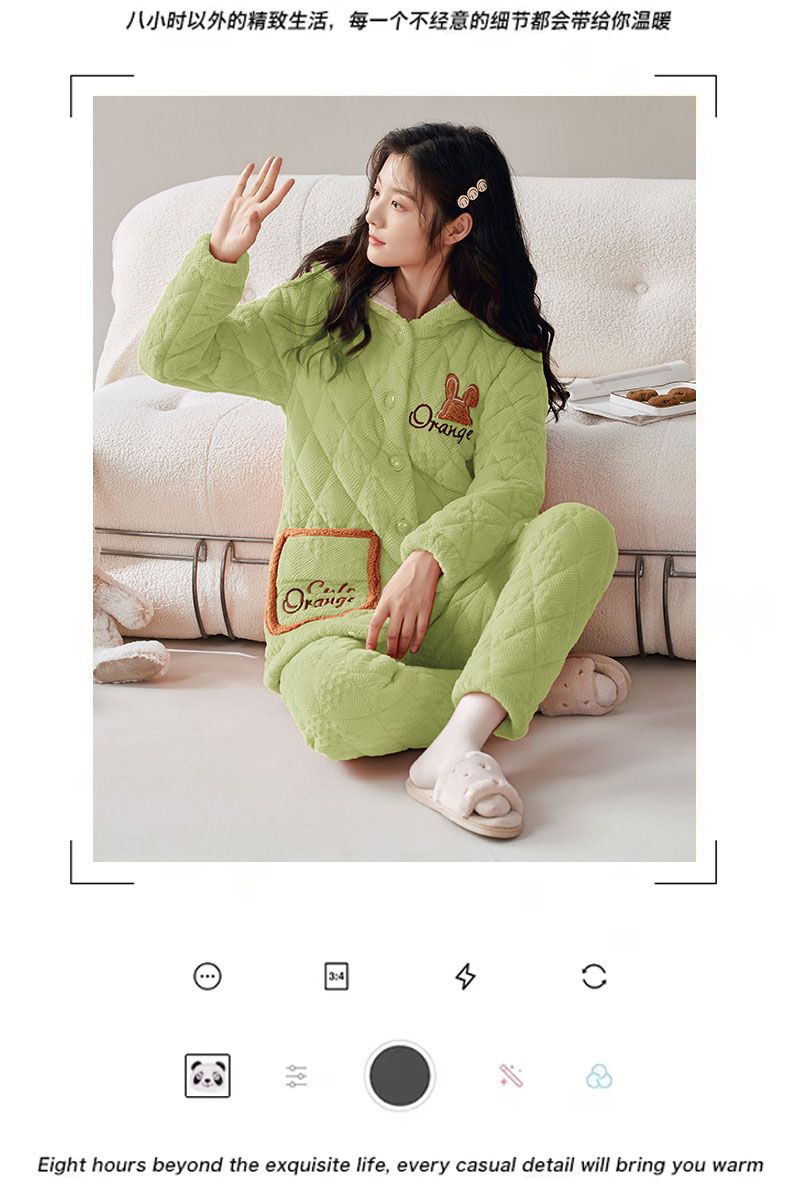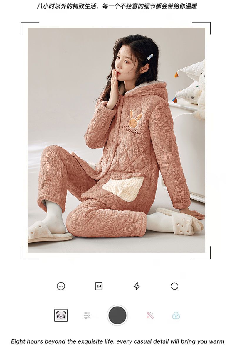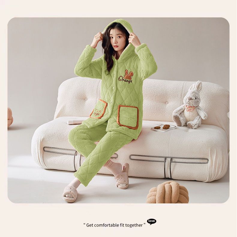 슈야 윈터 자카드 밀크 플리스 3겹 퀼팅 플리스 두툼한 여성용 보온 잠옷 세트