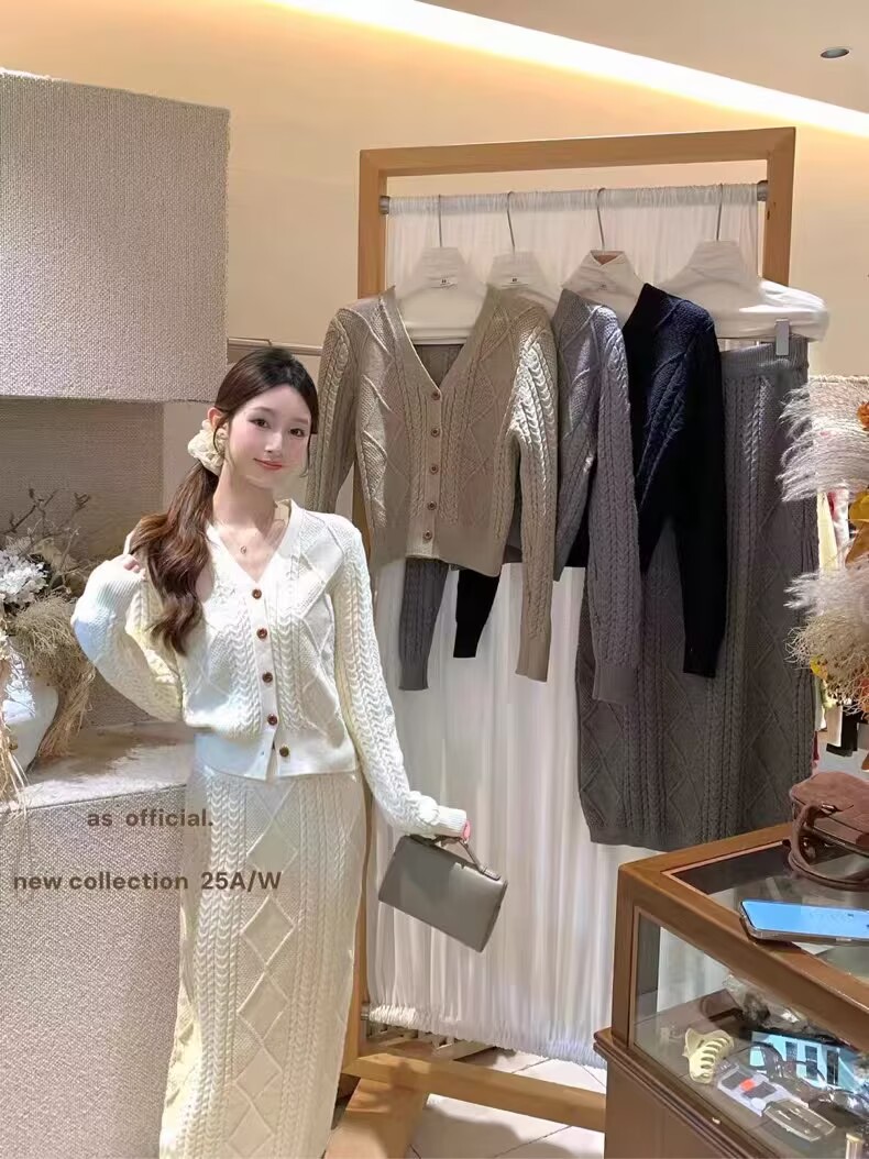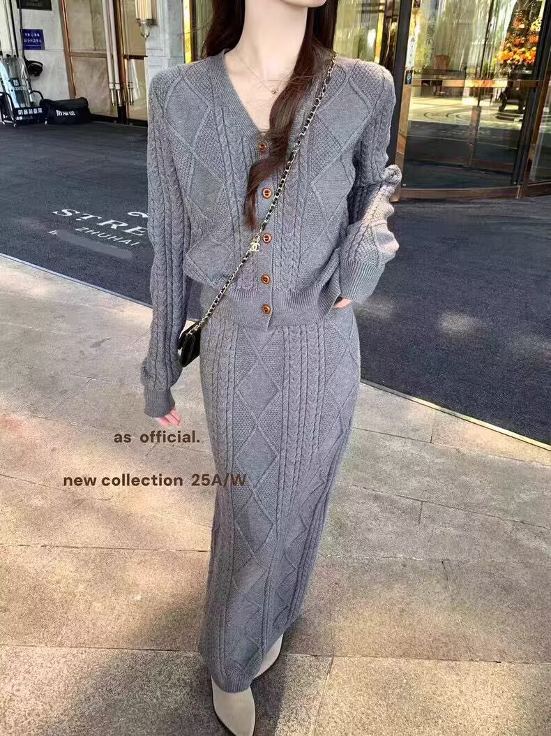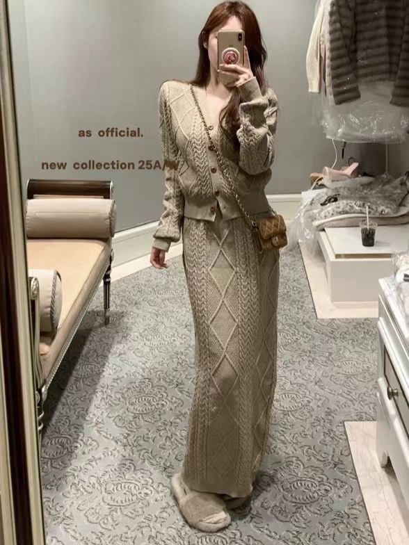 여성용 가을/겨울 신상 한국 스타일 케이블 니트 루즈핏 스웨터와 스커트 투피스 세트