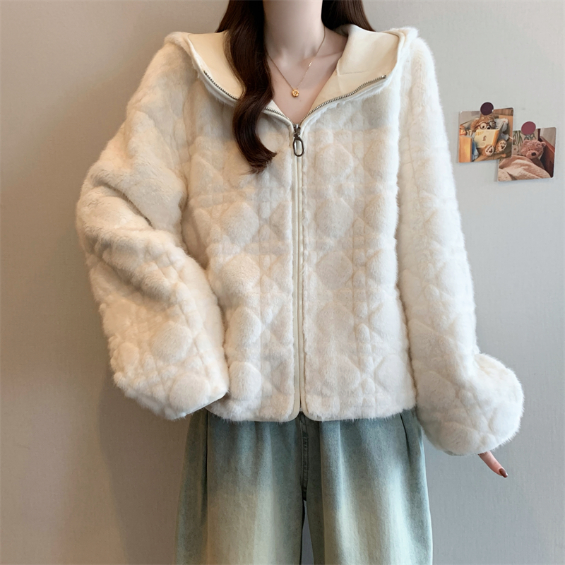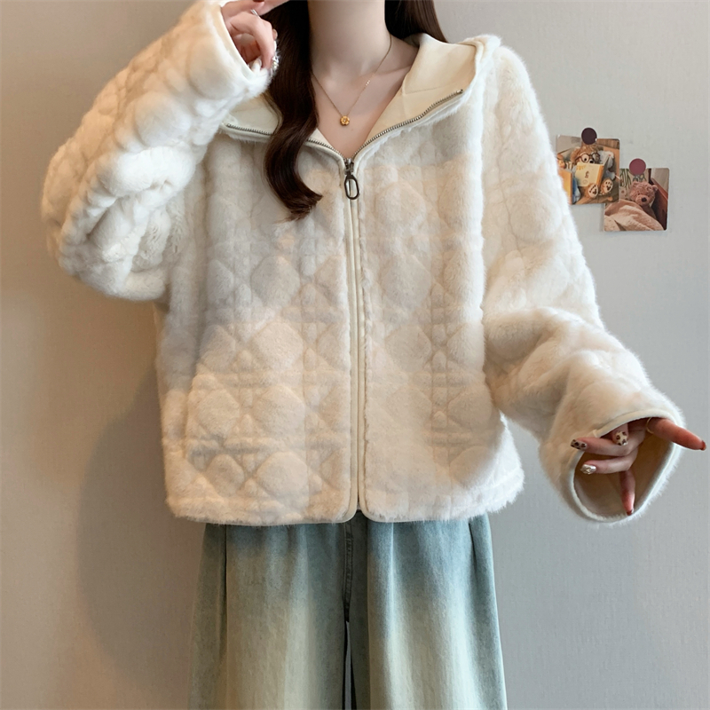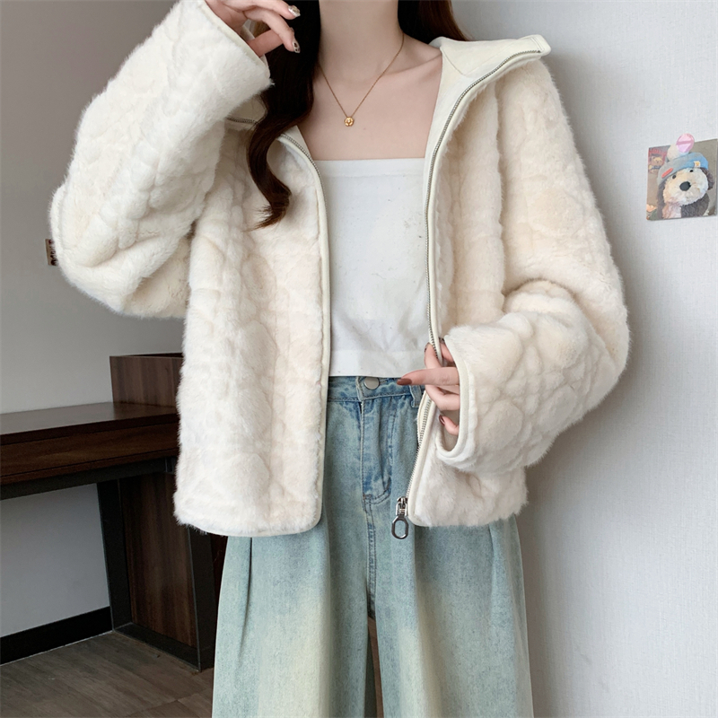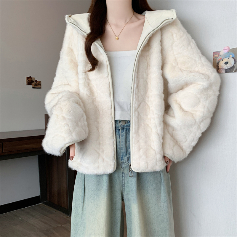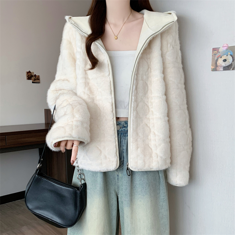 实拍大码2025新款皮毛一体毛毛外套女短款仿真水貂毛皮草连帽外套