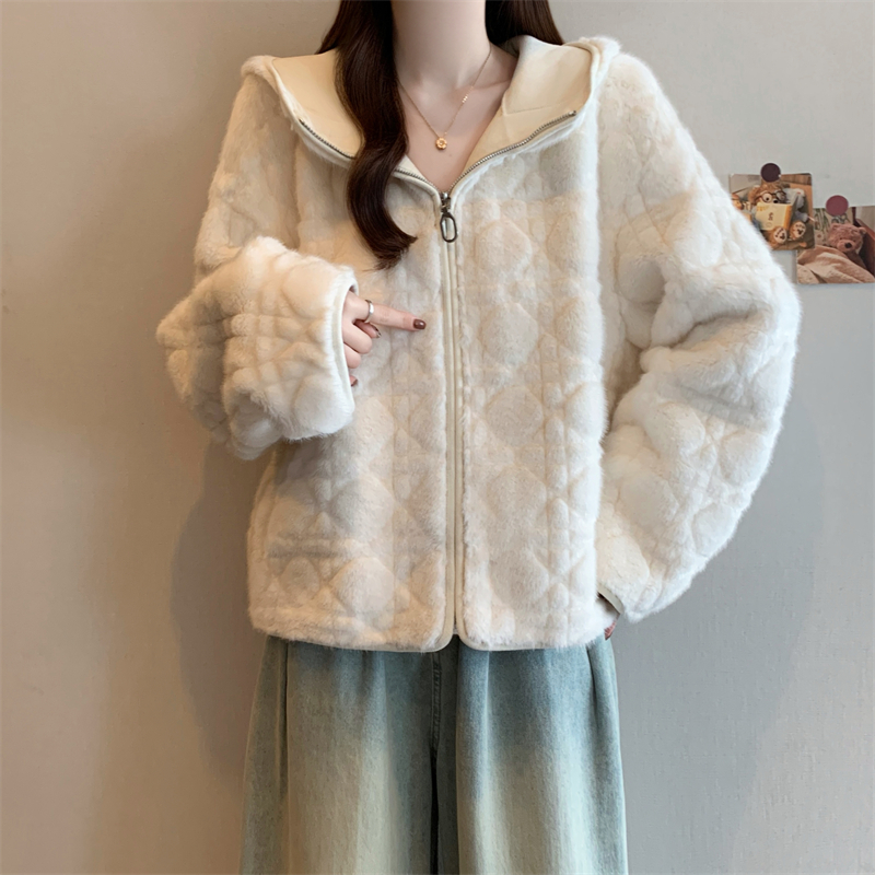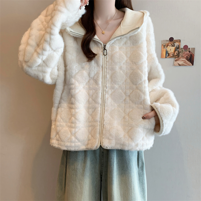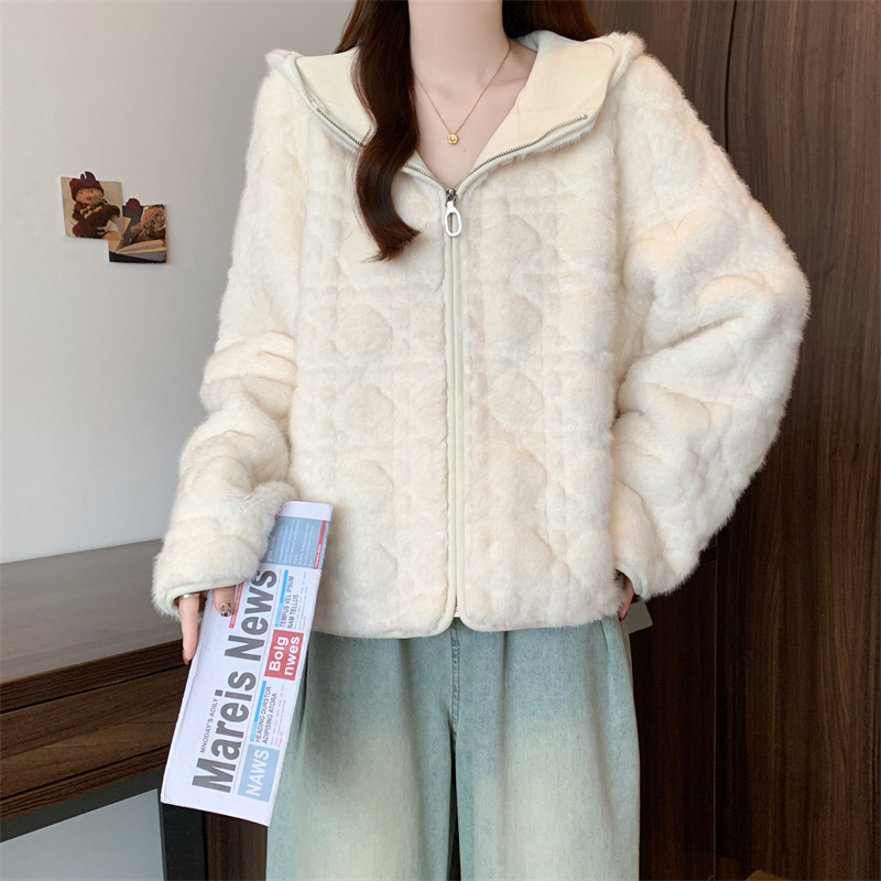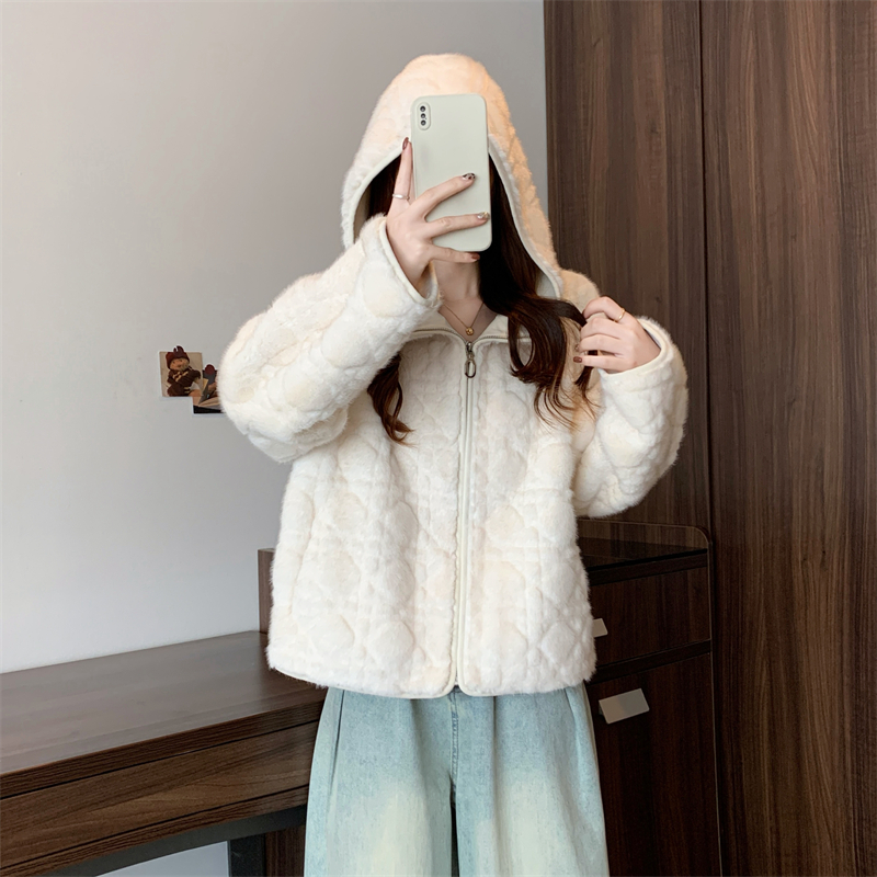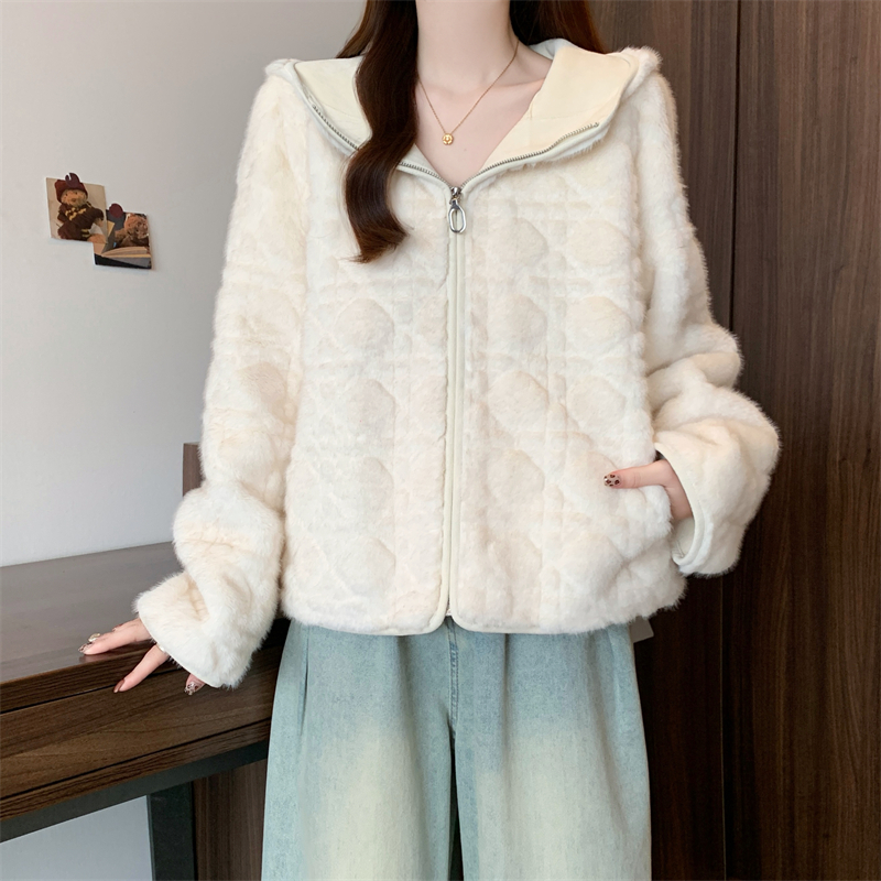 实拍大码2025新款皮毛一体毛毛外套女短款仿真水貂毛皮草连帽外套