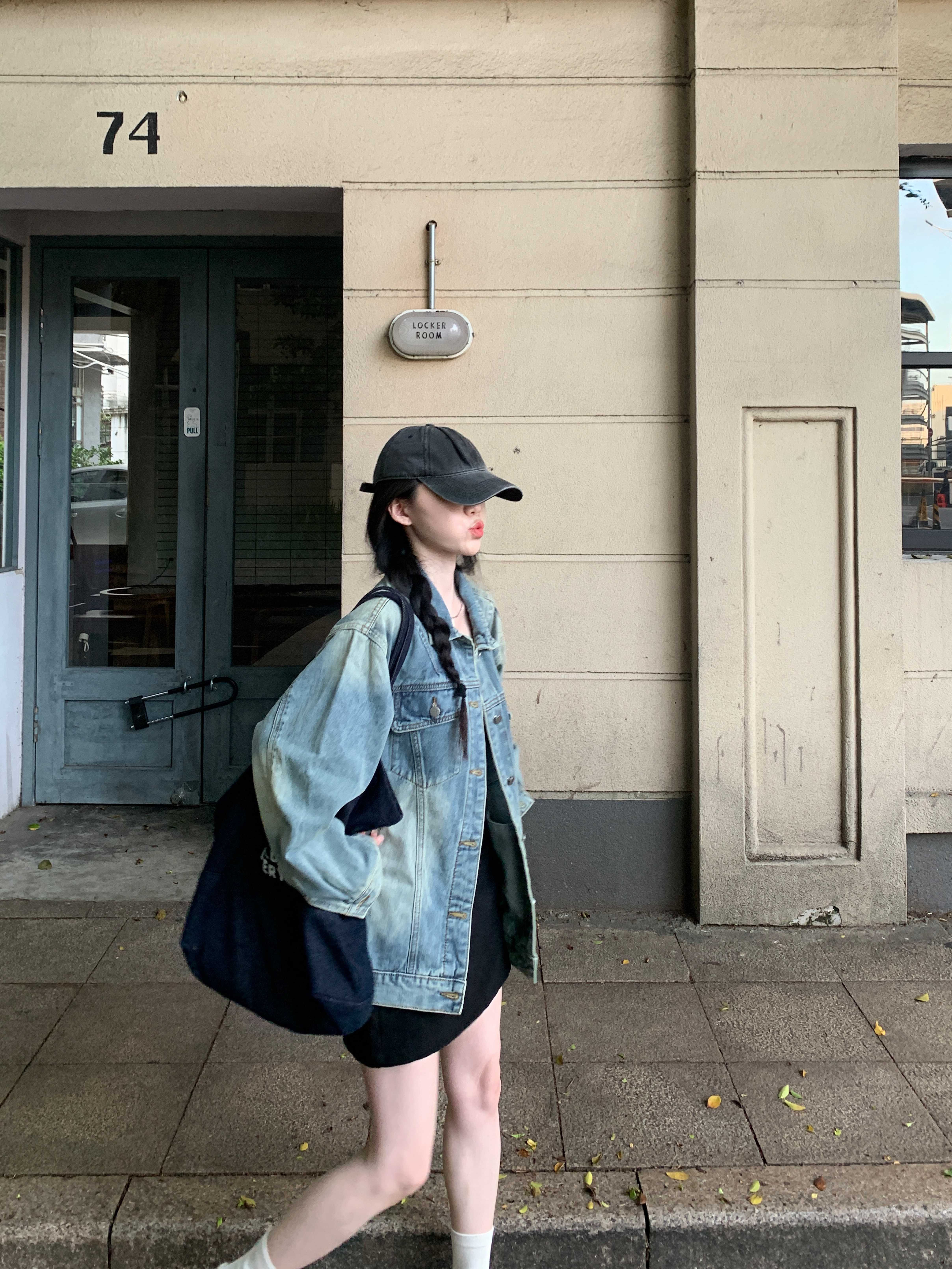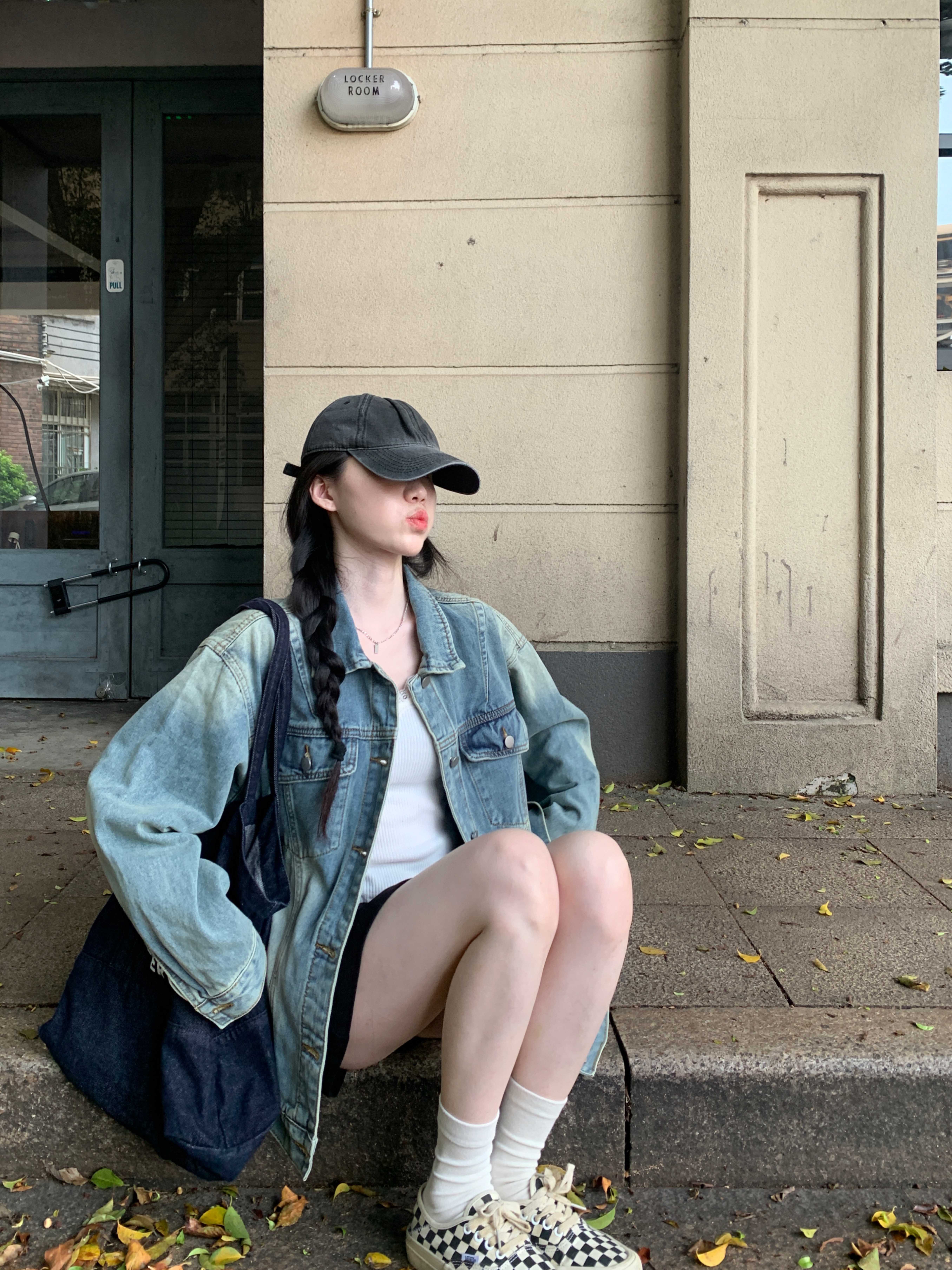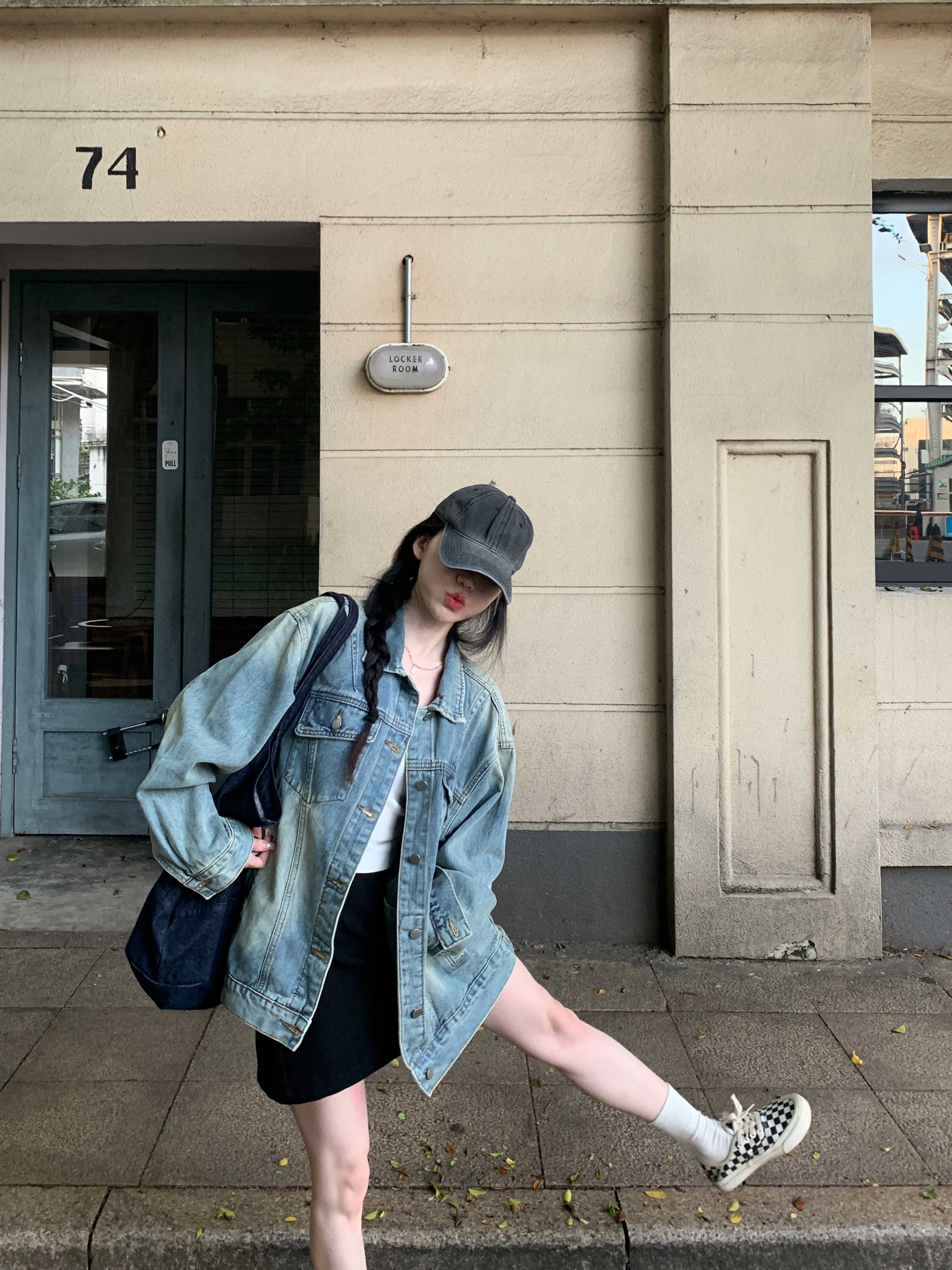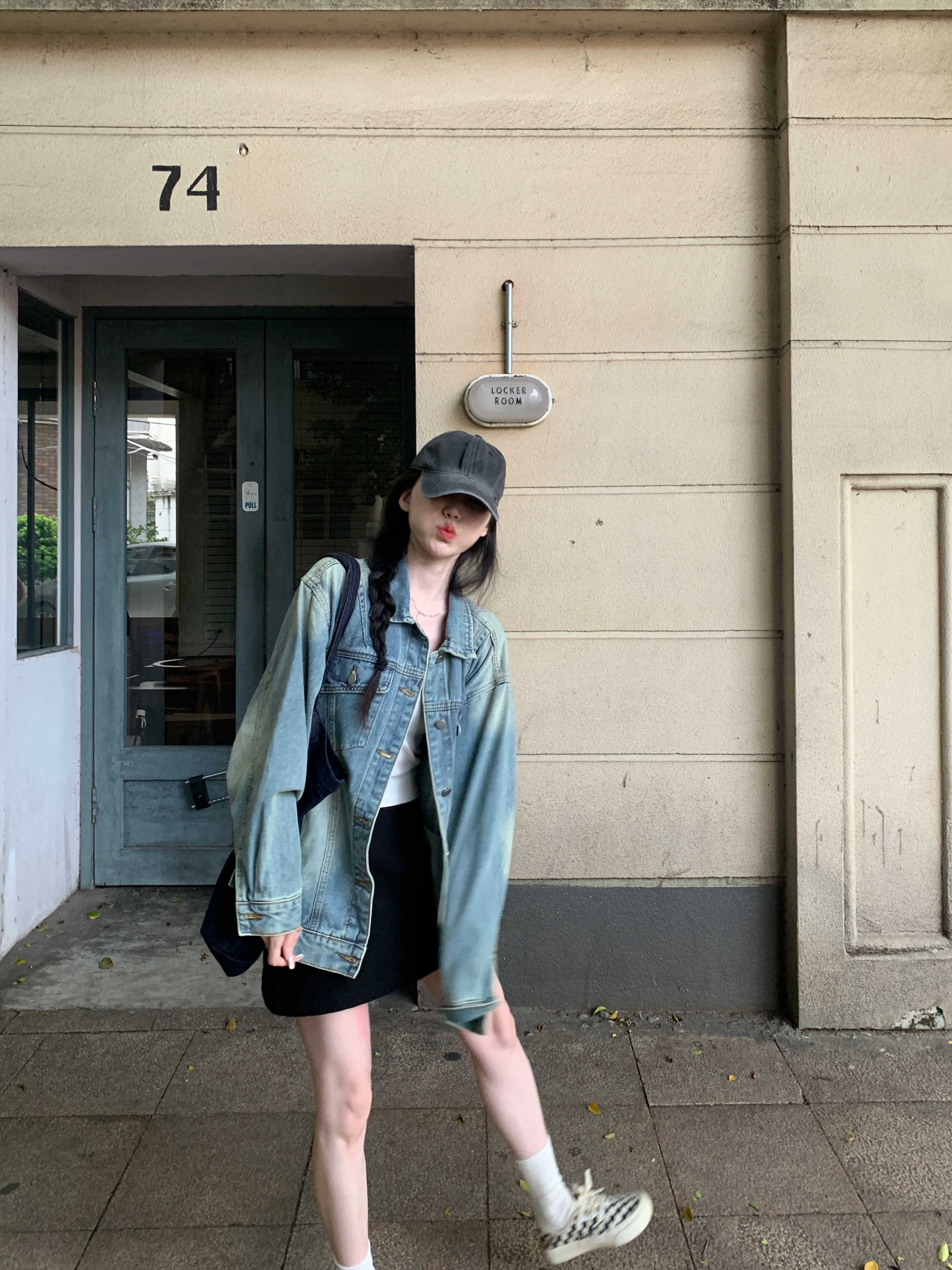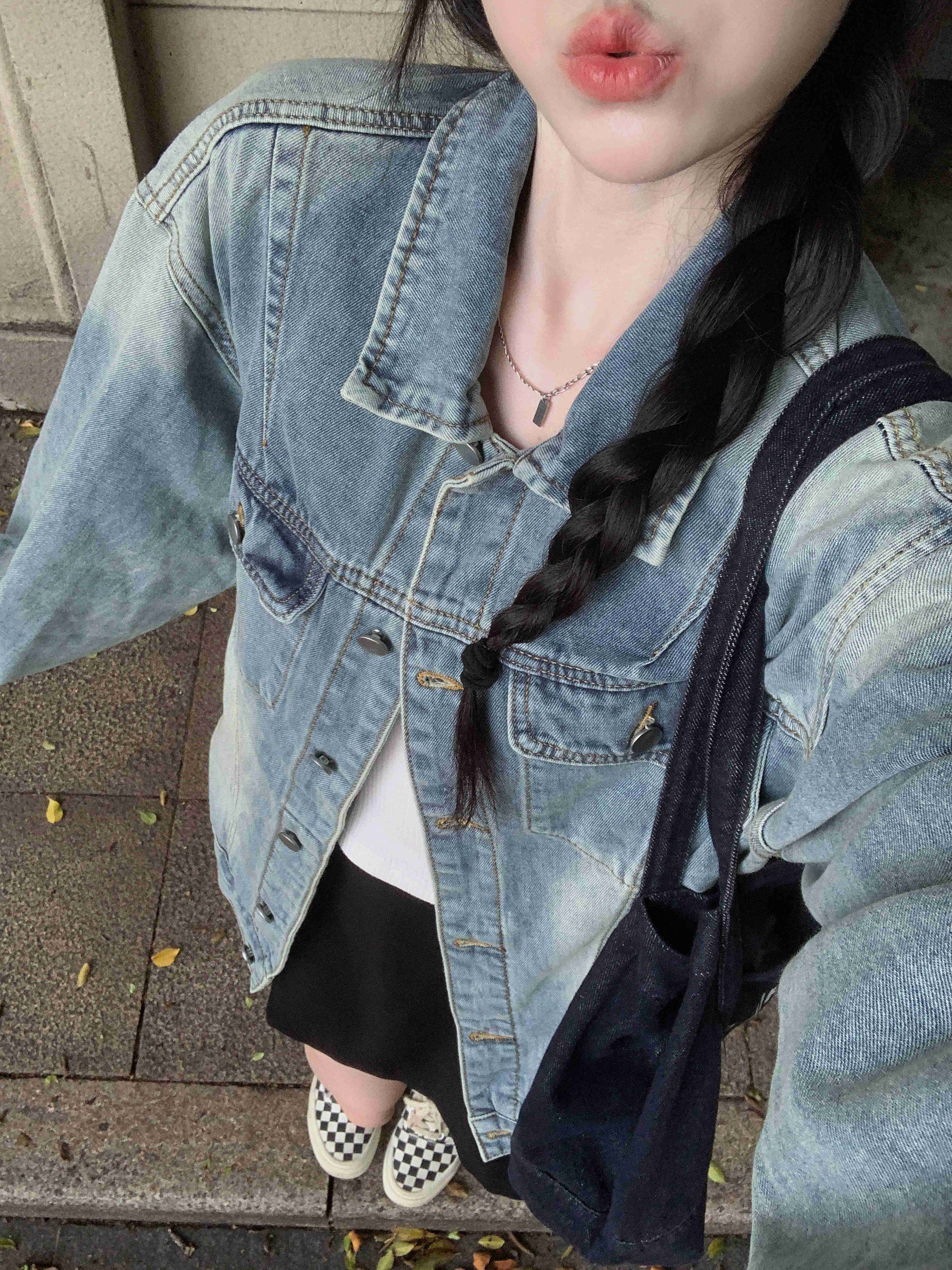 实拍实价 复古水洗做旧宽松牛仔外套女秋季新款百搭休闲夹克上衣