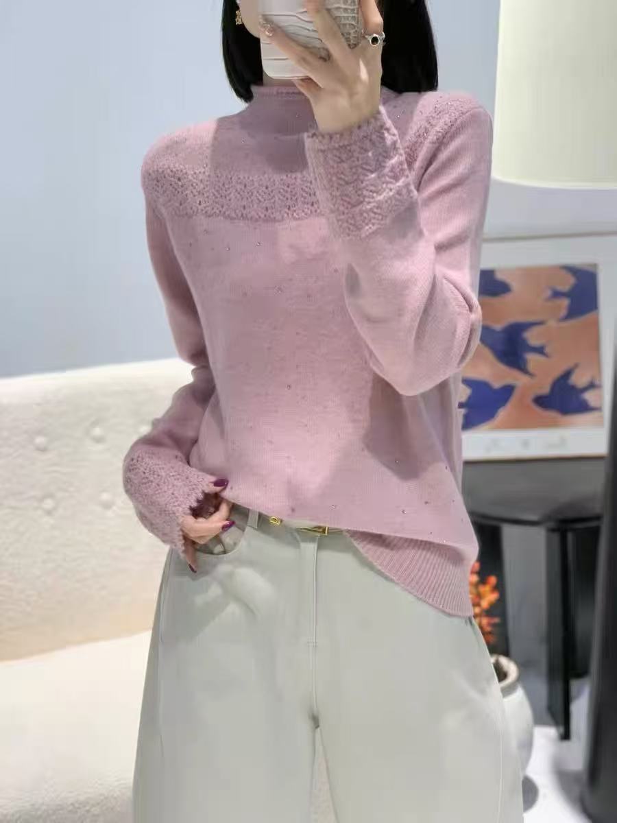 蜜熊绒烫砖半高领毛衣冬季款洋气百搭纯色毛衣针织衫女打底衫上衣