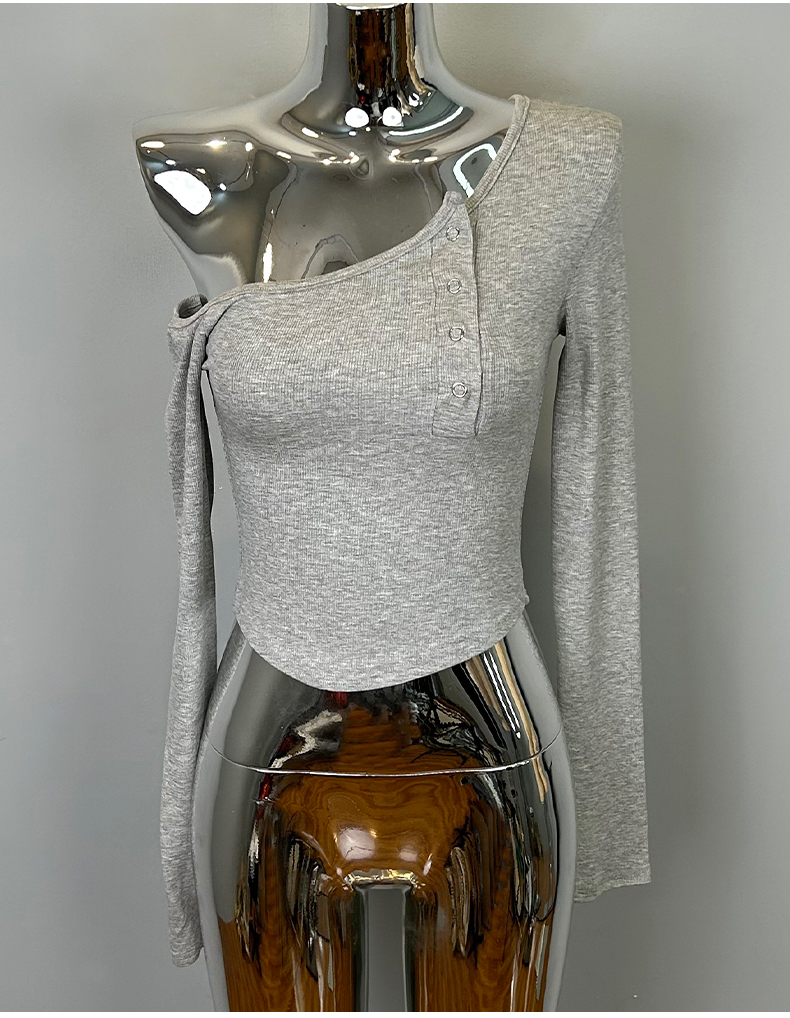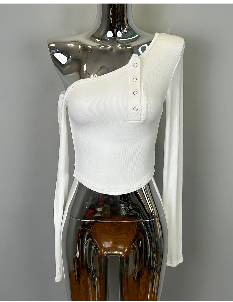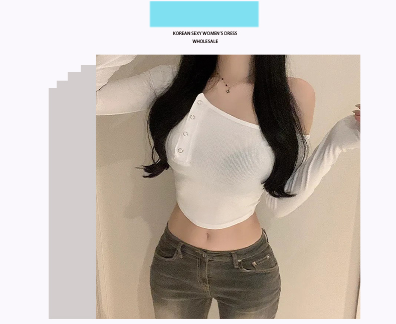 韩国东大门新品 纯欲风显胸百搭性感辣妹露肩紧身长袖T恤