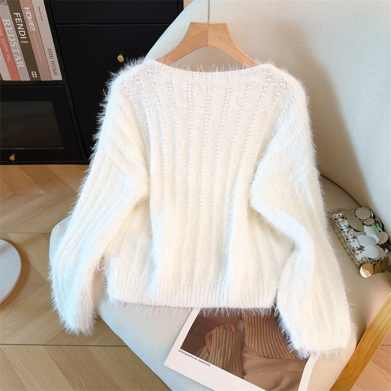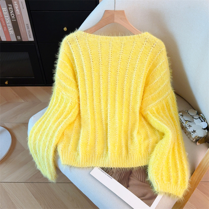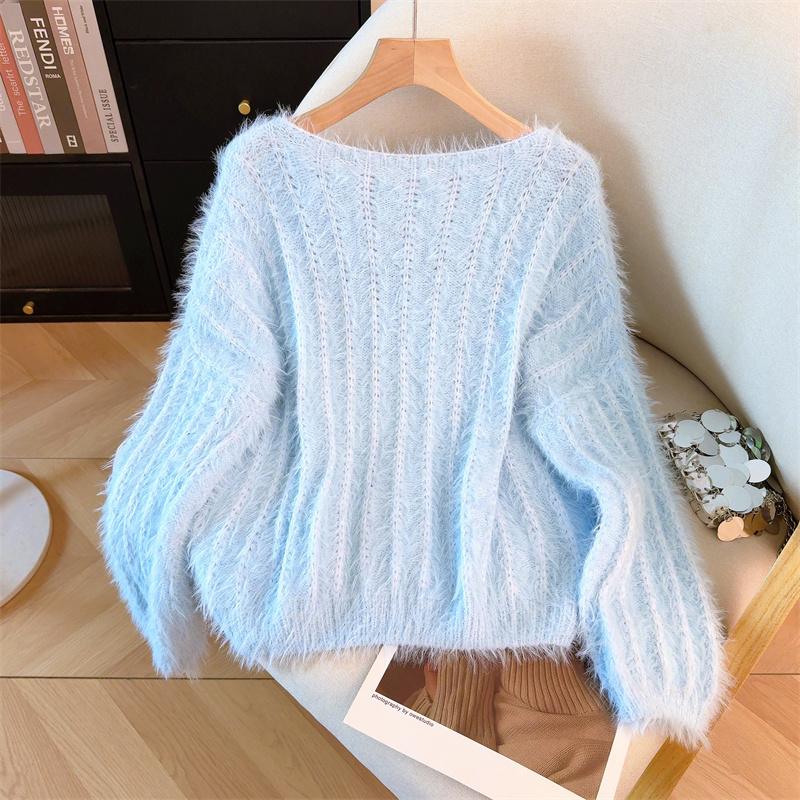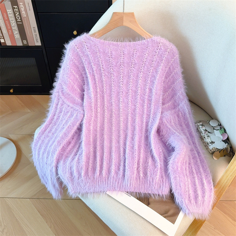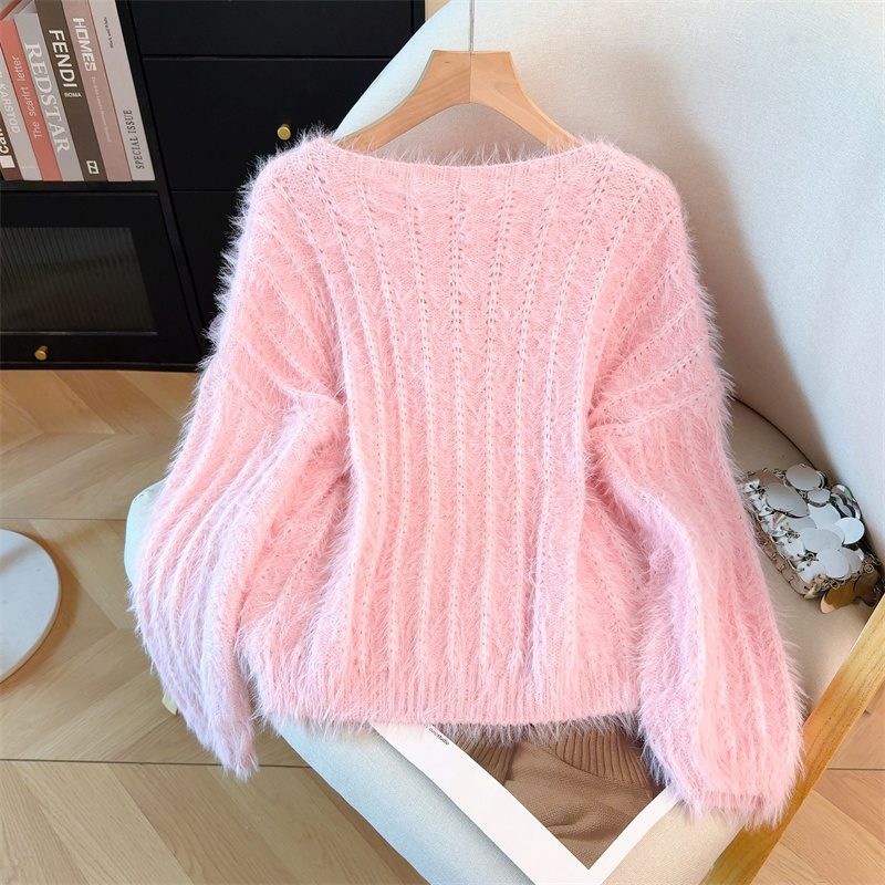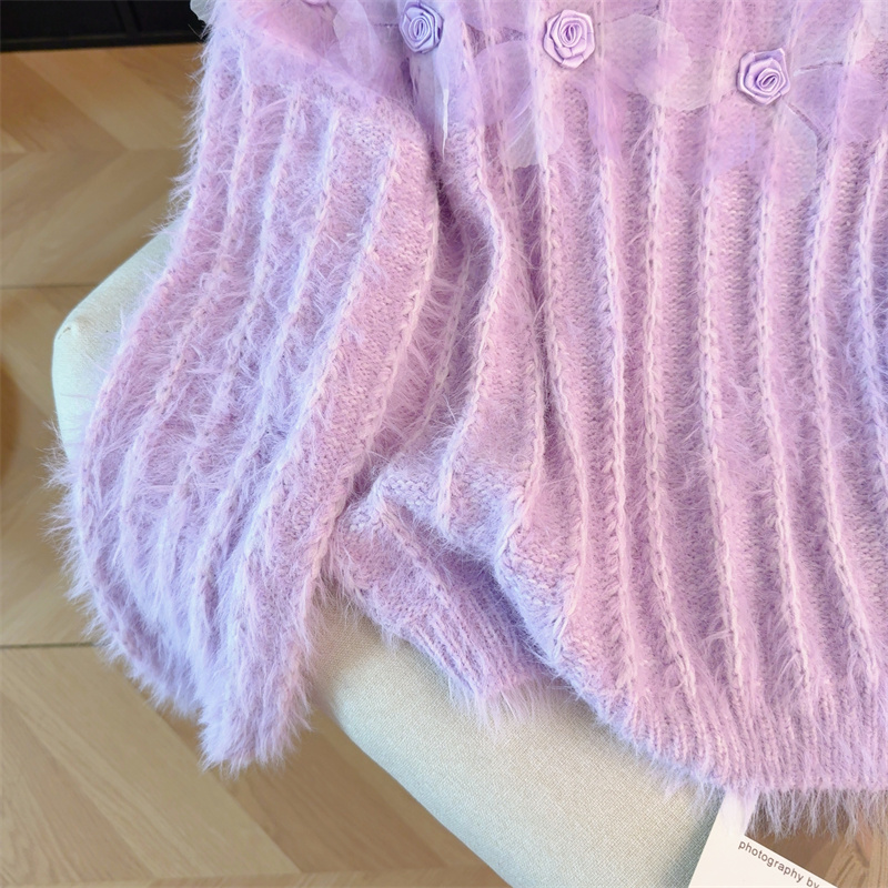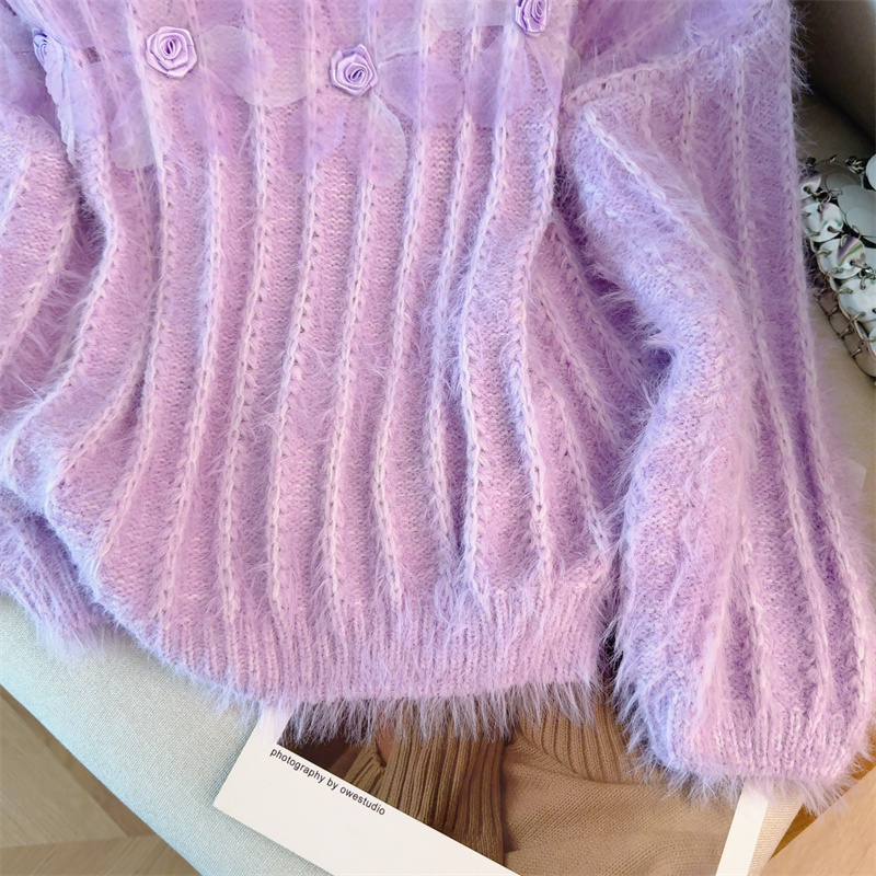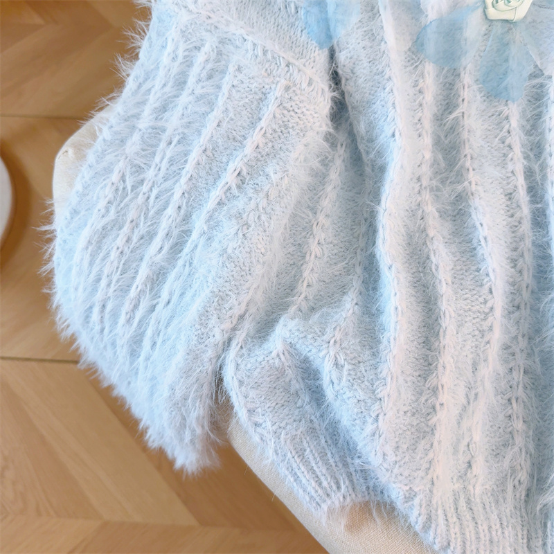 法式甜美重工钉珠花朵毛针织衫女2025年秋装新款宽松勾花镂空毛衣