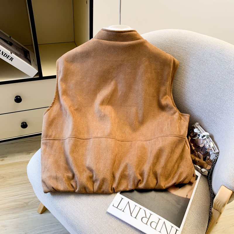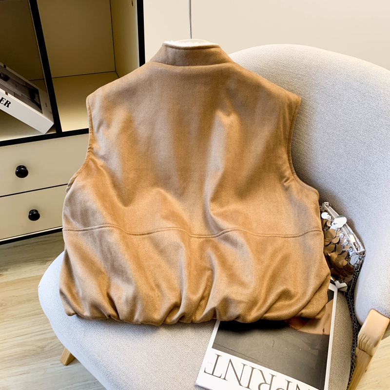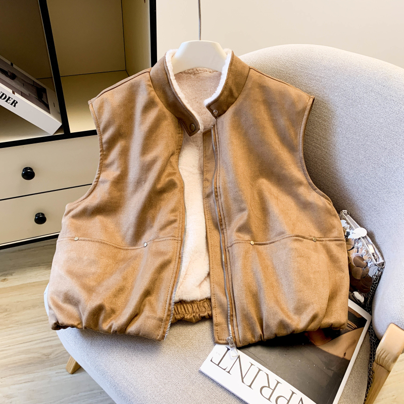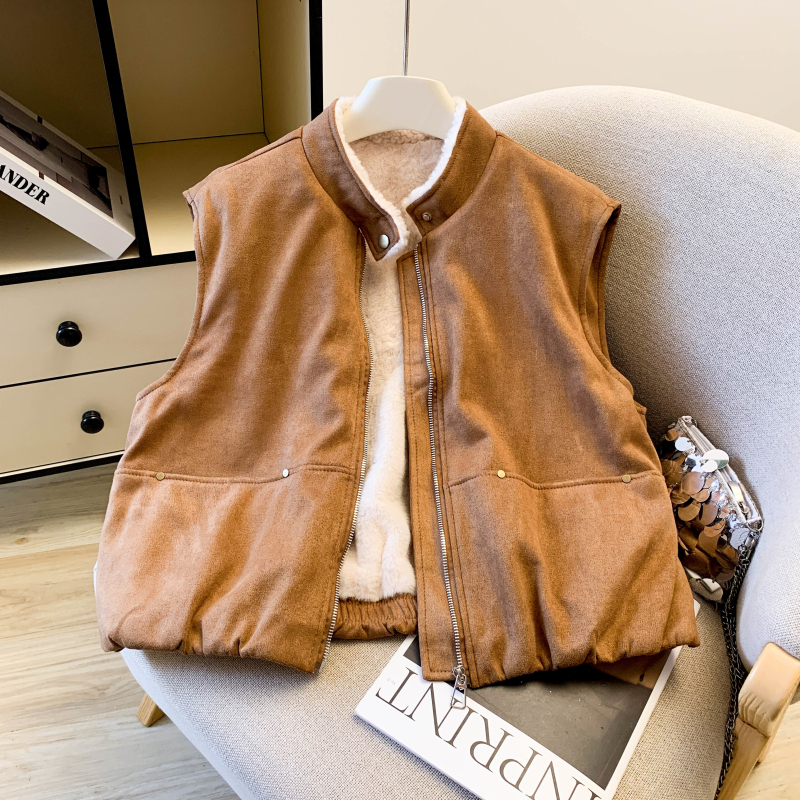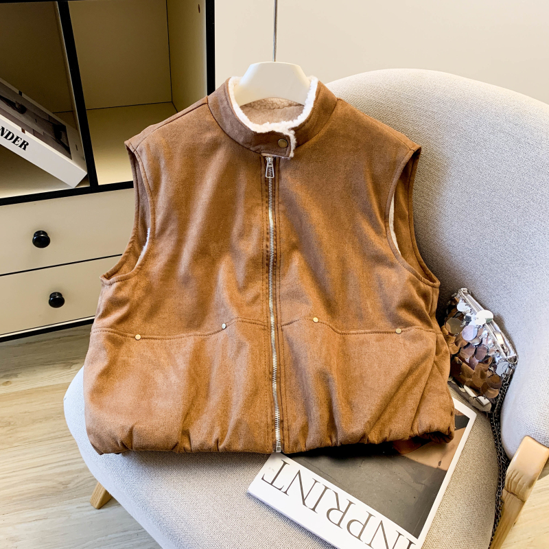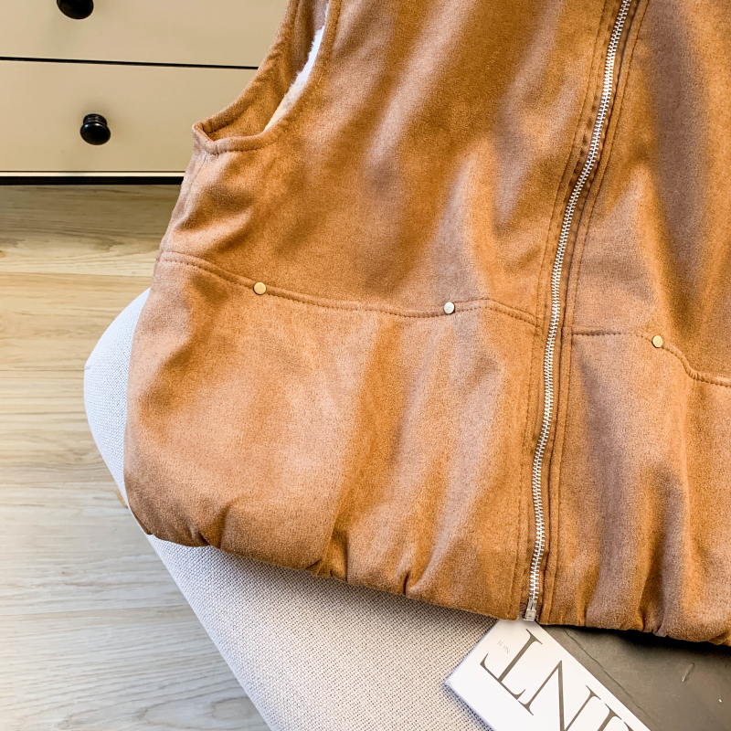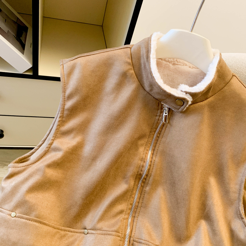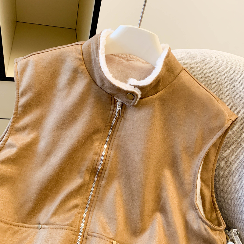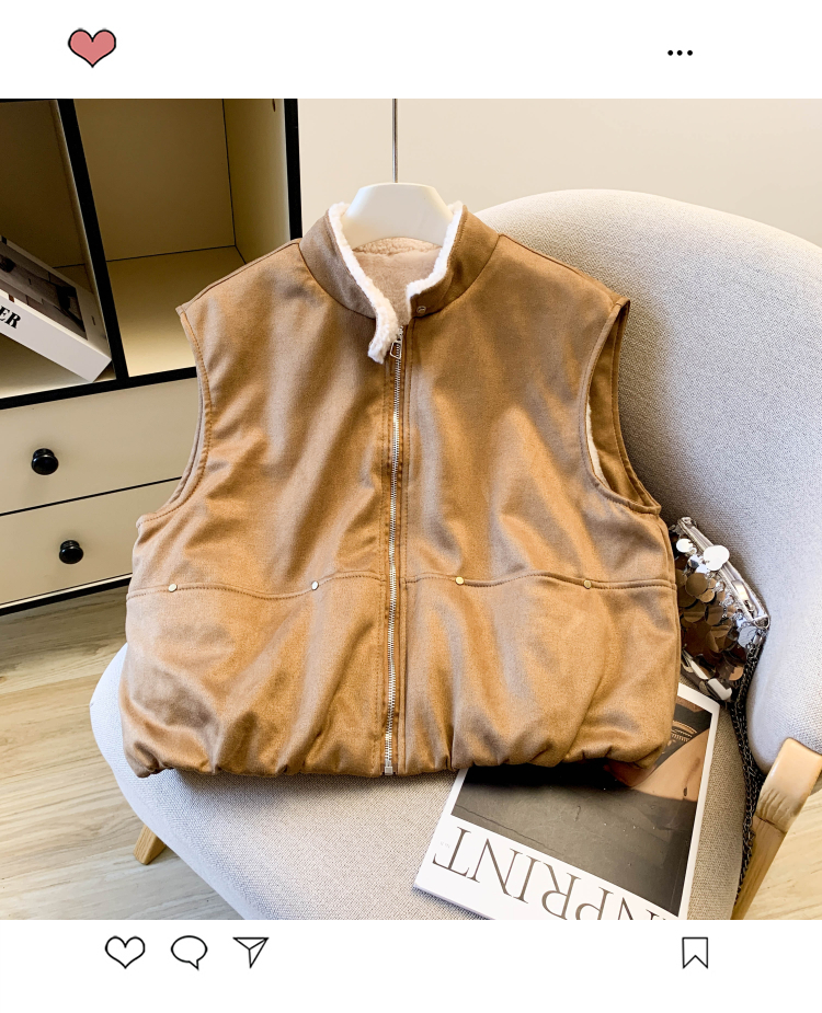 实拍 复古圆领拉链马甲女秋冬高级感羊羔毛外穿洋气时髦马夹潮
